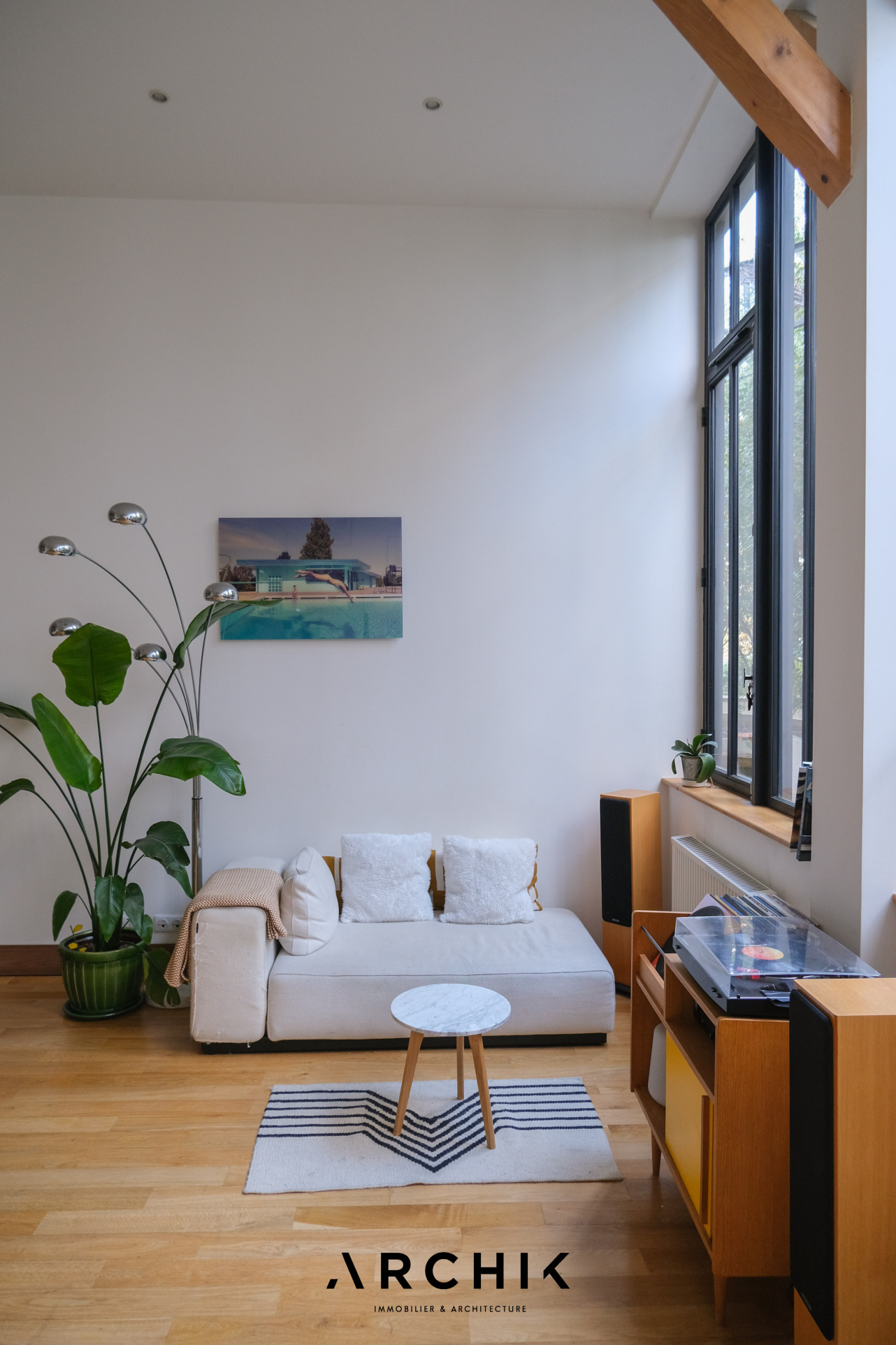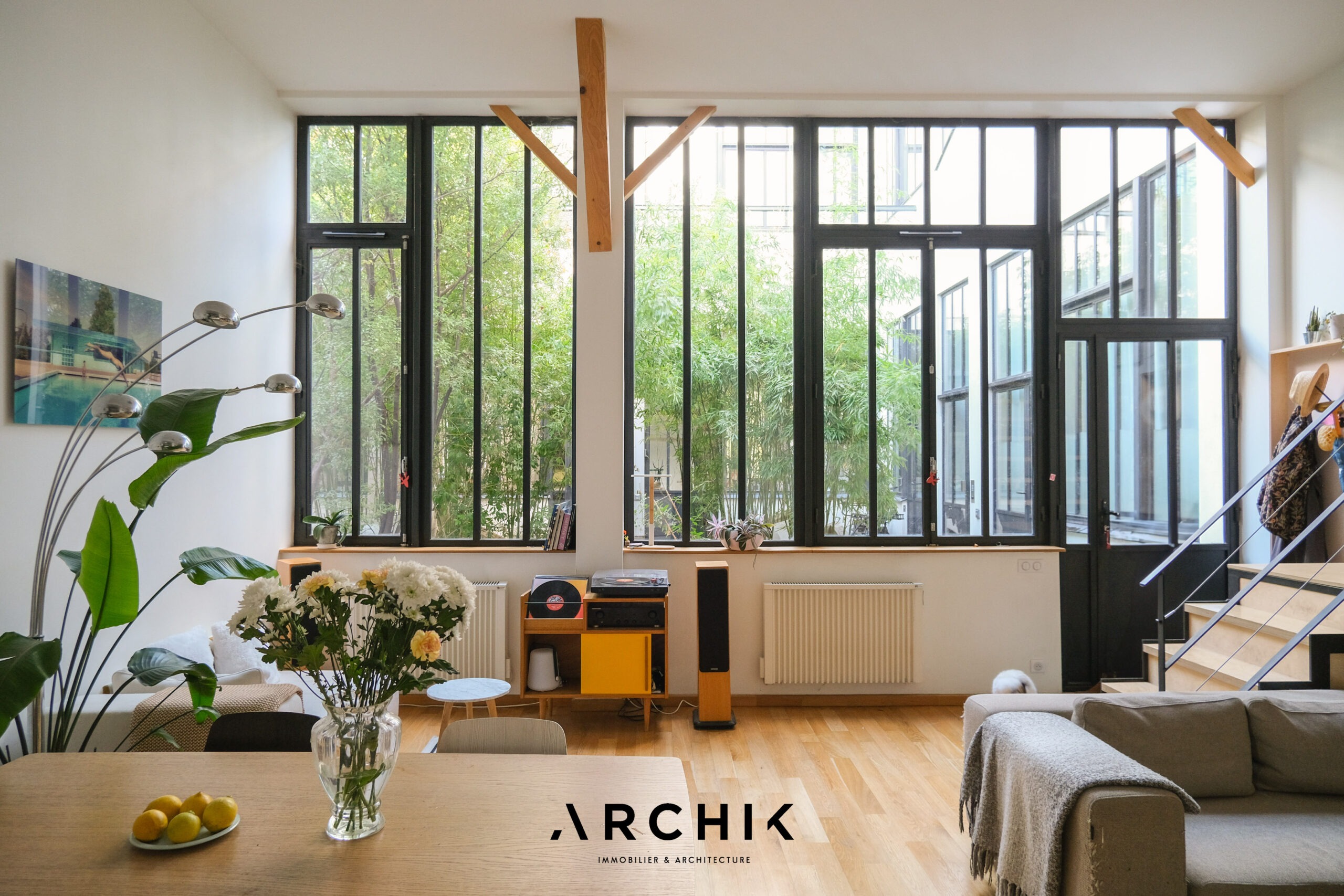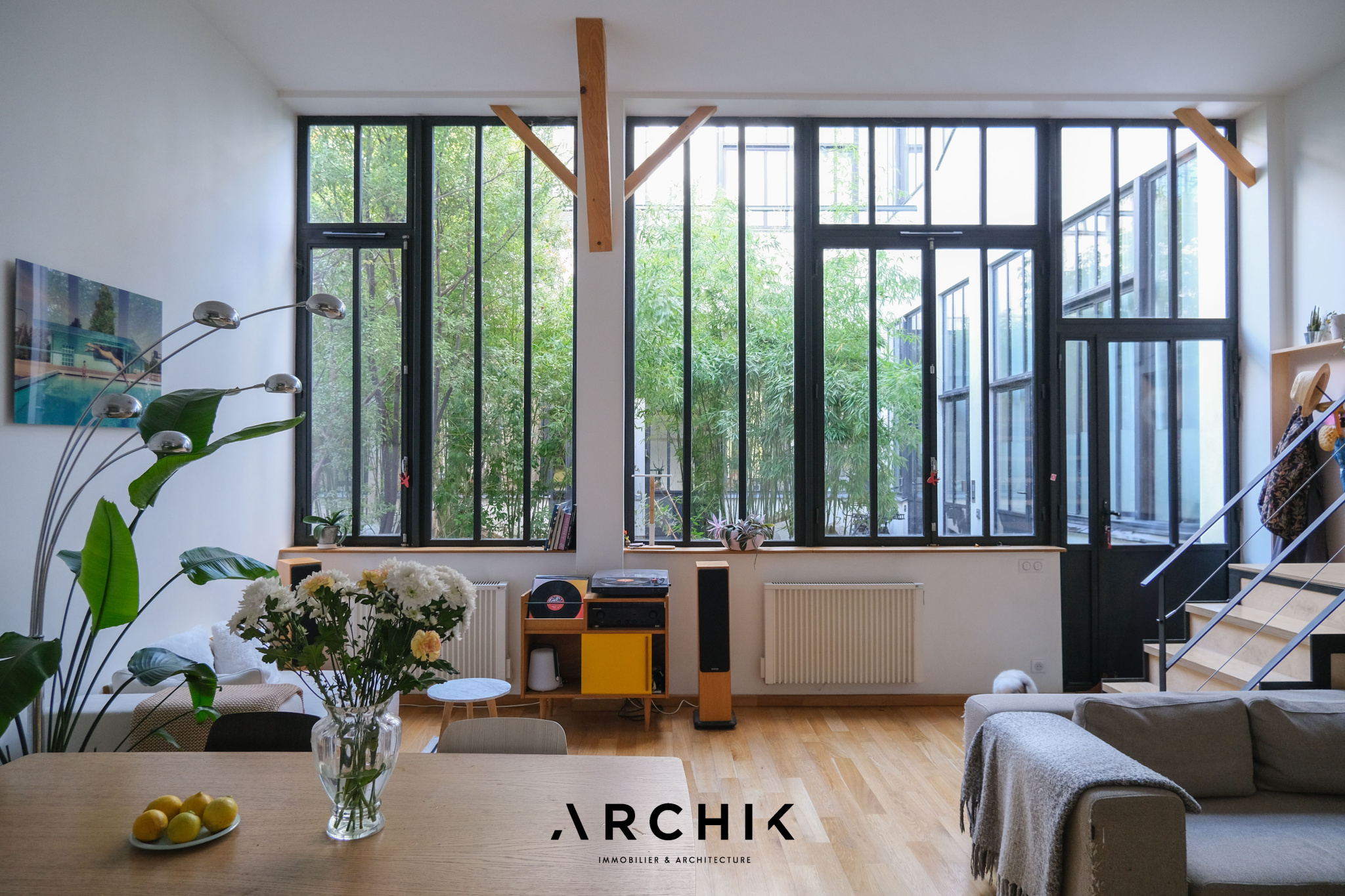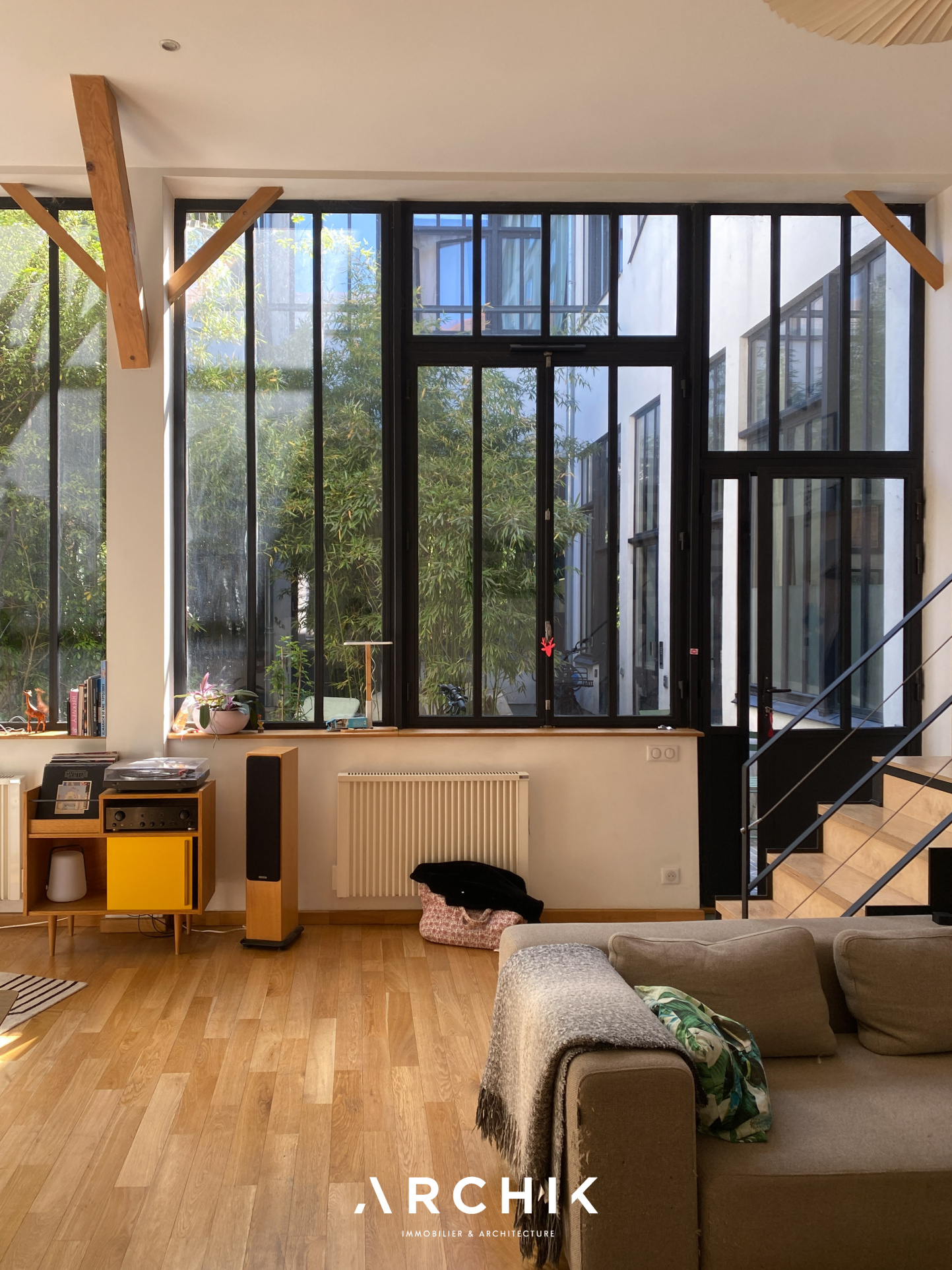 + DE DETAILS STAHL PARIS ALENTOURS | Pantin 825 000 € Type de bien Appartement Surface 97 m2 Chambre(s) 3 Extérieur Terrasse Courant Art Déco Architecture À vivre Réference AP432 ON AIMELes volumes L'ambiance maisonLe cachet industrielNOUS CONTACTER Architecture industrielle de 1910, l'ancien site de la manufacture de meubles Hagmann se révèle derrière une palissade en bois clair qui préserve le calme du passage. Réhabilité en 2016 par l'architecte Romain Armand de l'agence Studio Combo, le lieu conserve la majestueuse charpente métallique de type Eiffel qui couvrait autrefois les ateliers. Sa couverture supprimée laisse désormais entrer la lumière, offrant une respiration verticale et un jeu d'ombres qui accompagne les saisons. C'est dans cet ensemble que se découvre un loft de 92 m2.Une cour pavée rythmée par des lames de bois, des bambous et des luminaires sphériques suspendus, comme un sas végétal, mène à l'appartement. Une terrasse privative ouverte sur la cour permet la jonction entre extérieur et intérieur qui se devine derrière une spectaculaire verrière atelier en métal noir. Le loft déploie une double hauteur baignant la grande pièce à vivre d'une lumière d'Est. Le parquet en chêne clair et les poutres en bois laissées apparentes réchauffent l'esthétique industrielle ; salon, salle à manger, cuisine se répondent dans un même mouvement fluide. Une buanderie et une salle d'eau complètent le niveau. L'escalier mène à l'étage nuit. La chambre principale se pare d'un papier peint végétal. La salle de bain, entièrement rénovée, combine carrelage structuré ton sable et carrelage blanc brillant. Deux chambres supplémentaires en double hauteur aménagées de mezzanines bordées d'un garde-corps en câbles métalliques et accessibles par des pas japonais accueillent chacune un espace nuit avec vue plongeante sur la cour à travers les grandes ouvertures vitrées. Le sol en parquet et les rangements intégrés en font un espace idéal pour un enfant ou un bureau. Une quatrième chambre à aménager au premier niveau est envisageable. L'accès à une salle de sport et une piscine privée réservée à la copropriété constituent un environnement privilégié au coeur de la ville de Pantin qui érige l'innovation architecturale en manifeste. Un refuge urbain singulier, au croisement de l'industriel et du végétal. LE QUARTIER Pantin Située aux portes de Paris et limitrophe du 19ème arrondissement, Pantin est une ville à la fois dynamique et créative en pleine mutation qui allie le charme de son histoire à une modernité vibrante. VOTRE CONTACT Saïda VISSER 06 24 57 10 56 saida.visser@archik.fr DIAGNOSTICTRANSPORTSM5 EGLISE DE PANTINPARTAGERDétail du diagnostic Diagnostic de performance énergétique 237 KWh/m².an 7* kg CO2/m².an Logement économeABCDEFGLogement énergivore DPE vierge Consommations non exploitables Non soumis au diagnostic * Dont émissions de gaz à effet de serreFaible émission de GESABCDEFGForte émission de GES 7 KgéqCO2 / m².an GES vierge Consommations non exploitables Montant estimé des dépenses annuelles d'énergie pour un usage standard : entre 1670 et 2310 € TTC/an . Date de référence des prix de l'énergie pour établie cette estimation : 01/01/2025 Les informations sur les risques auxquels ce bien est exposé sont disponibles sur le site Géorisques : www.georisques.gouv.fr Vous souhaitez avoir plus d'informations ? Remplissez le formulaire ou contactez directement la personne en charge de ce bien. NOM* PRÉNOM* EMAIL* TÉLÉPHONE* MESSAGE Je souhaite recevoir la Newsletter ARCHIK VOTRE CONTACT Saïda VISSER 06 24 57 10 56 saida.visser@archik.fr Découvrez aussi ...VENDRENos biens en venteNOS BIENS VENDUS