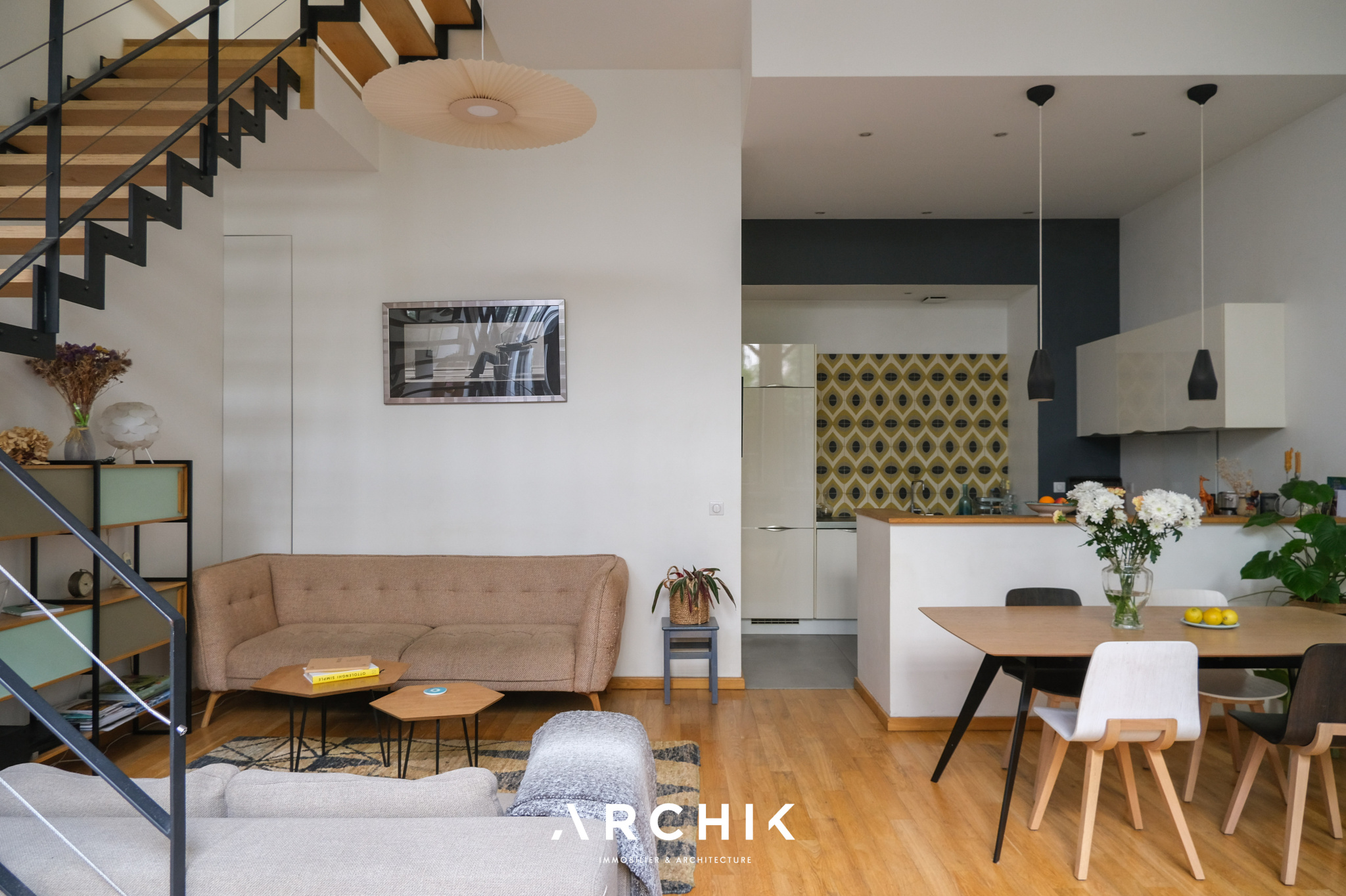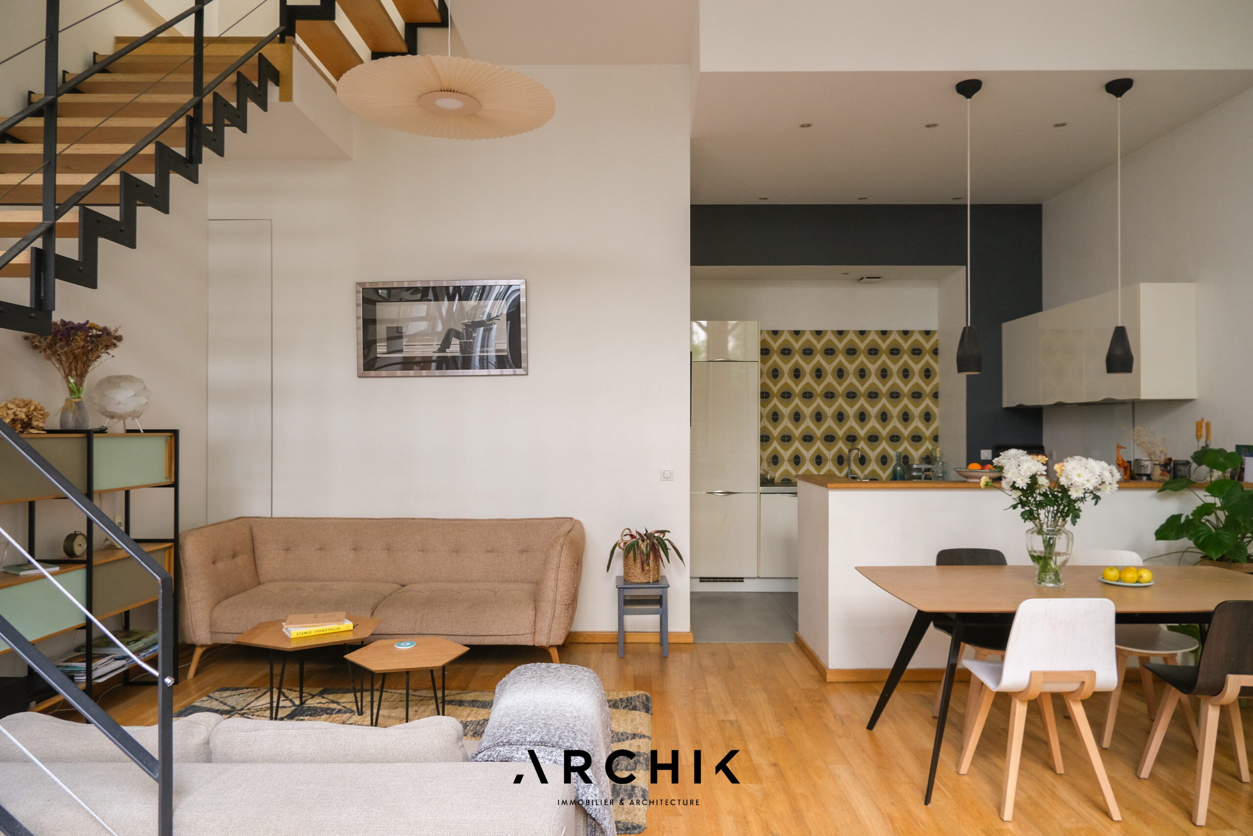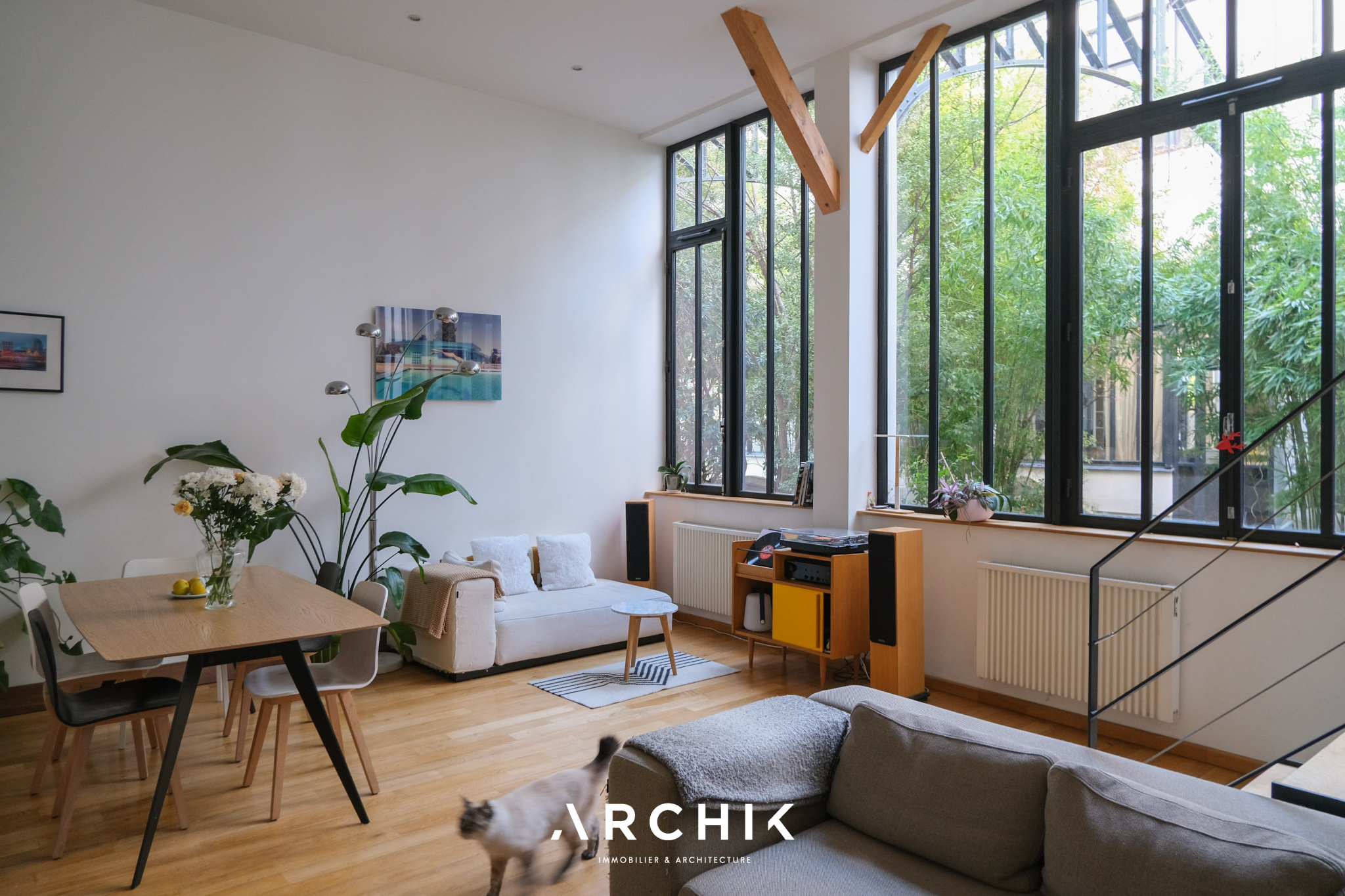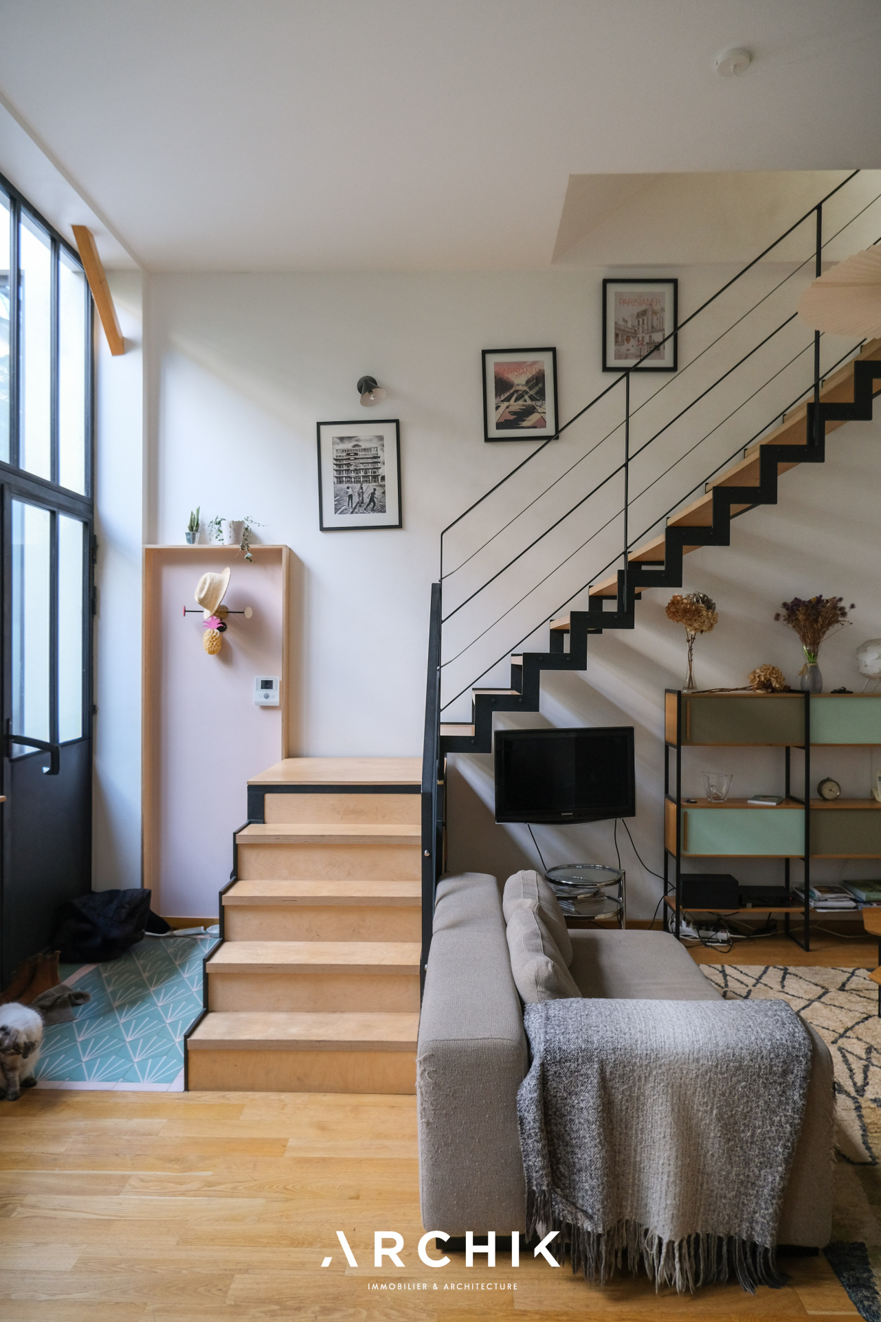 + DE DETAILS STAHL PARIS ALENTOURS | Pantin 825 000 € Type de bien Appartement Surface 97 m2 Chambre(s) 3 Extérieur Terrasse Courant Art Déco Architecture À vivre Réference AP432 ON AIMELes volumes L'ambiance maisonLe cachet industrielNOUS CONTACTER Architecture industrielle de 1910, l'ancien site de la manufacture de meubles Hagmann se révèle derrière une palissade en bois clair qui préserve le calme du passage. Réhabilité en 2016 par l'architecte Romain Armand de l'agence Studio Combo, le lieu conserve la majestueuse charpente métallique de type Eiffel qui couvrait autrefois les ateliers. Sa couverture supprimée laisse désormais entrer la lumière, offrant une respiration verticale et un jeu d'ombres qui accompagne les saisons. C'est dans cet ensemble que se découvre un loft de 92 m2.Une cour pavée rythmée par des lames de bois, des bambous et des luminaires sphériques suspendus, comme un sas végétal, mène à l'appartement. Une terrasse privative ouverte sur la cour permet la jonction entre extérieur et intérieur qui se devine derrière une spectaculaire verrière atelier en métal noir. Le loft déploie une double hauteur baignant la grande pièce à vivre d'une lumière d'Est. Le parquet en chêne clair et les poutres en bois laissées apparentes réchauffent l'esthétique industrielle ; salon, salle à manger, cuisine se répondent dans un même mouvement fluide. Une buanderie et une salle d'eau complètent le niveau. L'escalier mène à l'étage nuit. La chambre principale se pare d'un papier peint végétal. La salle de bain, entièrement rénovée, combine carrelage structuré ton sable et carrelage blanc brillant. Deux chambres supplémentaires en double hauteur aménagées de mezzanines bordées d'un garde-corps en câbles métalliques et accessibles par des pas japonais accueillent chacune un espace nuit avec vue plongeante sur la cour à travers les grandes ouvertures vitrées. Le sol en parquet et les rangements intégrés en font un espace idéal pour un enfant ou un bureau. Une quatrième chambre à aménager au premier niveau est envisageable. L'accès à une salle de sport et une piscine privée réservée à la copropriété constituent un environnement privilégié au coeur de la ville de Pantin qui érige l'innovation architecturale en manifeste. Un refuge urbain singulier, au croisement de l'industriel et du végétal. LE QUARTIER Pantin Située aux portes de Paris et limitrophe du 19ème arrondissement, Pantin est une ville à la fois dynamique et créative en pleine mutation qui allie le charme de son histoire à une modernité vibrante. VOTRE CONTACT Saïda VISSER 06 24 57 10 56 saida.visser@archik.fr DIAGNOSTICTRANSPORTSM5 EGLISE DE PANTINPARTAGERDétail du diagnostic Diagnostic de performance énergétique 237 KWh/m².an 7* kg CO2/m².an Logement économeABCDEFGLogement énergivore DPE vierge Consommations non exploitables Non soumis au diagnostic * Dont émissions de gaz à effet de serreFaible émission de GESABCDEFGForte émission de GES 7 KgéqCO2 / m².an GES vierge Consommations non exploitables Montant estimé des dépenses annuelles d'énergie pour un usage standard : entre 1670 et 2310 € TTC/an . Date de référence des prix de l'énergie pour établie cette estimation : 01/01/2025 Les informations sur les risques auxquels ce bien est exposé sont disponibles sur le site Géorisques : www.georisques.gouv.fr Vous souhaitez avoir plus d'informations ? Remplissez le formulaire ou contactez directement la personne en charge de ce bien. NOM* PRÉNOM* EMAIL* TÉLÉPHONE* MESSAGE Je souhaite recevoir la Newsletter ARCHIK VOTRE CONTACT Saïda VISSER 06 24 57 10 56 saida.visser@archik.fr Découvrez aussi ...VENDRENos biens en venteNOS BIENS VENDUS