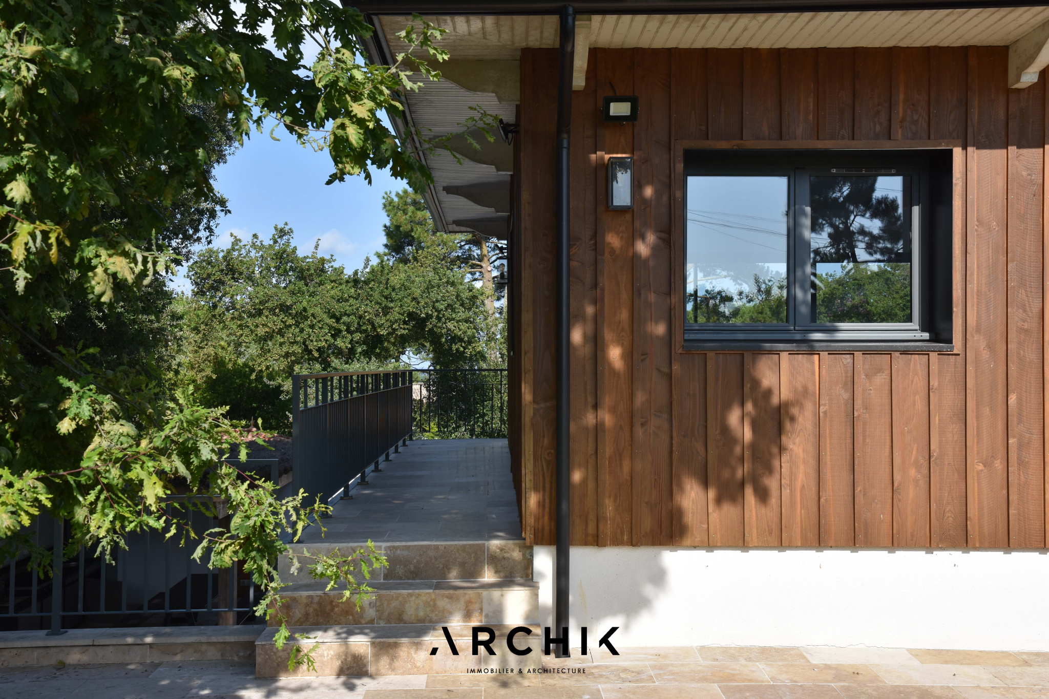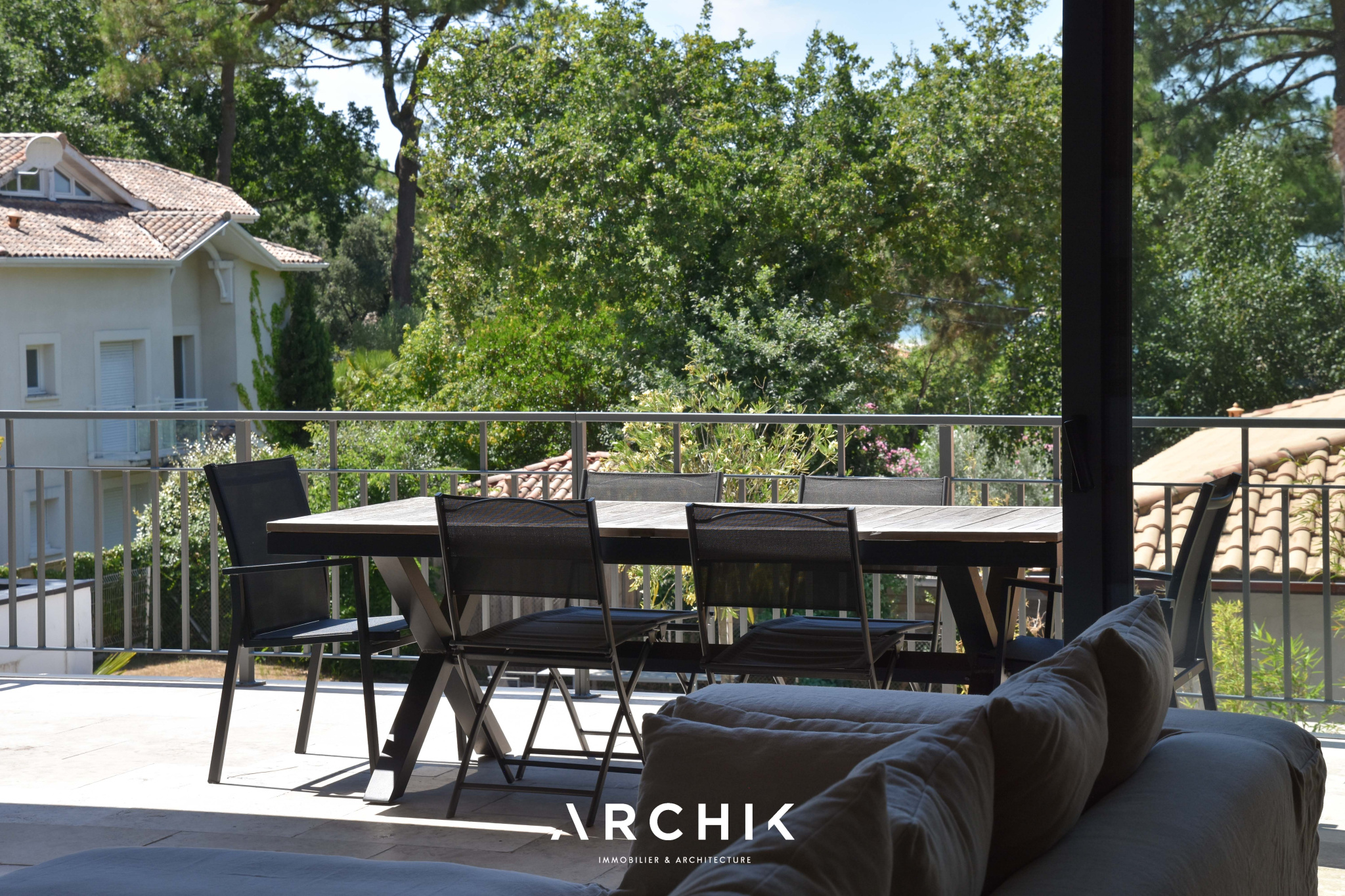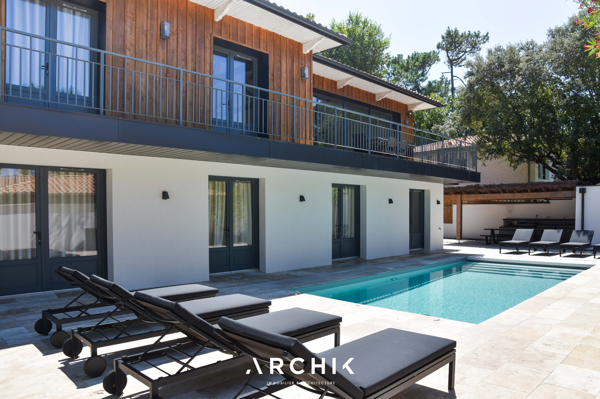 Architecture contemporaine d'inspiration régionaliste, cette maison de 270 m2 s'inscrit sur une parcelle de 950 m2 en position dominante, sur les hauteurs prisées du Pyla.