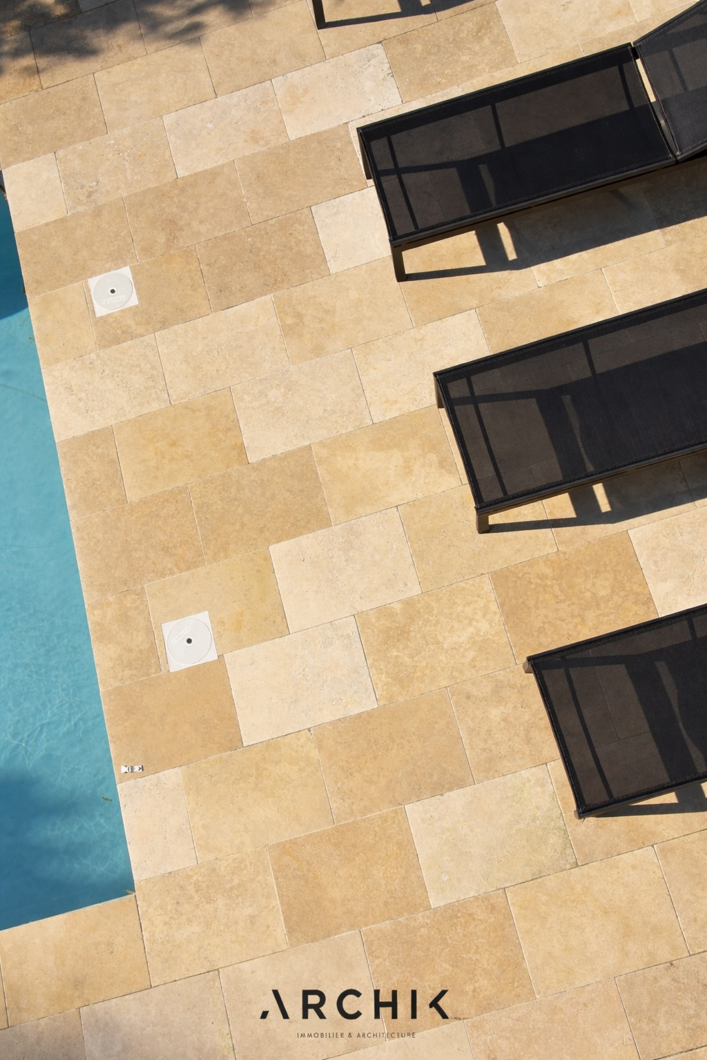 En rez-de-jardin, cinq chambres supplémentaires, chacune équipée de sa salle d'eau, ouvrent pour quatre d'entre elles sur une magnifique terrasse. Cette dernière, couverte de travertin, entoure la piscine chauffée et accueille une belle cuisine d'été.