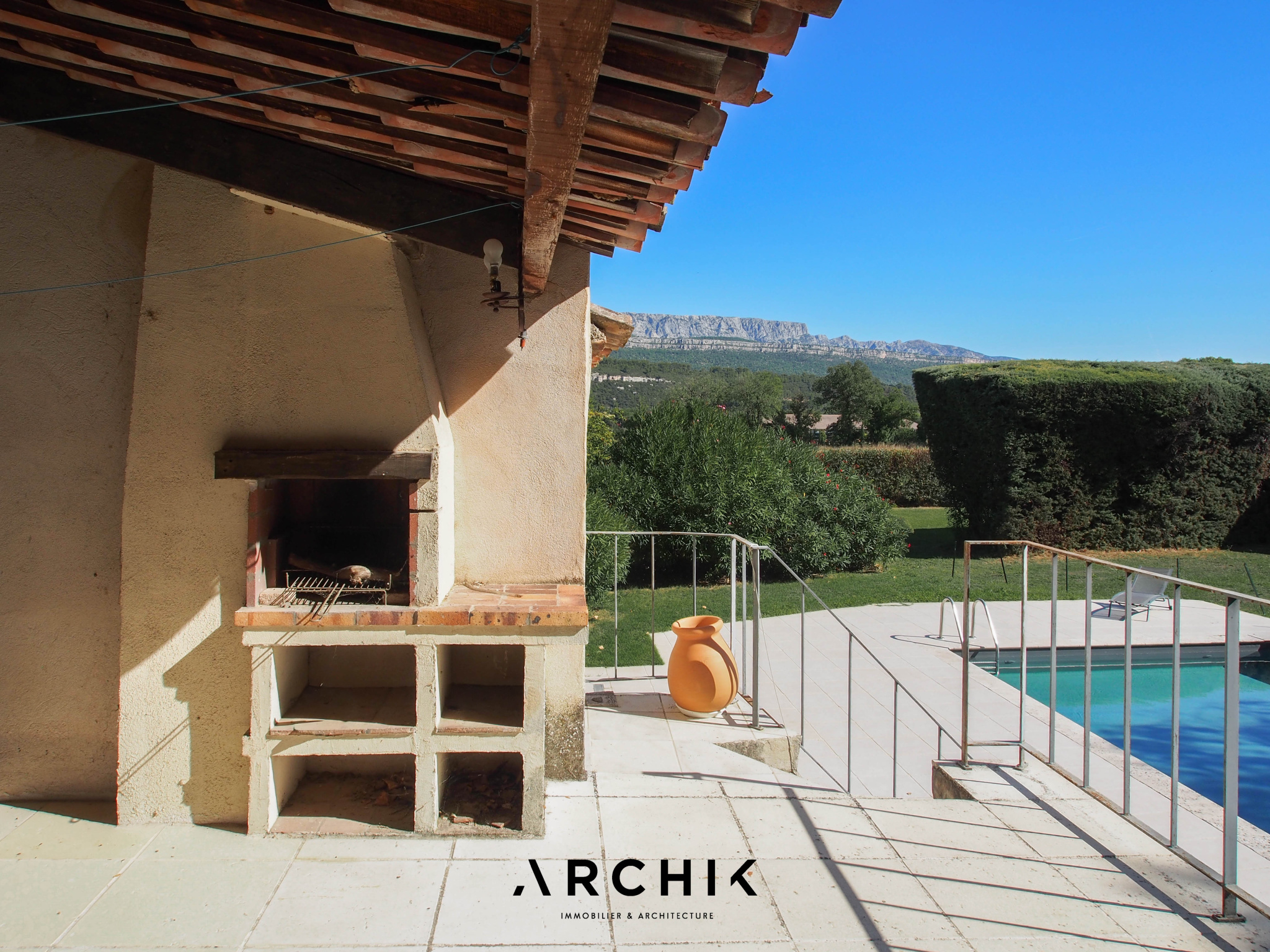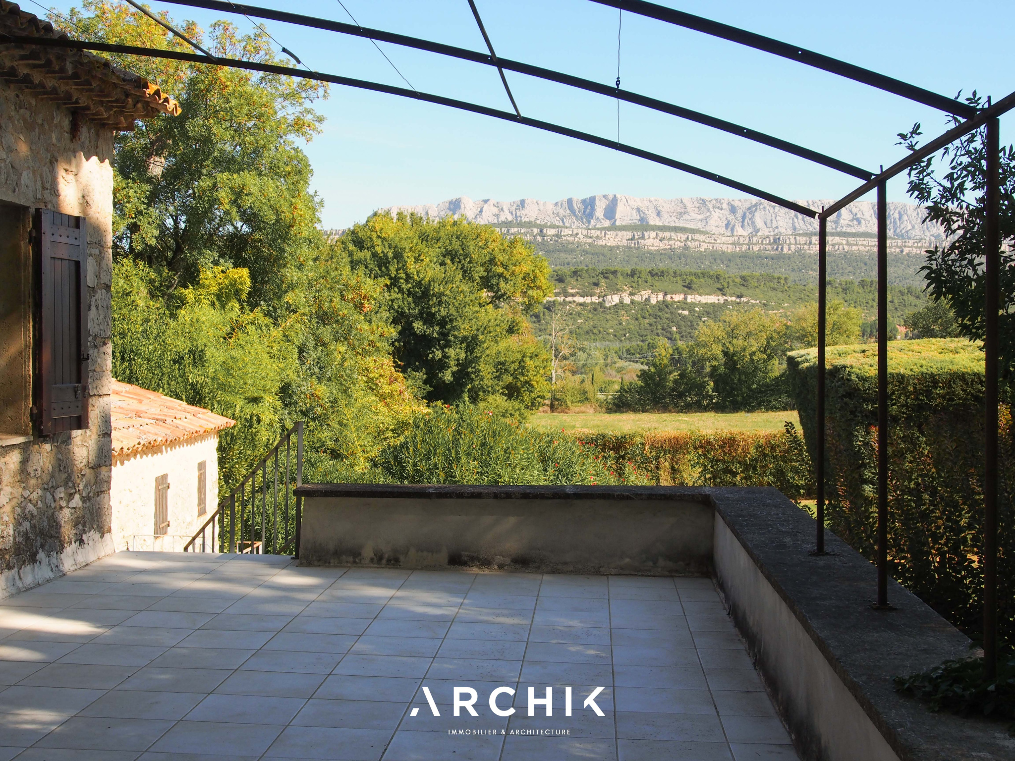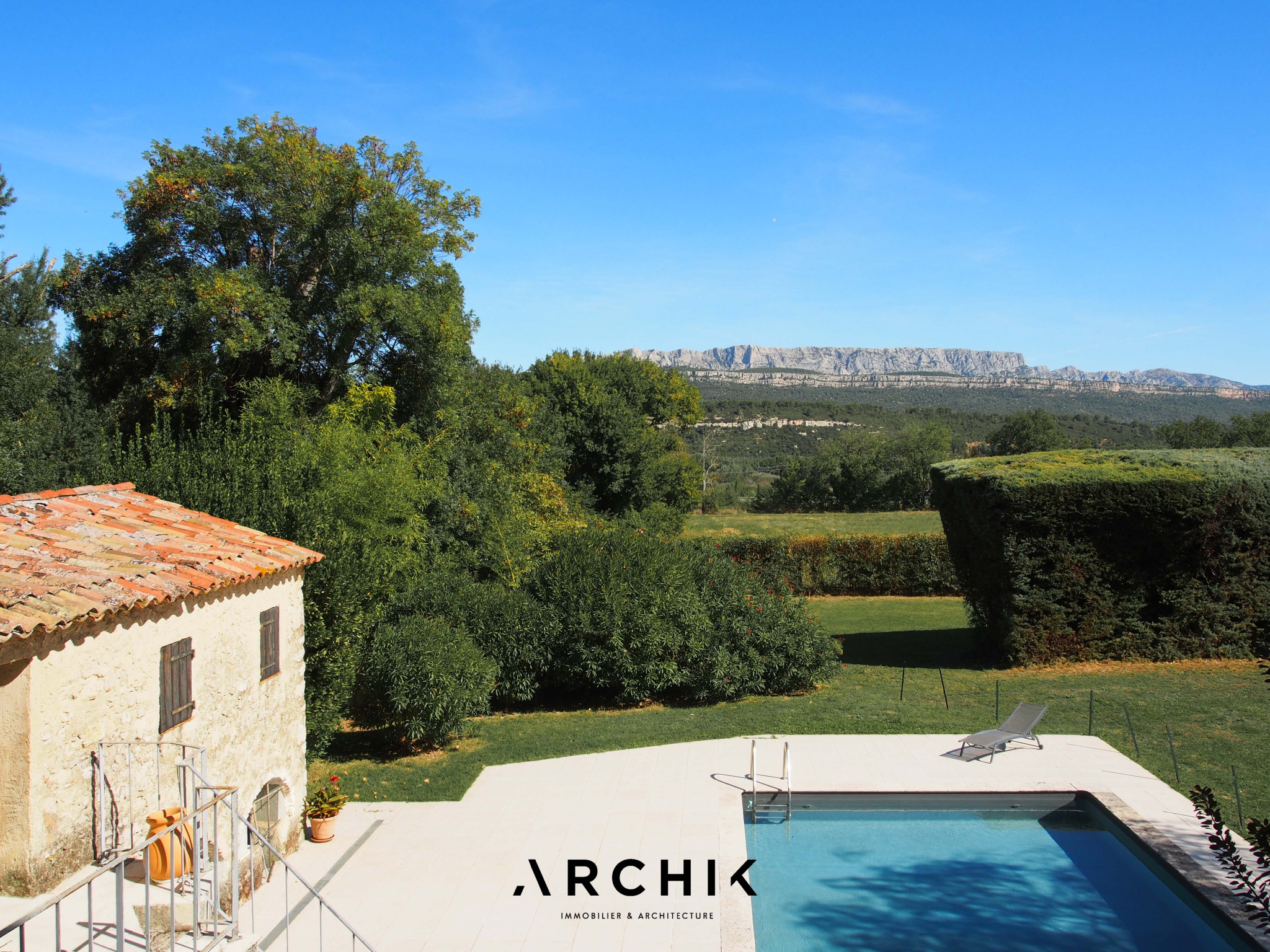 Entourée d'un jardin luxuriant aux essences variées, la propriété se compose de trois mas en pierre. Le premier, d'environ 150 m2 sur deux niveaux, offre une vue panoramique sur la Sainte-Victoire où la lumière changeante de la journée est un vrai spectacle ainsi que la nature environnante. Il bénéficie d'une grande terrasse ensoleillée, d'une piscine, d'un garage et de dépendances à réinventer.