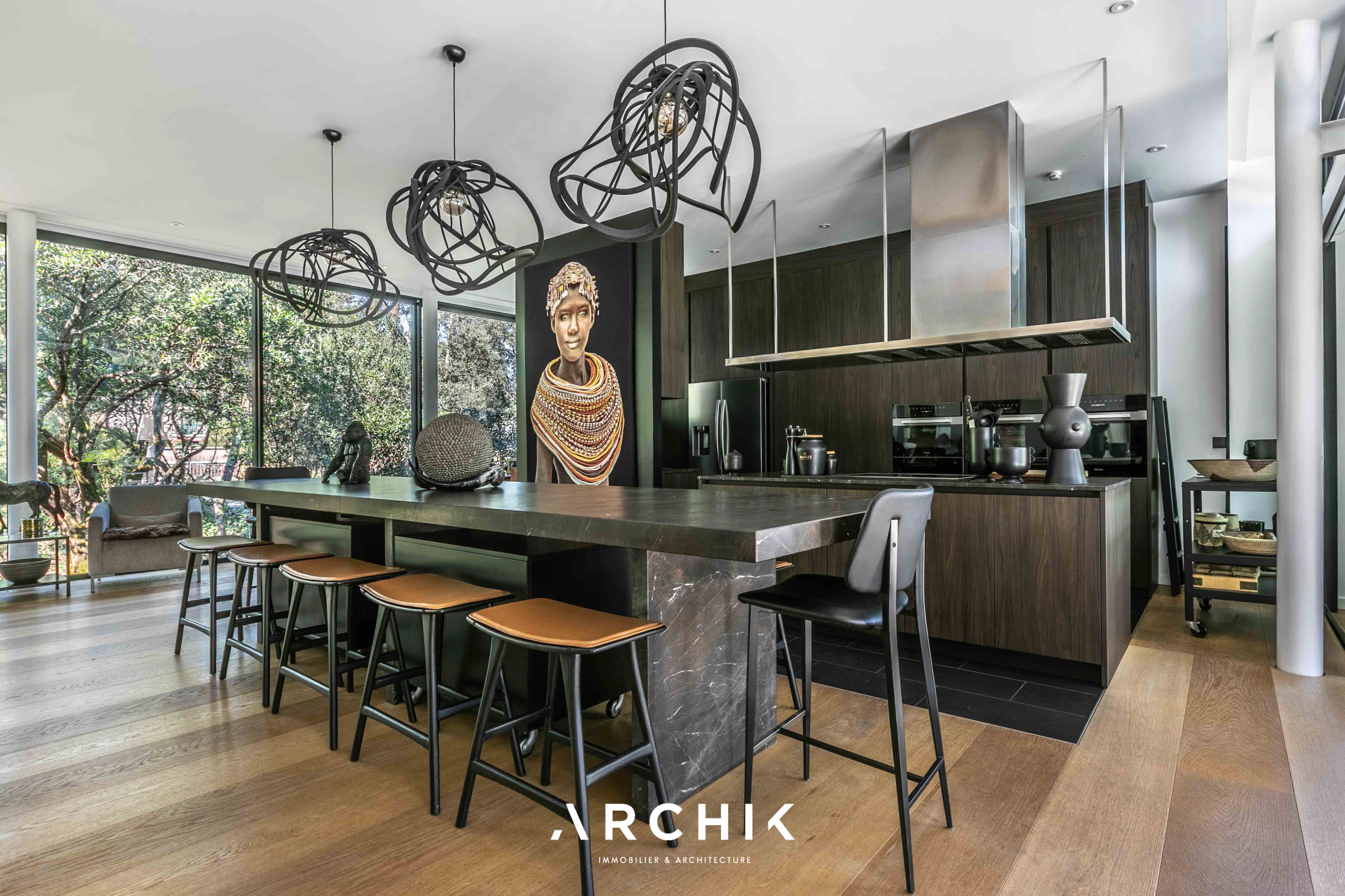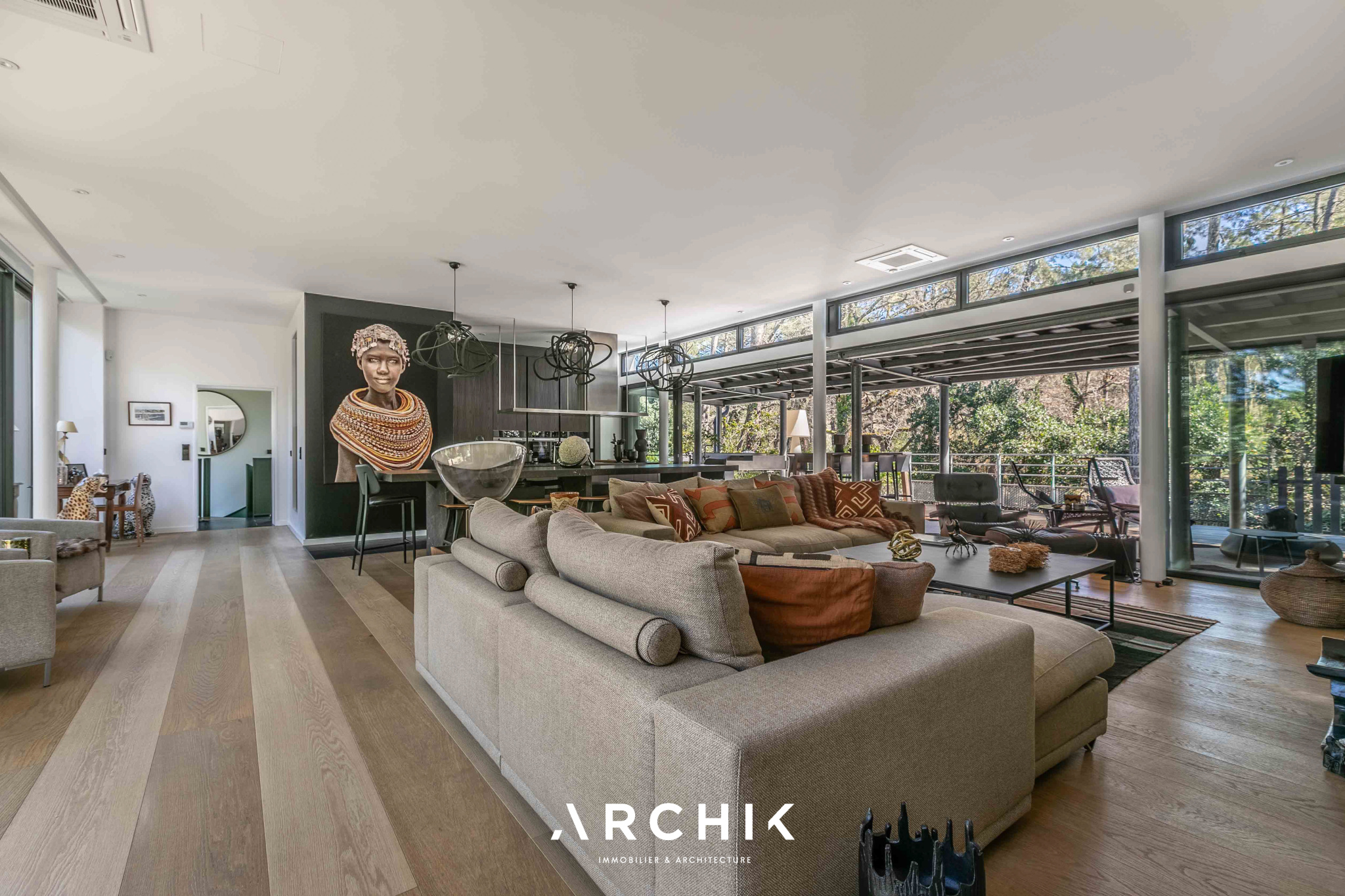 Architecture contemporaine, cette villa d'environ 350 m2 s'inscrit sur un magnifique terrain arboré de 1 920 m2 en lisière de forêt, au sein du très prisé quartier de l'Haitza, à quelques pas des plages et des commerces.