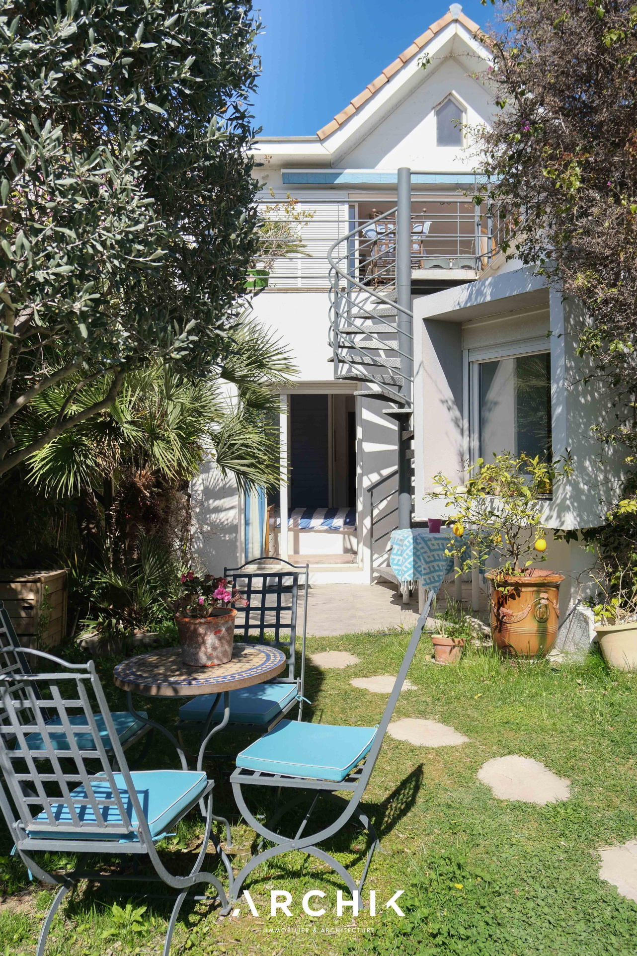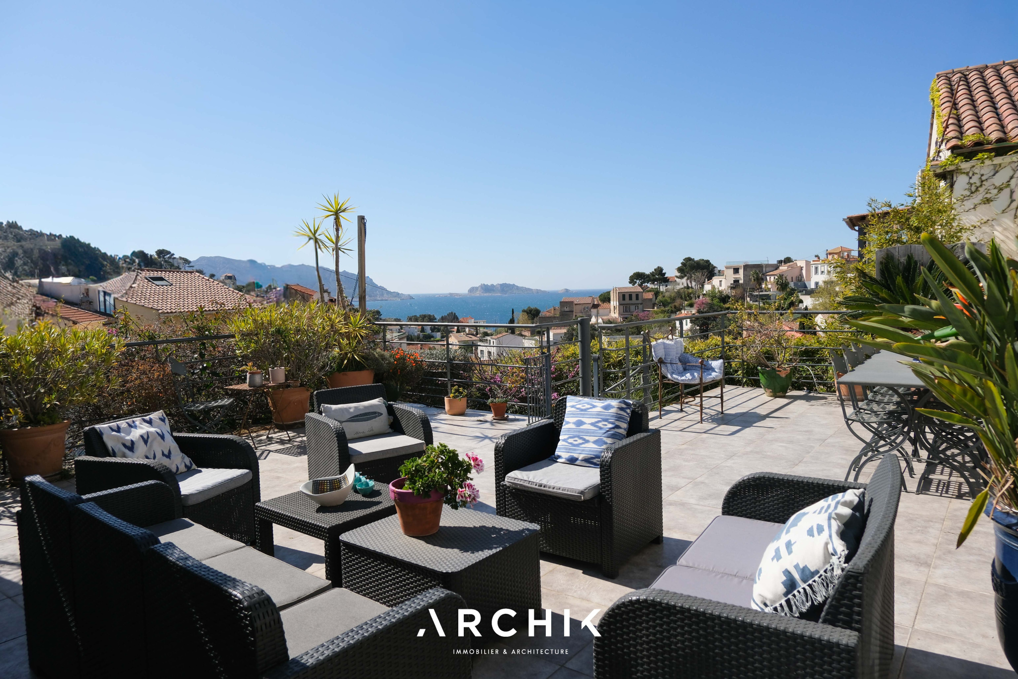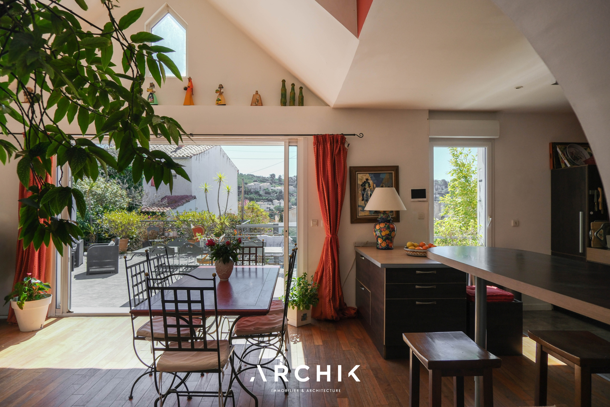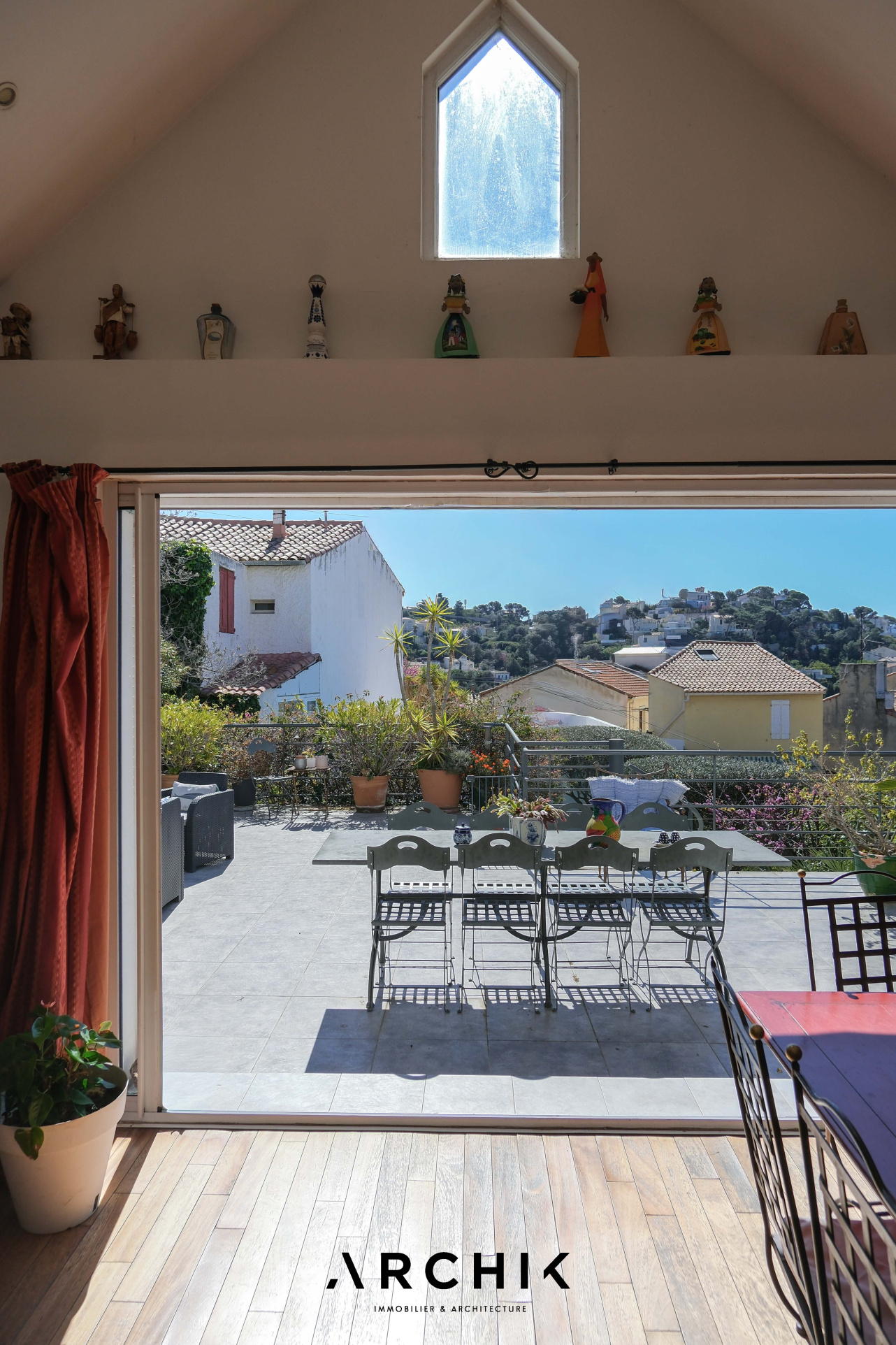 Architecture vernaculaire aux inspirations insulaires, cette maison de 163 m2 et son jardin aux accents bucoliques offre des vues panoramiques sur la baie de Marseille et s'insère au sein d'un tissu ancien en plein coeur du quartier de Bompard.