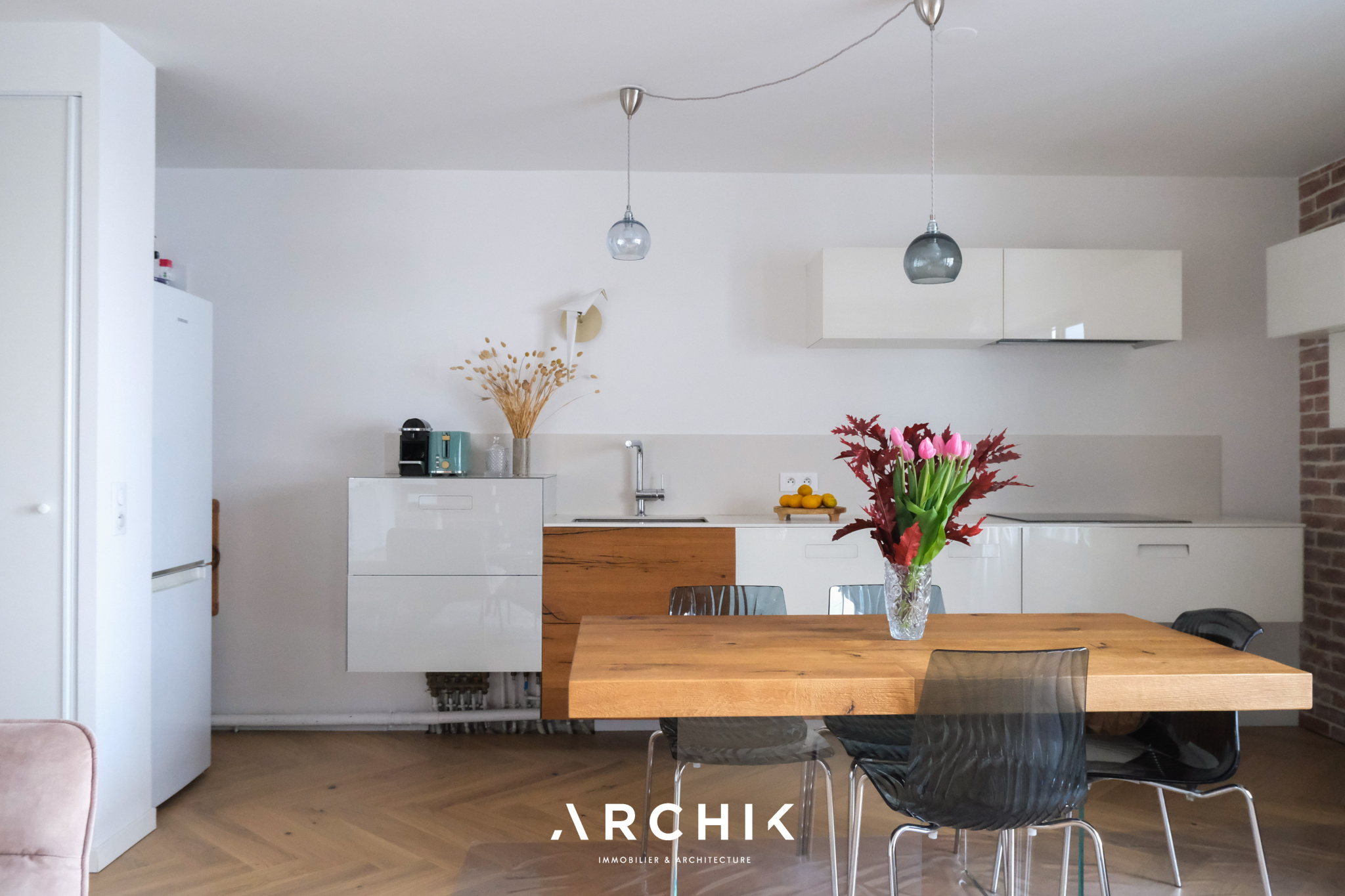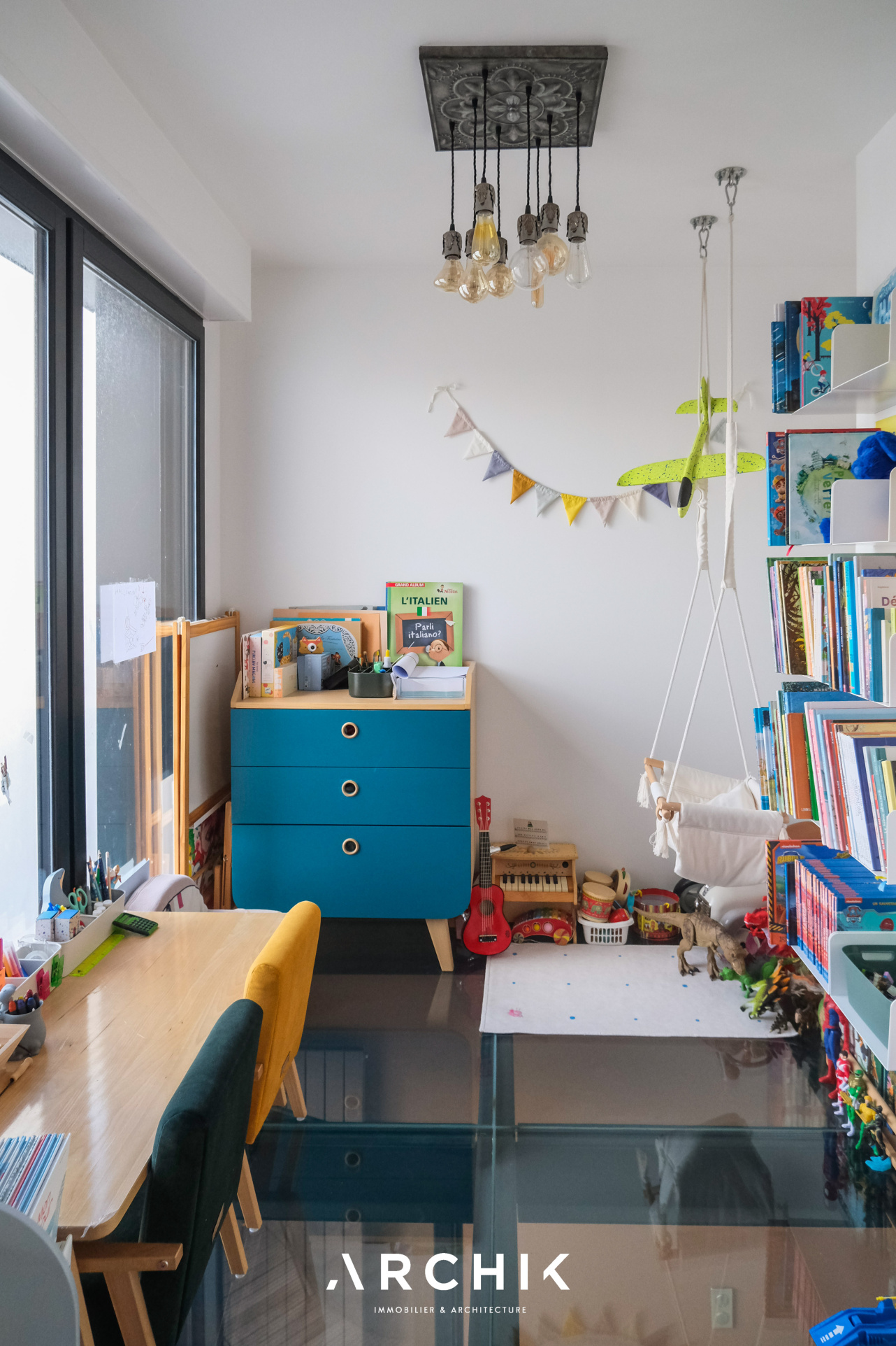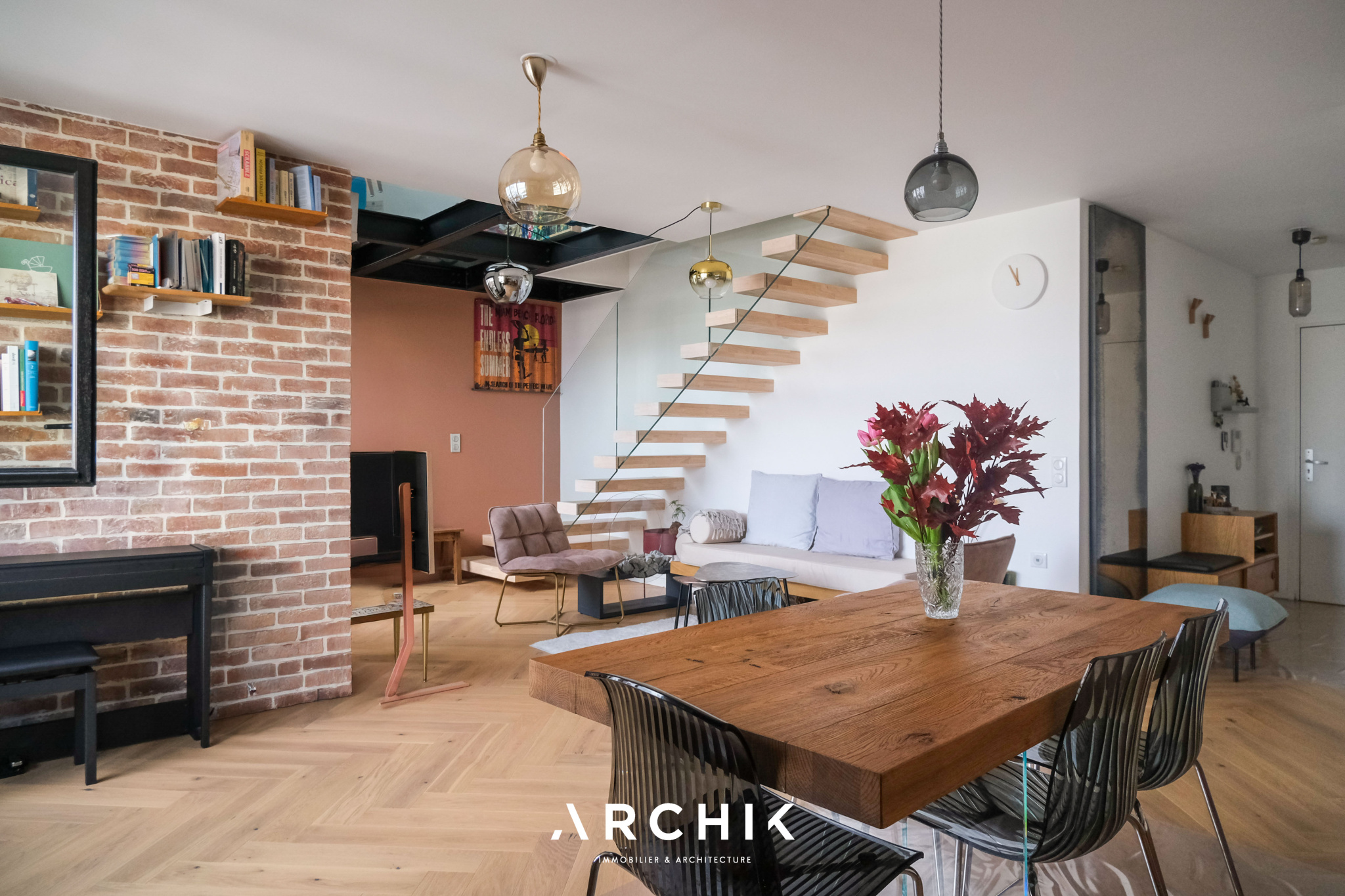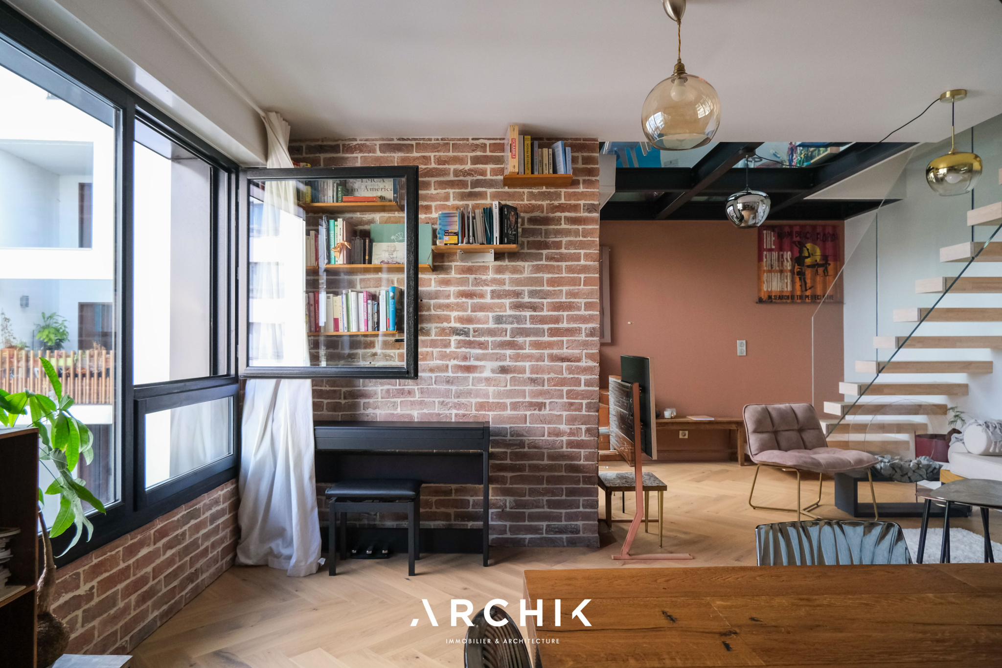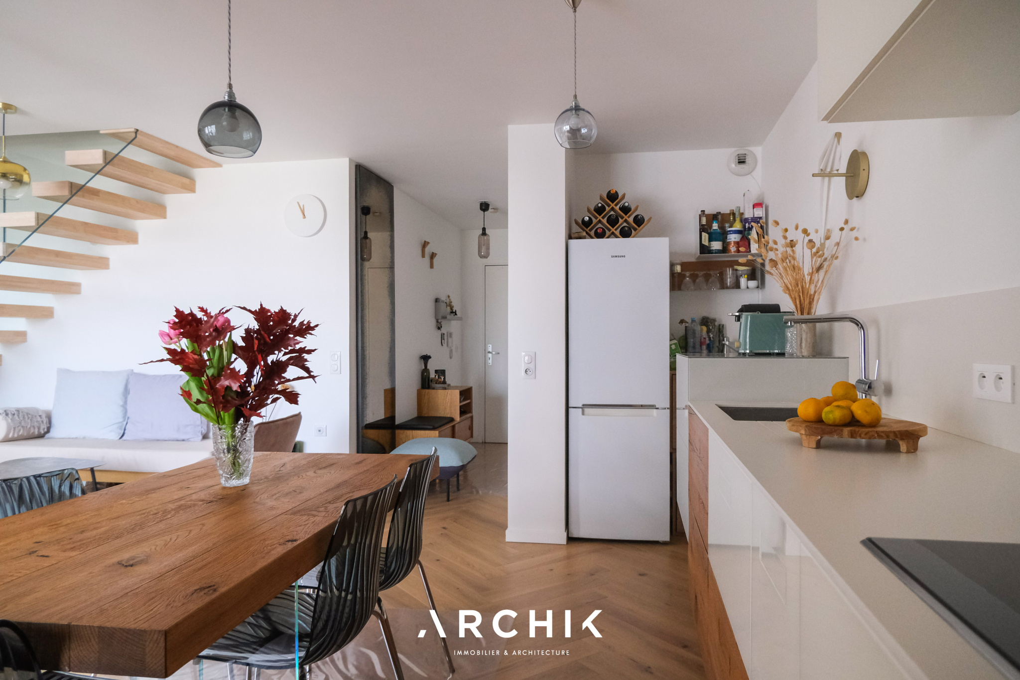 + DE DETAILS WOONBOTEN PARIS ALENTOURS | Pantin 730 000 € Type de bien Appartement Surface 74 m2 Chambre(s) 2 Extérieur Terrasse Courant Contemporain Architecture À vivre Réference AP425 ON AIMELa vue sur le Canal La terrasseSes tons chaleureuxNOUS CONTACTER Architecture contemporaine située en bordure du canal de l'Ourcq, cet immeuble accueille en son dernier étage avec ascenseur un appartement de 74 m2 en duplex, comme un manifeste contemporain qui se vit au rythme du canal.Dès l'entrée, les lignes sobres se conjuguent aux matériaux naturels, soulignant les volumes fluides. L'espace de vie se développe autour d'un vaste séjour exposé Nord qui bénéficie d'une terrasse de 5 m2. Le parquet en point à bâtons rompus et les murs aux teintes chaudes dialoguent avec un escalier aérien en bois clair, élément marqué reliant les deux niveaux. Le salon, captant la lumière grâce à ses larges baies vitrées, s'ouvre sur un coin salle à manger convivial et une cuisine soulignée par un mur de briques apparentes.À l'étage, l'espace nuit se compose de deux chambres au calme, pensées comme des cocons. La chambre parentale joue la sobriété, attenante à la salle de bain aux tonalités minérales qui associe terrazzo et Zelliges en chevrons. La chambre d'enfant, ludique et fonctionnelle, s'organise autour de rangements sur-mesure et d'un coin jeux baigné de lumière de toute part.Depuis les fenêtres, la vue sur le canal et les toits végétalisés renforce le sentiment d'ouverture et de respiration urbaine, au fil de l'eau. Un duplex contemporain baigné de lumière et bercé au rythme du canal. LE QUARTIER Pantin Située aux portes de Paris et limitrophe du 19ème arrondissement, Pantin est une ville à la fois dynamique et créative en pleine mutation qui allie le charme de son histoire à une modernité vibrante. VOTRE CONTACT Saïda VISSER 06 24 57 10 56 saida.visser@archik.fr DIAGNOSTICTRANSPORTSM5 EGLISE DE PANTINPARTAGERDétail du diagnostic Diagnostic de performance énergétique 60 KWh/m².an 14* kg CO2/m².an Logement économeABCDEFGLogement énergivore DPE vierge Consommations non exploitables Non soumis au diagnostic * Dont émissions de gaz à effet de serreFaible émission de GESABCDEFGForte émission de GES 14 KgéqCO2 / m².an GES vierge Consommations non exploitables Montant estimé des dépenses annuelles d'énergie pour un usage standard : entre 1500 et 3000 € TTC/an . Date de référence des prix de l'énergie pour établie cette estimation : 01/01/2023 Les informations sur les risques auxquels ce bien est exposé sont disponibles sur le site Géorisques : www.georisques.gouv.fr Vous souhaitez avoir plus d'informations ? Remplissez le formulaire ou contactez directement la personne en charge de ce bien. NOM* PRÉNOM* EMAIL* TÉLÉPHONE* MESSAGE Je souhaite recevoir la Newsletter ARCHIK VOTRE CONTACT Saïda VISSER 06 24 57 10 56 saida.visser@archik.fr Découvrez aussi ...VENDRENos biens en venteNOS BIENS VENDUS