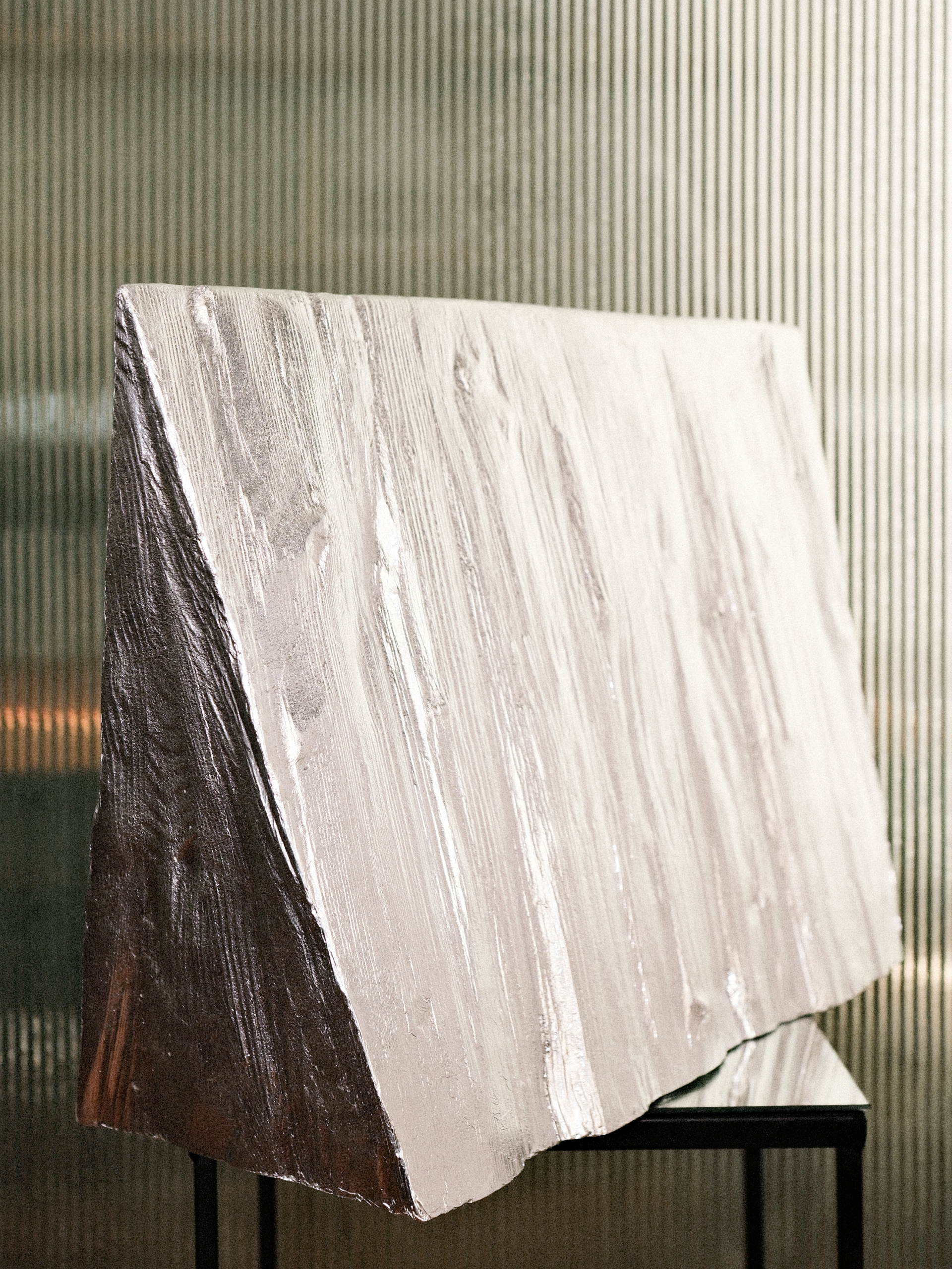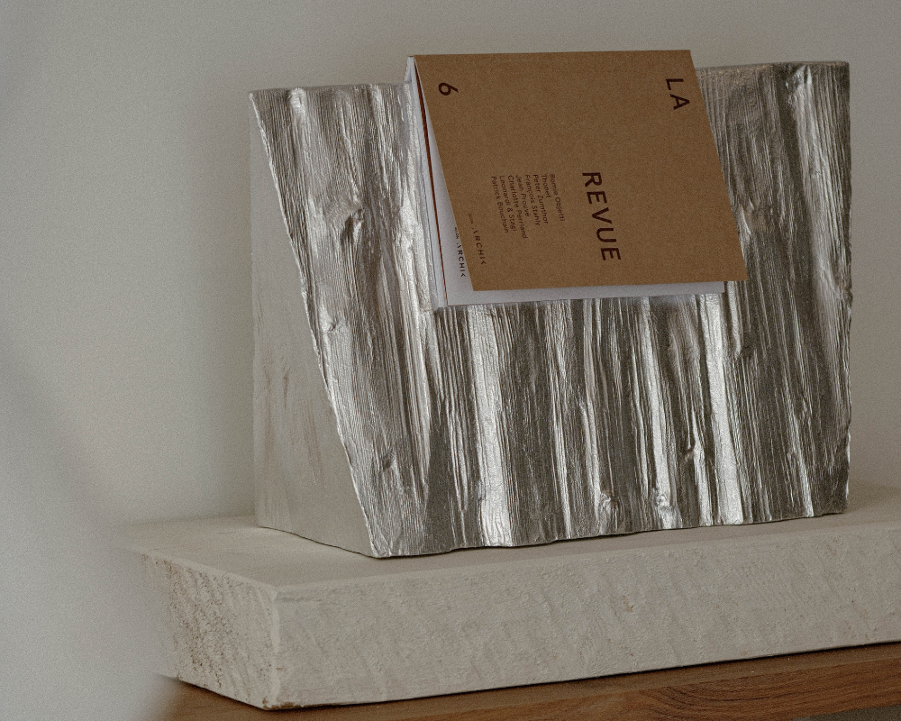 À LIVRE OUVERT THIBAULT HUGUET - 2025 1 390 €MatériauxCambiumDimensionsLongueur - 270 mm Largeur - 140 mm Hauteur - 220 mmDétailsPoids - 8kgLimité à10 exemplairesFabricationFrance (Marseille)Délais4 semaines A LIVRE OUVERT – 1 390 € À l’occasion des 10 ans d’ARCHIK, l’agence a réuni 10 artistes et designers et les a invités à revisiter à travers des éditions exclusives, un même objet : le serre-livre. Une variation sur un même thème, mettant à l’œuvre différents savoir-faire et matériaux pour révéler toute la richesse stylistique d’un classique des bibliothèques. Une collection présentée lors de l’exposition EX LIBRIS.LE DESIGNERThibault HuguetAprès une formation de designer industriel et un master à l’École supérieure d’art et design de Saint-Étienne obtenu en 2014, Thibault Huguet travaille dans de grandes agences de design avant de créer son propre studio en 2020, maintenant installé dans les ateliers Zaventem en Belgique. En 2024 et en 2025, il se voit offrir la curation des espaces « Factory » de la Paris Design Week avec son collectif Meet Met Met. En février 2024, sa LAMP#1 rentre dans les collections du Mobilier National. En parallèle de ses activités, il enseigne le design à l’école Boulle.En 2026, la Maison ARCHIK Marseille exposera son travail de recherche sur l’œuvre de Fernand Pouillon, en particulier son travail de la pierre, en résonance avec son livre Les Pierres Sauvages.Pour la collection « Ex Libris », il livre une pièce d’un nouveau genre, entre le porte-livre et le marque-page, entre la sculpture et le meuble, imaginée selon la technique d’ébénisterie dite « à livre ouvert », qui consiste à réaliser un motif décoratif symétrique à partir du dessin des veines du bois, d’une planche ou d’une loupe, sciée en deux. Ce nom à double lecture, qui devient alors un jeu de mot, évoque à la fois l’usage mais aussi la conception de l’objet. Façonnée en pin massif fendu puis recouvert d’une feuille d’aluminium martelée, technique mise au point dans son atelier, cet objet sculptural s’inscrit dans la continuité de sa série « Cambium » qui met au jour une méthode de travail insolite.Découvrez aussi ...Notre dernier bien Notre dernier projetNos évènements