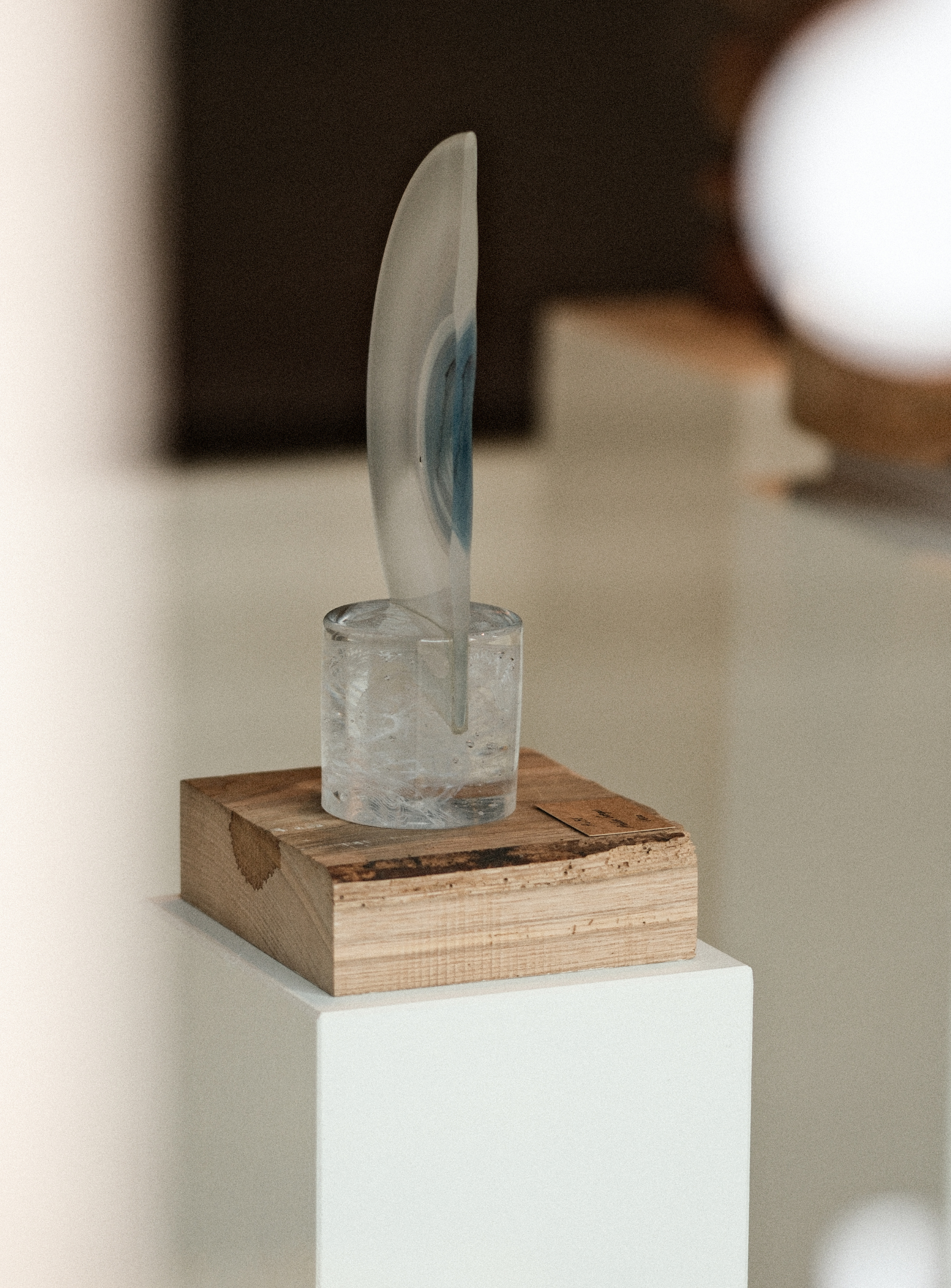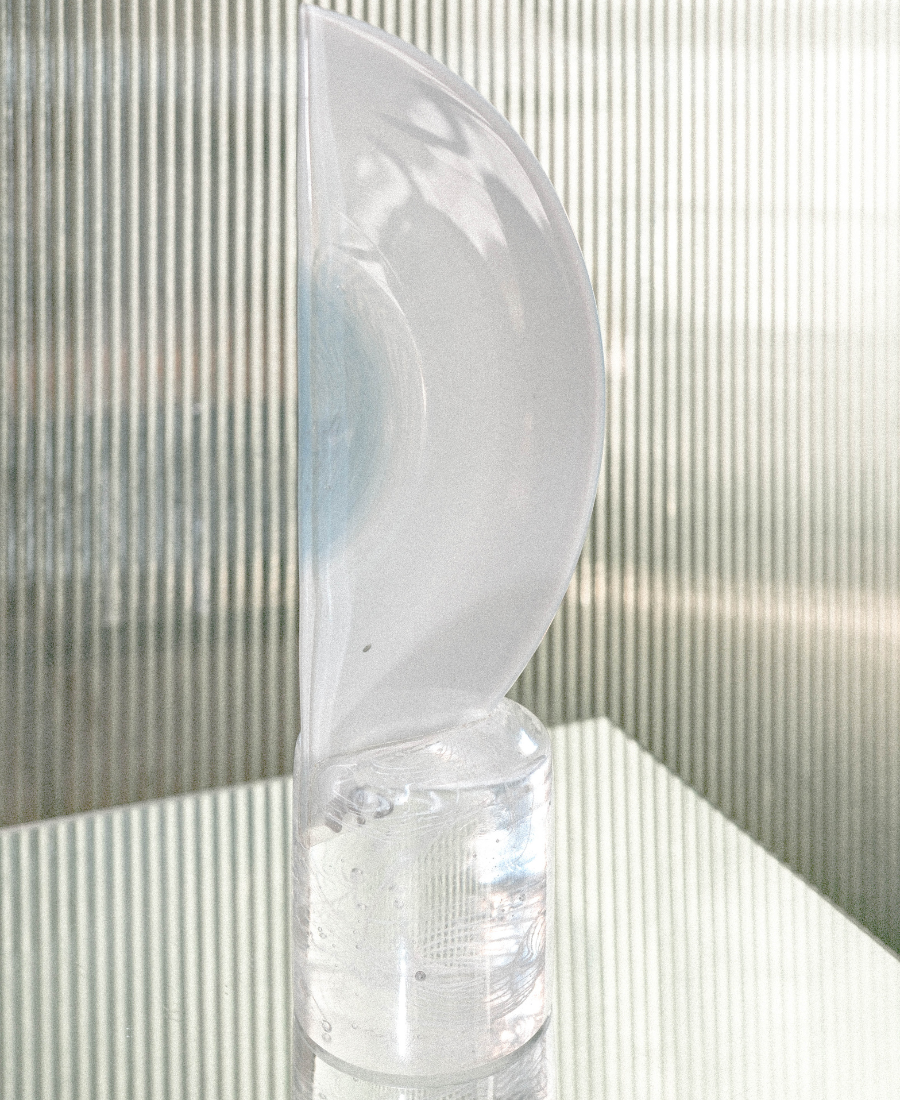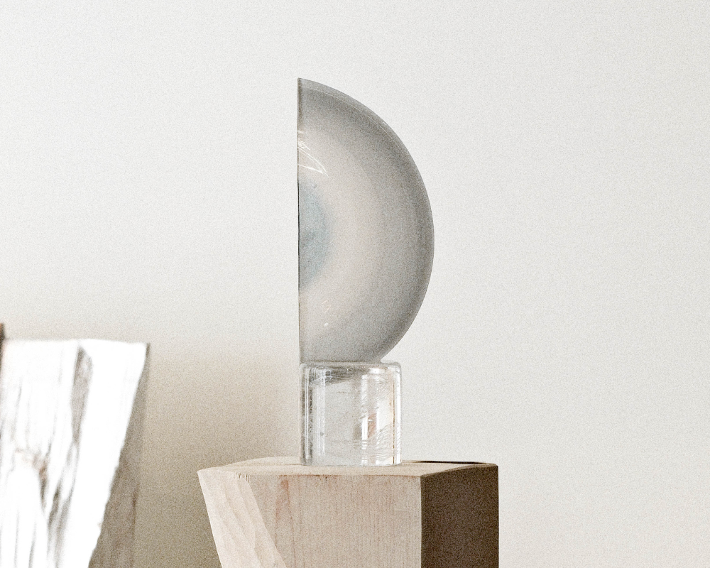 ALBE ATELIER GEORGE - 2025 980 €MatériauxVerreDimensionsLongueur - 110 mm Largeur - 80 mm Hauteur - 300 mmDétailsPoids - 1,421kgLimité à10 exemplairesFabricationFrance (Bourgogne)Délais6 à 8 semaines ALBE - 980 € À l’occasion des 10 ans d’ARCHIK, l’agence a réuni 10 artistes et designers et les a invités à revisiter à travers des éditions exclusives, un même objet : le serre-livre. Une variation sur un même thème, mettant à l’œuvre différents savoir-faire et matériaux pour révéler toute la richesse stylistique d’un classique des bibliothèques. Une collection présentée lors de l’exposition EX LIBRIS.LES DESIGNERSAtelier GeorgeAtelier George est un duo composé d’Eve George et de Laurent Fichot, designers et souffleurs de verre. Leur travail, qui développe des recherches formelles et techniques autour du verre, est exposé notamment à Design Miami, au PAD Paris, à la Paris Design Week, ainsi que chez Artcurial en 2024. Le duo est également lauréat du Concorso Internazionale di Vetro artistico e di Design (Milan, 2018) et de l’Académie des Savoir-Faire (Fondation Hermès, 2021). Il est soutenu par des institutions telles que la Fondation Banque Populaire, le ministère de la Culture ou encore la Villa Albertine à New York. En 2021, Atelier George imaginaient pour ARCHIK une première édition exclusive, Tango, mettant à l’honneur le verre soufflé.Leur nouvelle pièce « Albe » créée pour la collection « Ex Libris » est inspirée d’une demi-lune, symbole d’un moment propice à la lecture. Sa forme en disque tronqué semble s’éclipser derrière les ouvrages d’une bibliothèque. Elle émerge d’un bloc de verre transparent, moiré de bulles et d’ondes blanches, aux allures de reflets. La composition évoque également la voile d’un bateau, et avec elle le voyage, imaginaire ou introspectif. Le demi-disque est soufflé selon la technique ancestrale de la cive : une bulle de verre en fusion que l’on étire en disque par la force centrifuge. La base est réalisée en verre massif, coulé à chaud.Découvrez aussi ...Notre dernier bien Notre dernier projetNos évènements