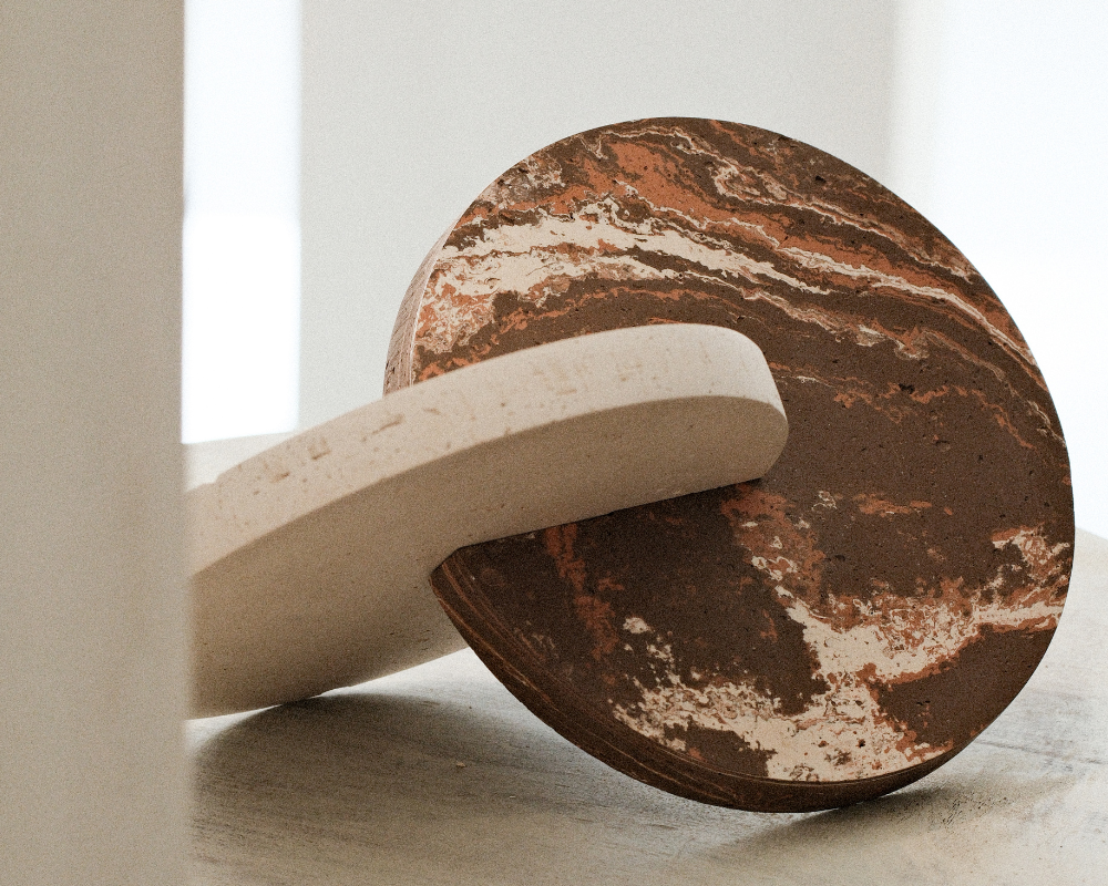 PI ANTHONY GUERREE - 2025 390 €MatériauxTerre mêléeDimensionsLongueur - 270 mm Largeur - 140 mm Épaisseur - 20mmDétailsPoids - 1,418kgLimité à10 exemplairesFabricationItalie (Fornace Brioni)Délais4 semaines PI - 390 € À l’occasion des 10 ans d’ARCHIK, l’agence a réuni 10 artistes et designers et les a invités à revisiter à travers des éditions exclusives, un même objet : le serre-livre. Une variation sur un même thème, mettant à l’œuvre différents savoir-faire et matériaux pour révéler toute la richesse stylistique d’un classique des bibliothèques. Une collection présentée lors de l’exposition EX LIBRIS dans le cadre de la Paris Design Week 2025.LE DESIGNERAnthony GuérréeAnthony Guerrée est un designer français formé à l’École Boulle, dont le parcours témoigne d’un attachement profond à l’artisanat de haute facture et à l’histoire des arts décoratifs. En 2022, l’une de ses assises intègre les collections du Mobilier National. Quelques mois plus tard, il reçoit le prix « French Design 100 » à l’Élysée. Il enseigne aujourd’hui le design à l’École Boulle, tout en collaborant avec des éditeurs et des galeries à l’international.En 2023, alors directeur du studio de design d’Habitat, il signe une exposition dans la Maison ARCHIK de Marseille, qui témoigne de son travail de recherche autour de l’assise.Pour la collection Ex Libris, il imagine avec la manufacture familiale italienne Fornace Brioni une pièce intitulée PI : un presse-papier composé de deux cercles de terre cuites imbriqués, l’un en terre unie d’un ton écru, proche du travertin ; l’autre réalisé selon la technique artisanale du variegato, qui mêle différentes terres colorées pour créer des marbrures uniques. Un jeu d’assemblage de formes et de matières dans une palette inspirée de la célèbre Collection Blanche de Gallimard.Découvrez aussi ...Notre dernier bien Notre dernier projetNos évènements