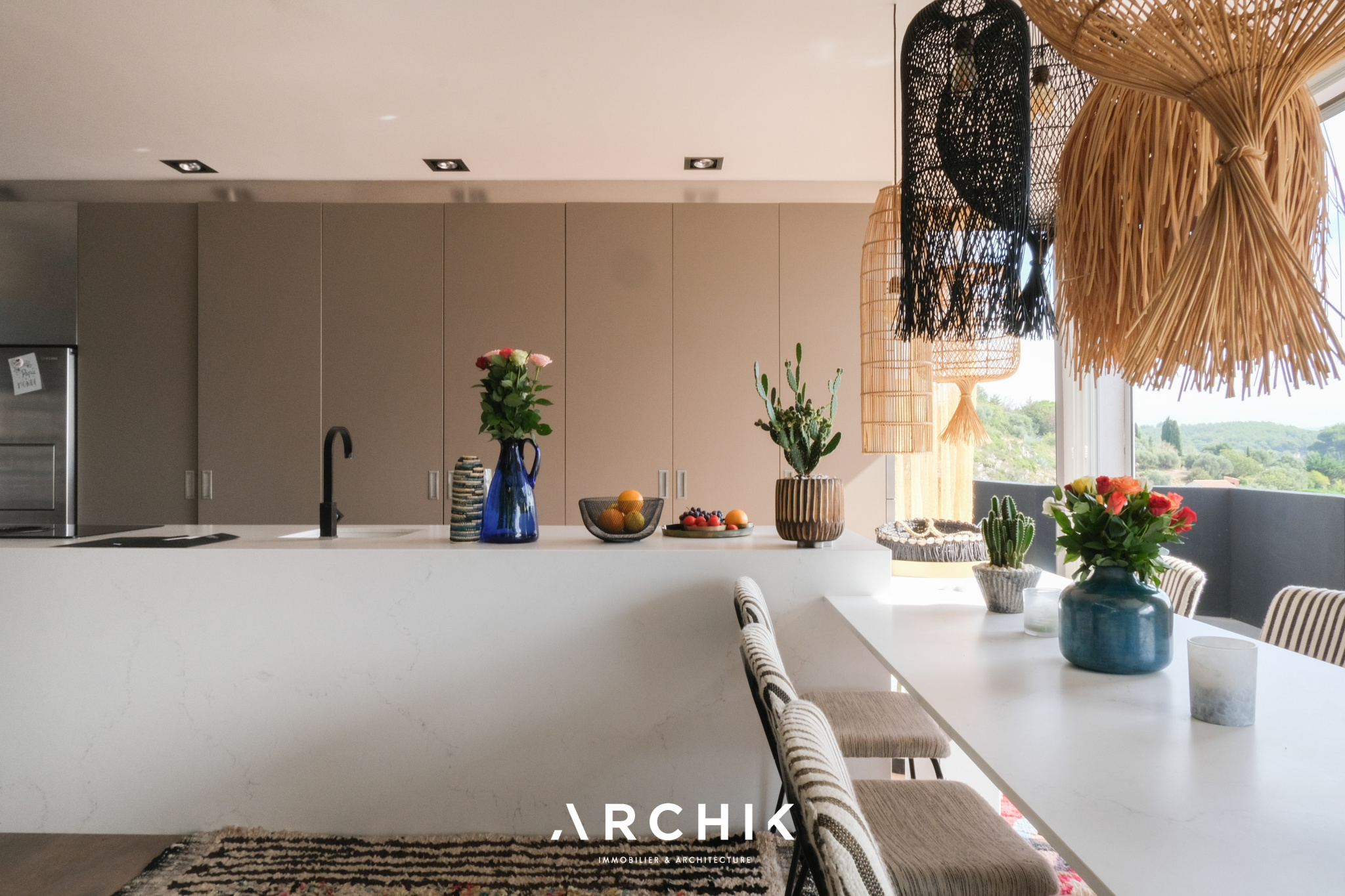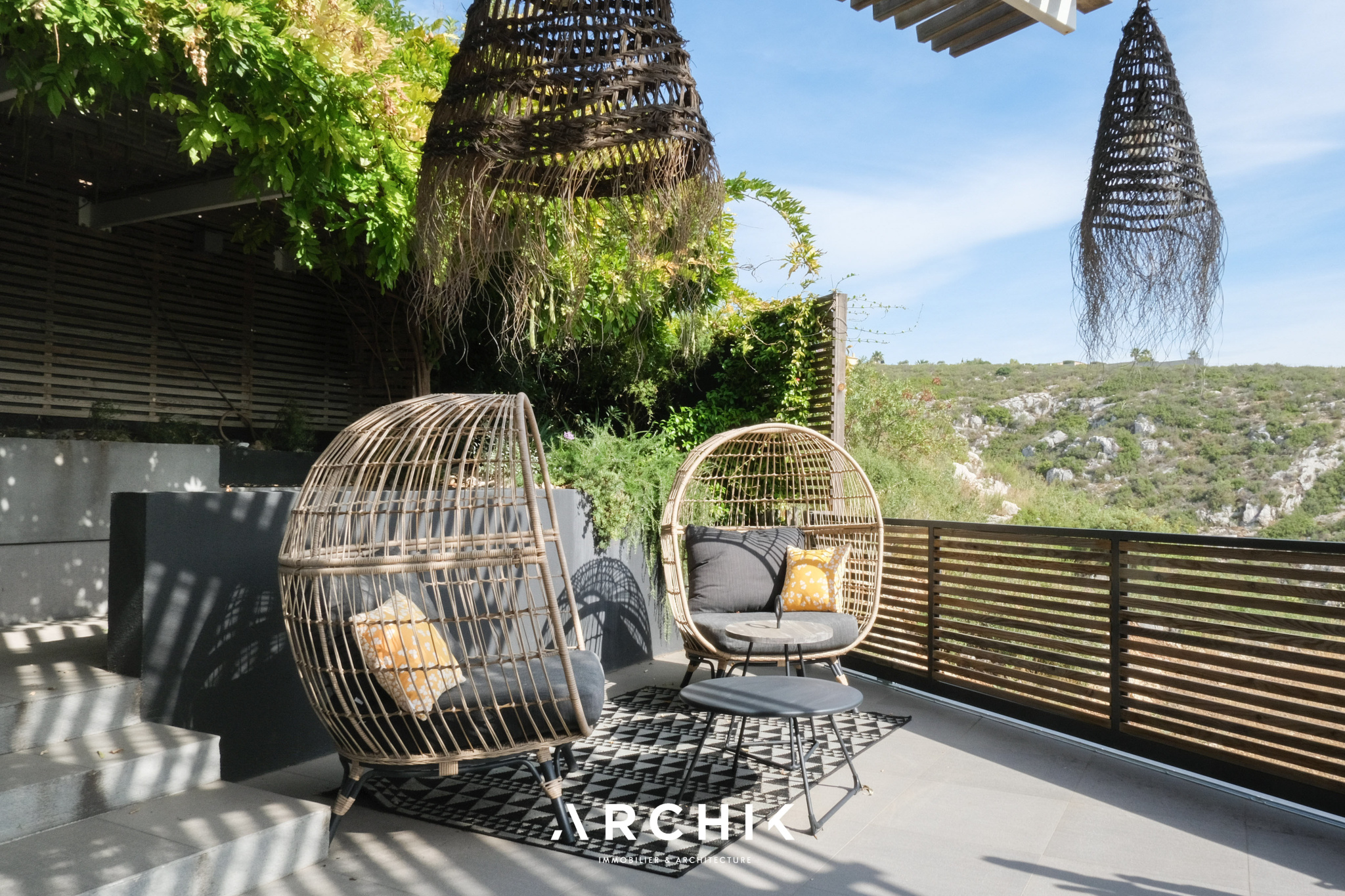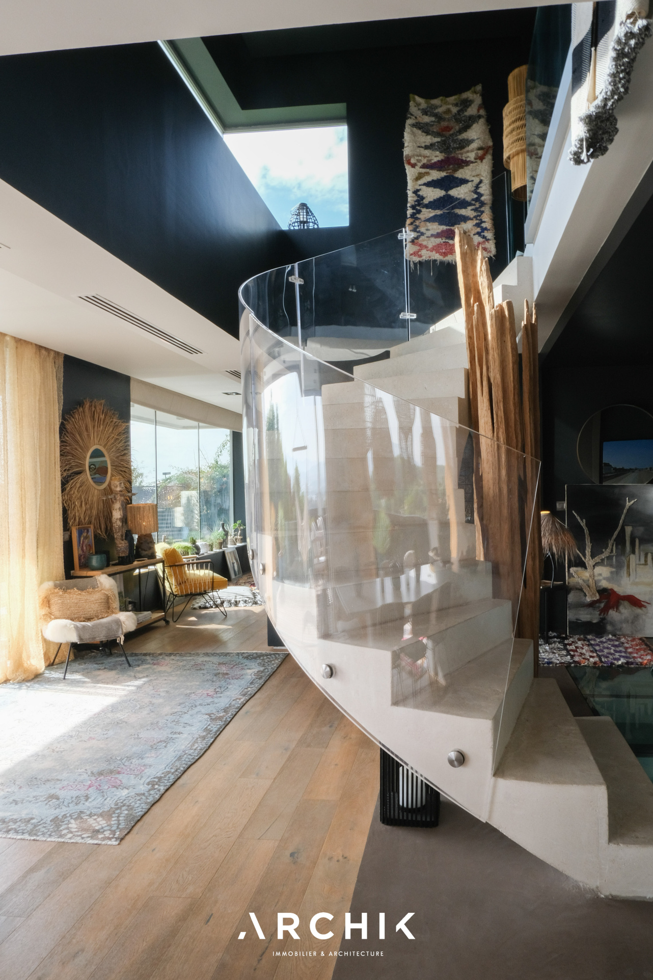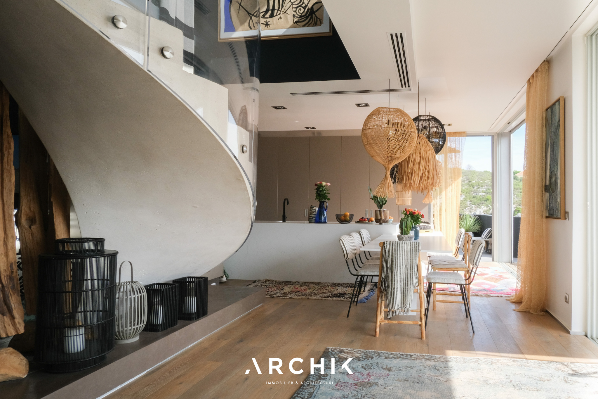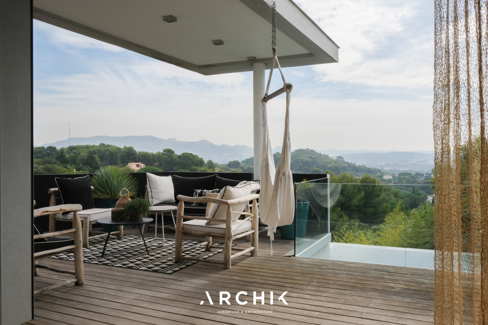 + DE DETAILS BABEL MARSEILLE 13TH | Château-Gombert 1 495 000 € Type of property House Area 269 m2 Room(s) 4 Exterior Terrasse, jardin Current Contemporary Condition To live in Reference OP1770 WE LIKEThe spectacular view The surrounding nature The solar decorationCONTACT US Contemporary architecture, this contemplative architect-designed villa of 153 m2 and its basement of 116 m2 nestled on a plot of 691 m2 on the heights of the residential district of Château-Gombert, faces a spectacular view of Marseille, the Garlaban and the Marseilleveyre massif.Sleek and sculptural, the hillside villa is distinguished by its cubic appearance and blends perfectly into the surrounding nature thanks to its large mirrored bays. The house is revealed by the first level where there is a parental space with a suite with a bathroom facing the view, and a children's area composed of two bedrooms with separate dressing room and a large bathroom. Caught by the view and led towards an elegant spiral concrete staircase, we discover the level of the living spaces. Here, a vast living room with an open fireplace faces the kitchen whose light tones and full-height cupboards blend into the decor. The room opens to the outside through large aluminum sliding doors, which disappear before the majestic panorama, allowing a gentle transition between interior and exterior. The lightly smoked oak parquet floors accentuate the ambient softness, while the unbridled mix of materials, textiles and colors, combined with the simplicity of the cubic volume, creates an overall harmony of explosive light. Outside, a first Cumaru beach accesses the infinity pool and its integrated jacuzzi. Adjoining the kitchen, and with access to the hill, a second sheltered terrace gives pride of place to mild summer evenings. The third level houses a TV lounge dressed in Maison Levy wallpaper, a guest bedroom with a shower room, a spectacular wine cellar, a gym and a large laundry room. Four parking spaces complete this property. A haven of contemplative peace, where cheerfulness is the order of the day. LE QUARTIER Château-Gombert With its village atmosphere and its location at the foot of the Etoile massif... YOUR CONTACT Marie TISSERAND +33 (0) 6 76 04 18 30 marie.tisserand@archik.fr DIAGNOSTICSHAREDétail du diagnostic Diagnostic de performance énergétique 106 KWh/m².an 3* kg CO2/m².an Logement économeABCDEFGLogement énergivore DPE vierge Consommations non exploitables Non soumis au diagnostic * Dont émissions de gaz à effet de serreFaible émission de GESABCDEFGForte émission de GES 3 KgéqCO2 / m².an GES vierge Consommations non exploitables Would you like more information ? Remplissez le formulaire ou contactez directement la personne en charge de ce bien. NAME* FIRST NAME* EMAIL* PHONE* MESSAGE I would like to receive the ARCHIK's Newsletter VOTRE CONTACT Marie TISSERAND +33 (0) 6 76 04 18 30 marie.tisserand@archik.fr Discover also ...VALUE YOUR PROPERTYAll our propertiesOUR PROPERTIES SOLD