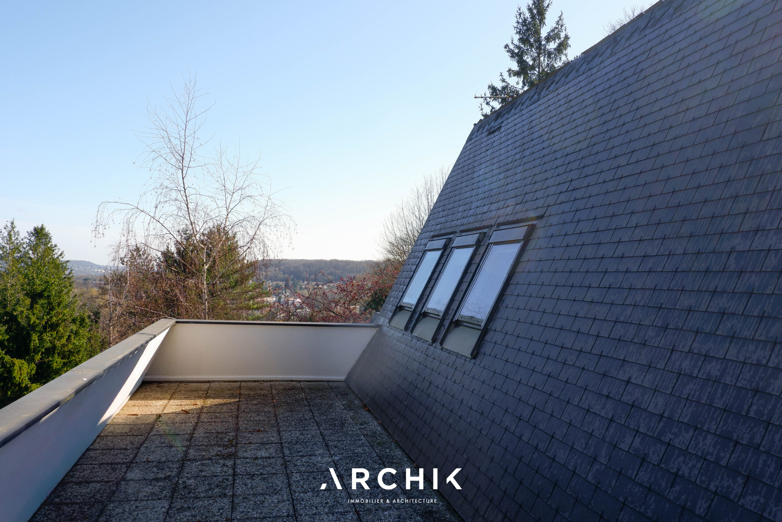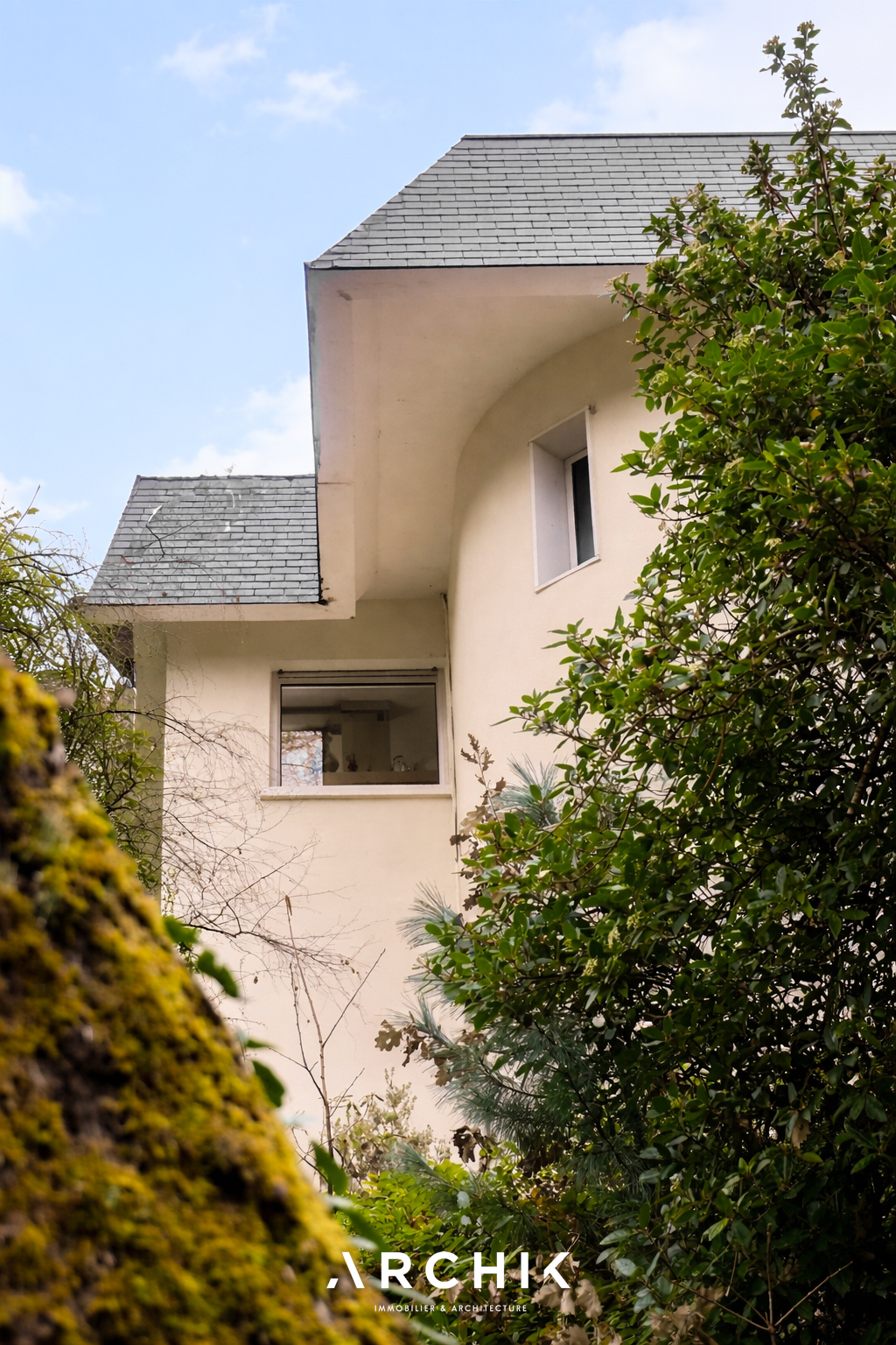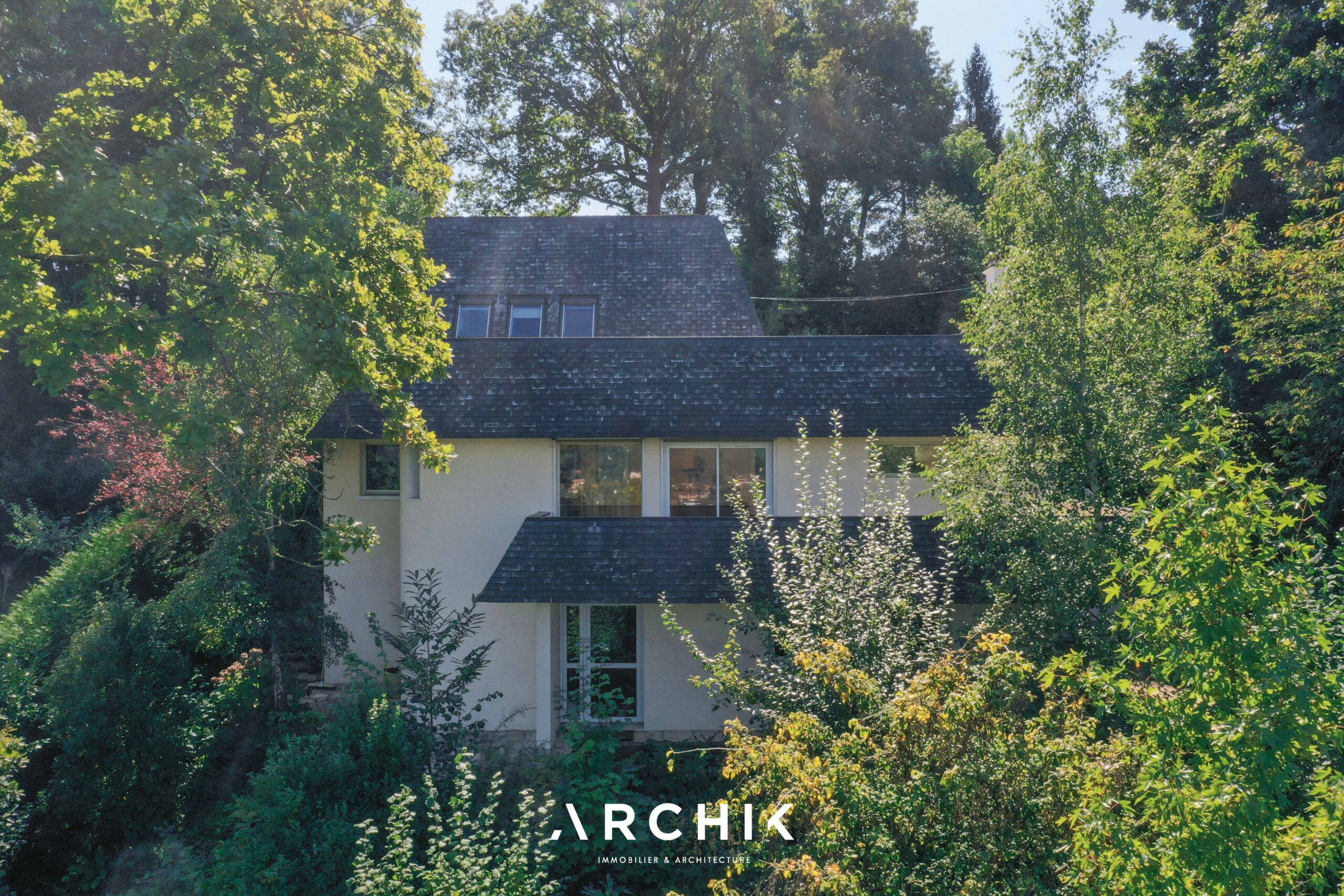 Designed by the Souverain architectural firm, it bears the hallmarks of the 1970s: the house doesn't impose itself, it anchors itself. It adopts low lines, plays of volumes, and that particular way of opening up the view to the landscape, a clear legacy of Frank Lloyd Wright. The three levels of the building nestle into the slope, like natural terraces. Each space finds its perfect orientation: to the east, the gentle warmth of the morning; to the south, the brilliance of daylight filtering through the forest edge; to the north, a panoramic view of the valley. Terraces, balconies, and a majestic rooftop extend this seamless connection with the outdoors. Nature permeates every corner, and light flows freely throughout. At the heart of the main level, the light-filled living room is defined by a custom-designed anthracite metal fireplace. The materials speak an organic language: travertine flooring, a lacquered ceiling, ivory walls, and white lacquered aluminum on all the woodwork. This level also houses a Bulthaup kitchen equipped with Gaggenau appliances and an office, creating a fluid whole where each space continues the dialogue with the landscape. In total, five bedrooms, complemented by three shower rooms and a bathroom, all bathed in light and finished with oak parquet flooring, comprise the sleeping quarters, offering a balance between the coolness of the garden level and views of nature from the upper floors. At the very top, the rooftop becomes a belvedere. The valley unfolds in all its depth, with the garden in the foreground. The garden surrounds the house and seems to protect it. A little further into the garden, hidden from view, a separate 48 m2 cottage, built in 1998, appears to watch over the property. With its own entrance and potential for a 60 m2 extension, it offers great promise: an artist's workshop, a studio, a place to welcome guests, share knowledge, create anything is possible. A two-car garage completes the property.