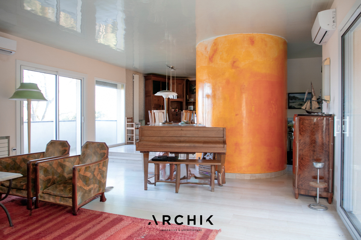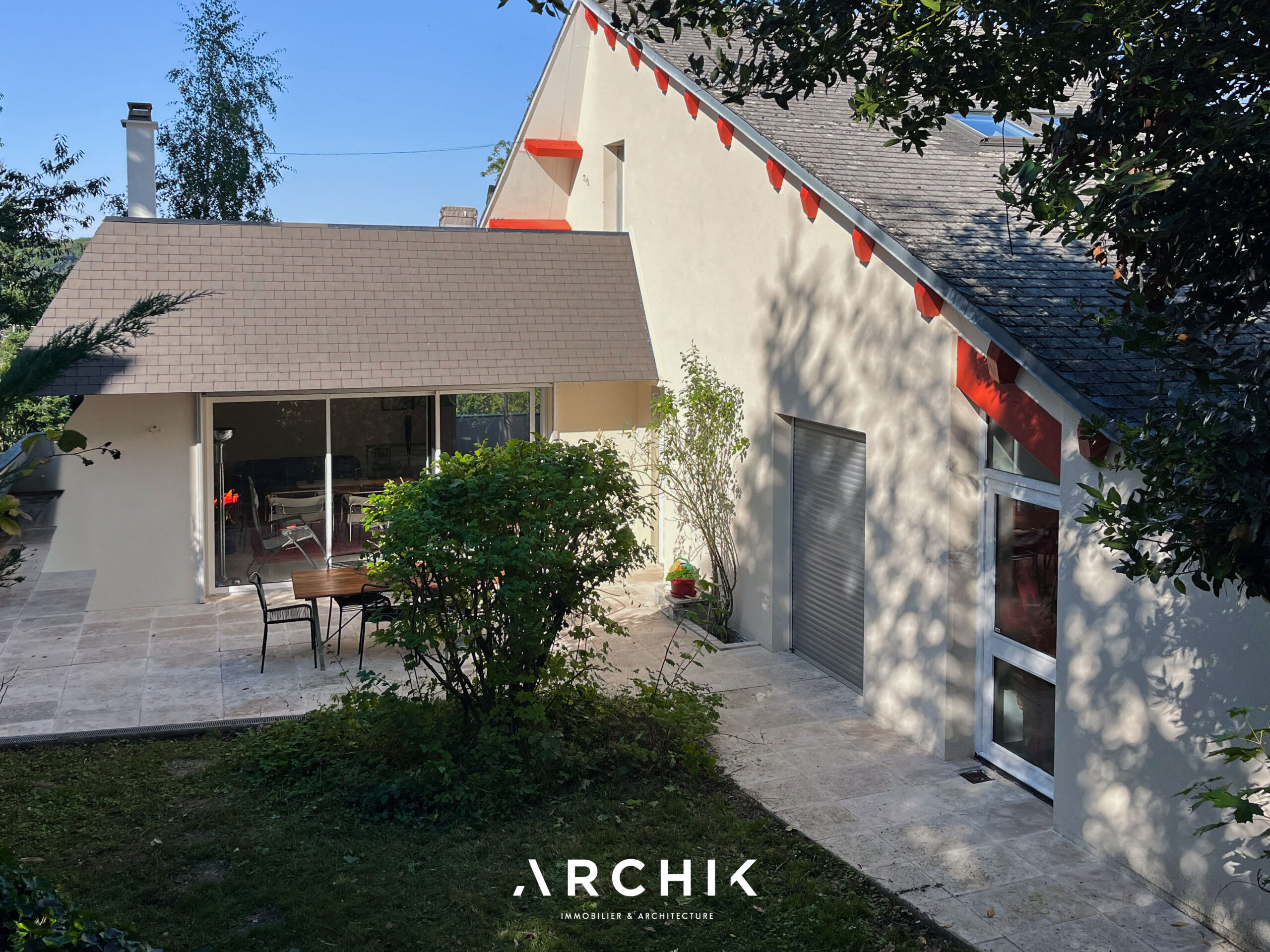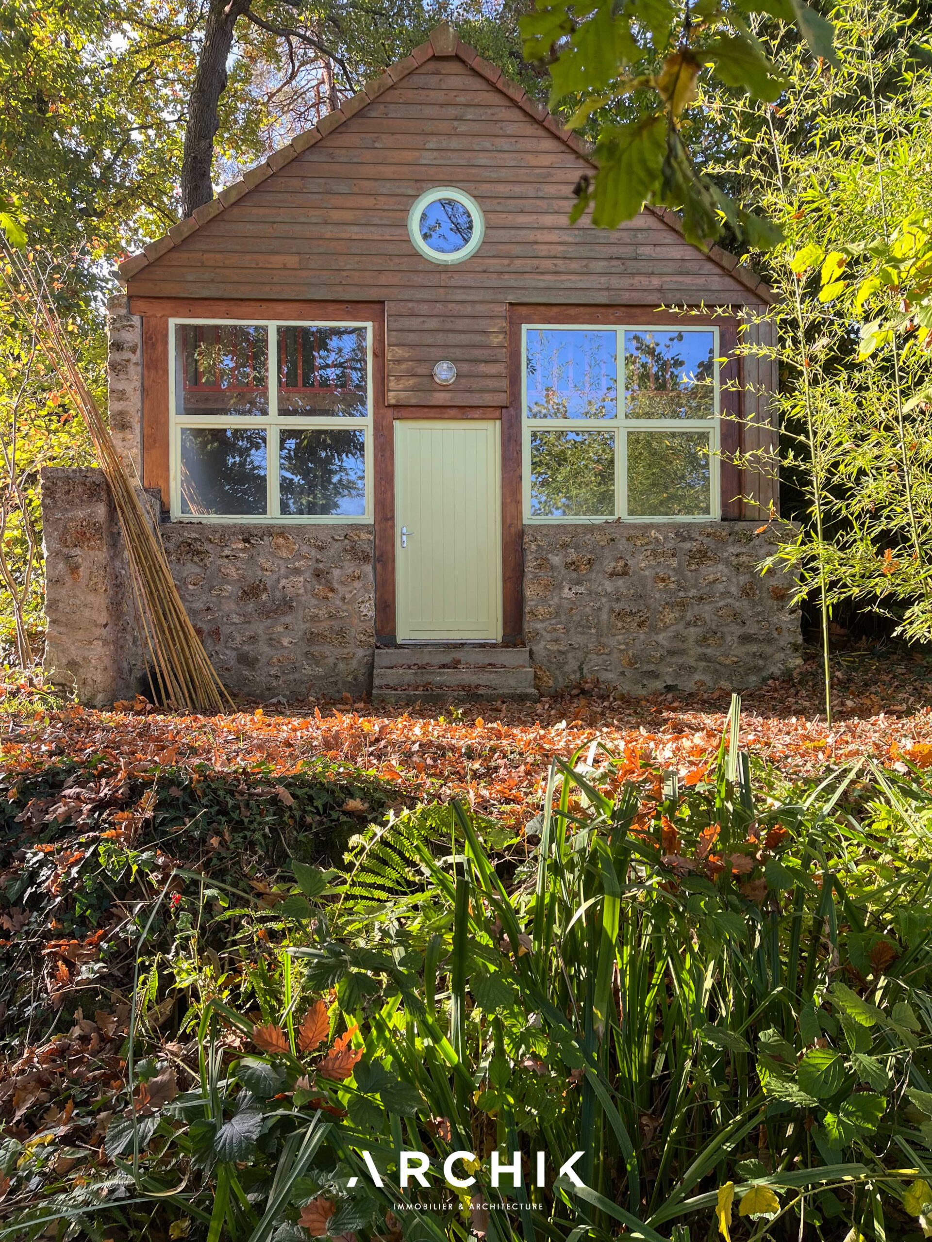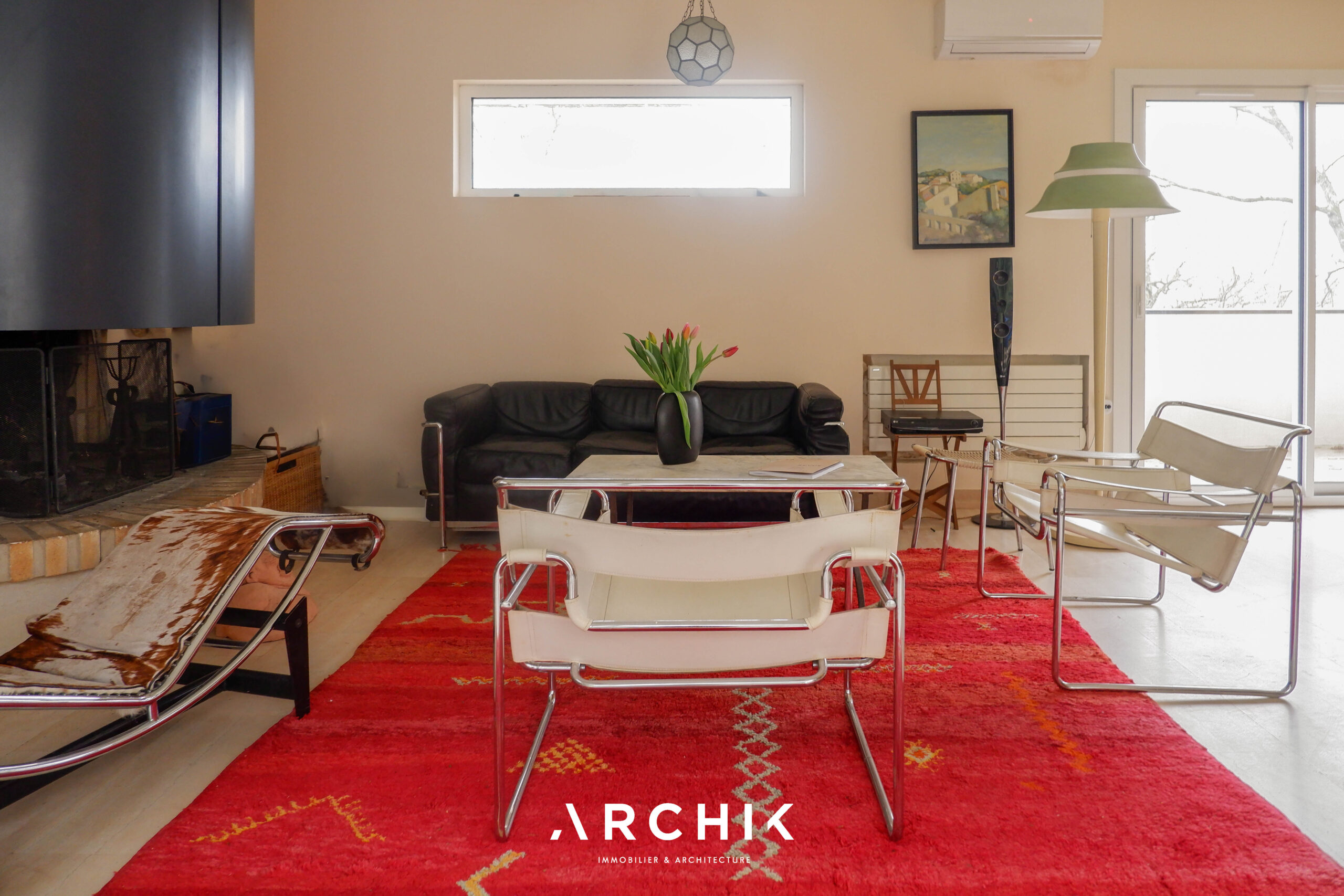 Designed by the Souverain architectural firm, it bears the hallmarks of the 1970s: the house doesn't impose itself, it anchors itself. It adopts low lines, plays of volumes, and that particular way of opening up the view to the landscape, a clear legacy of Frank Lloyd Wright. The three levels of the building nestle into the slope, like natural terraces. Each space finds its perfect orientation: to the east, the gentle warmth of the morning; to the south, the brilliance of daylight filtering through the forest edge; to the north, a panoramic view of the valley. Terraces, balconies, and a majestic rooftop extend this seamless connection with the outdoors. Nature permeates every corner, and light flows freely throughout. At the heart of the main level, the light-filled living room is defined by a custom-designed anthracite metal fireplace. The materials speak an organic language: travertine flooring, a lacquered ceiling, ivory walls, and white lacquered aluminum on all the woodwork. This level also houses a Bulthaup kitchen equipped with Gaggenau appliances and an office, creating a fluid whole where each space continues the dialogue with the landscape. In total, five bedrooms, complemented by three shower rooms and a bathroom, all bathed in light and finished with oak parquet flooring, comprise the sleeping quarters, offering a balance between the coolness of the garden level and views of nature from the upper floors. At the very top, the rooftop becomes a belvedere. The valley unfolds in all its depth, with the garden in the foreground. The garden surrounds the house and seems to protect it. A little further into the garden, hidden from view, a separate 48 m2 cottage, built in 1998, appears to watch over the property. With its own entrance and potential for a 60 m2 extension, it offers great promise: an artist's workshop, a studio, a place to welcome guests, share knowledge, create anything is possible. A two-car garage completes the property.