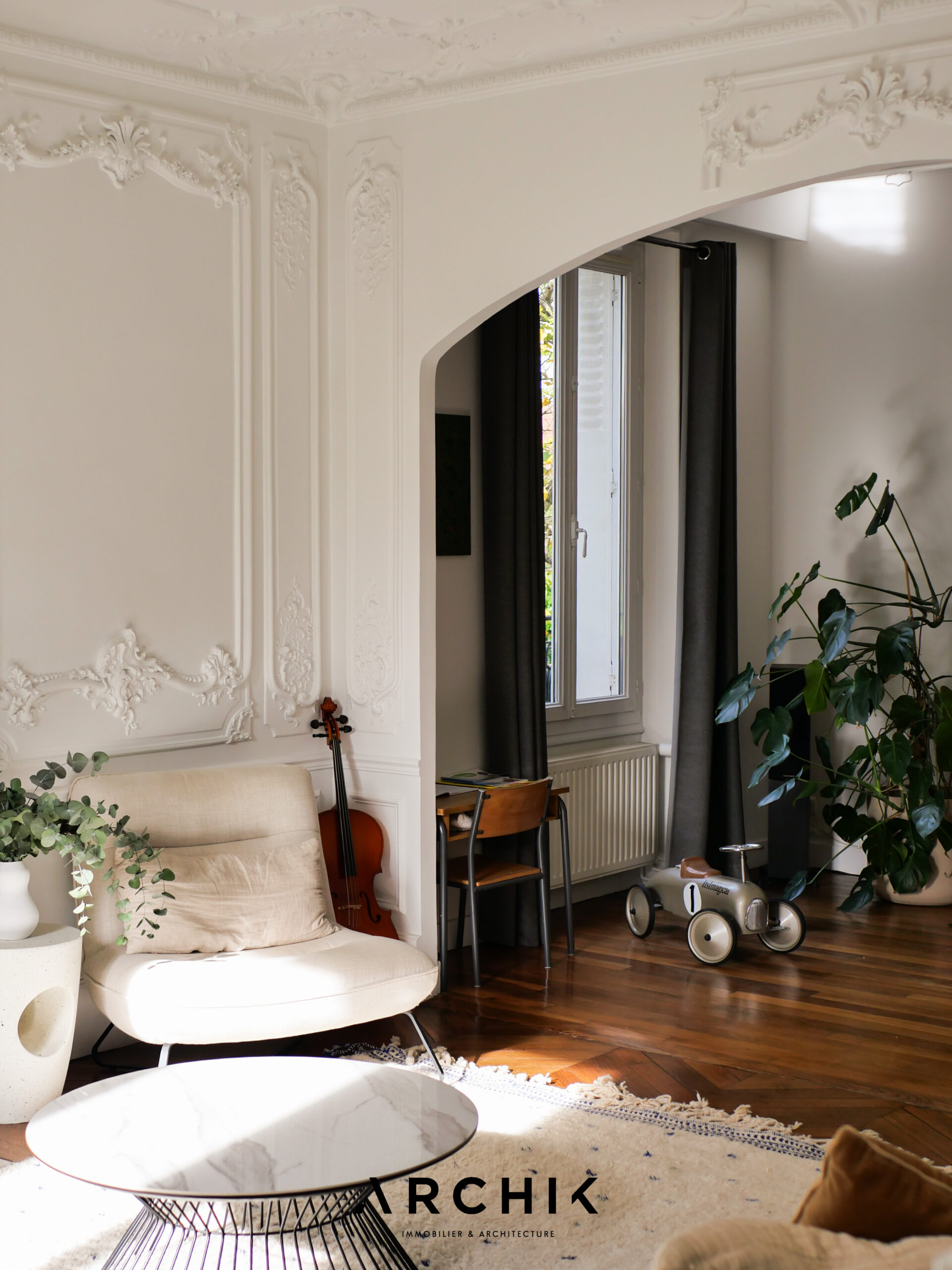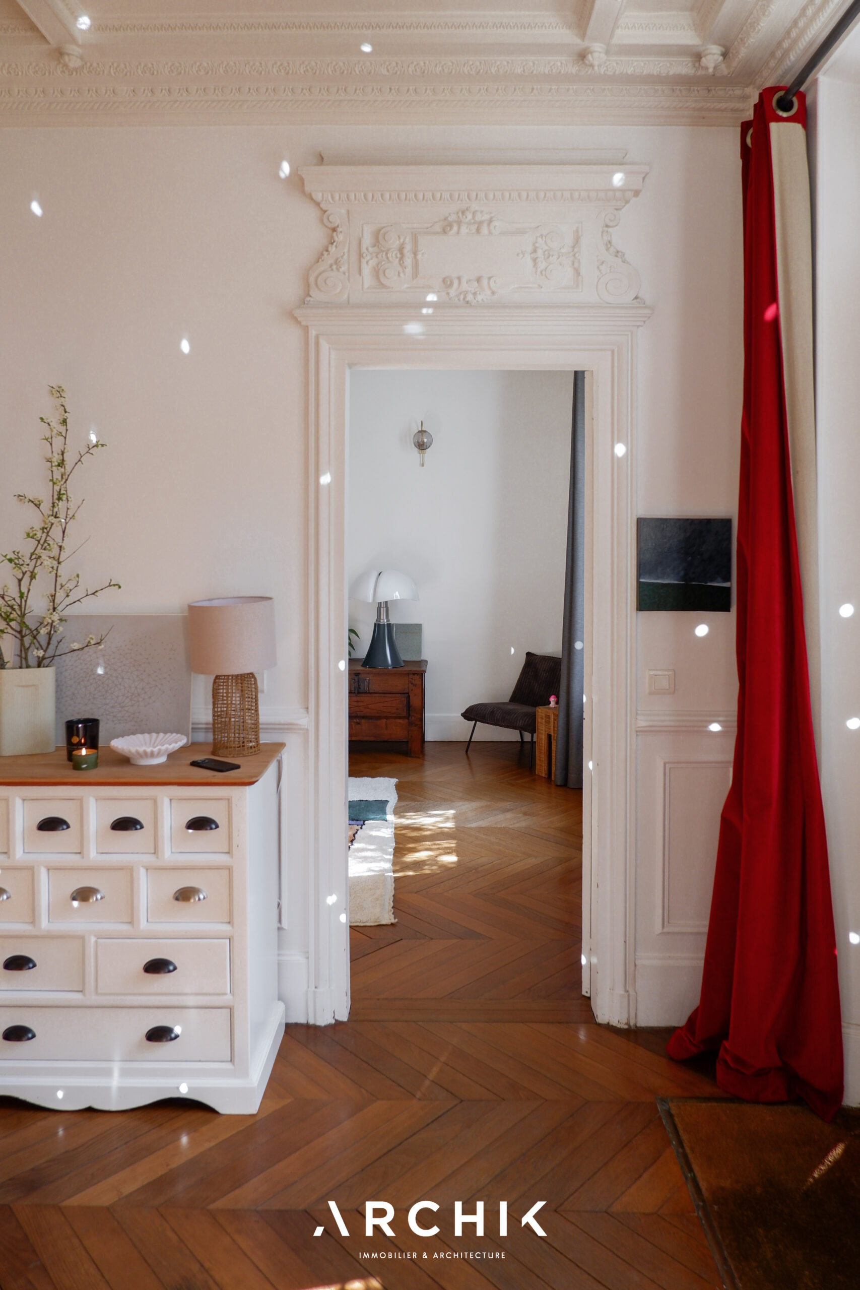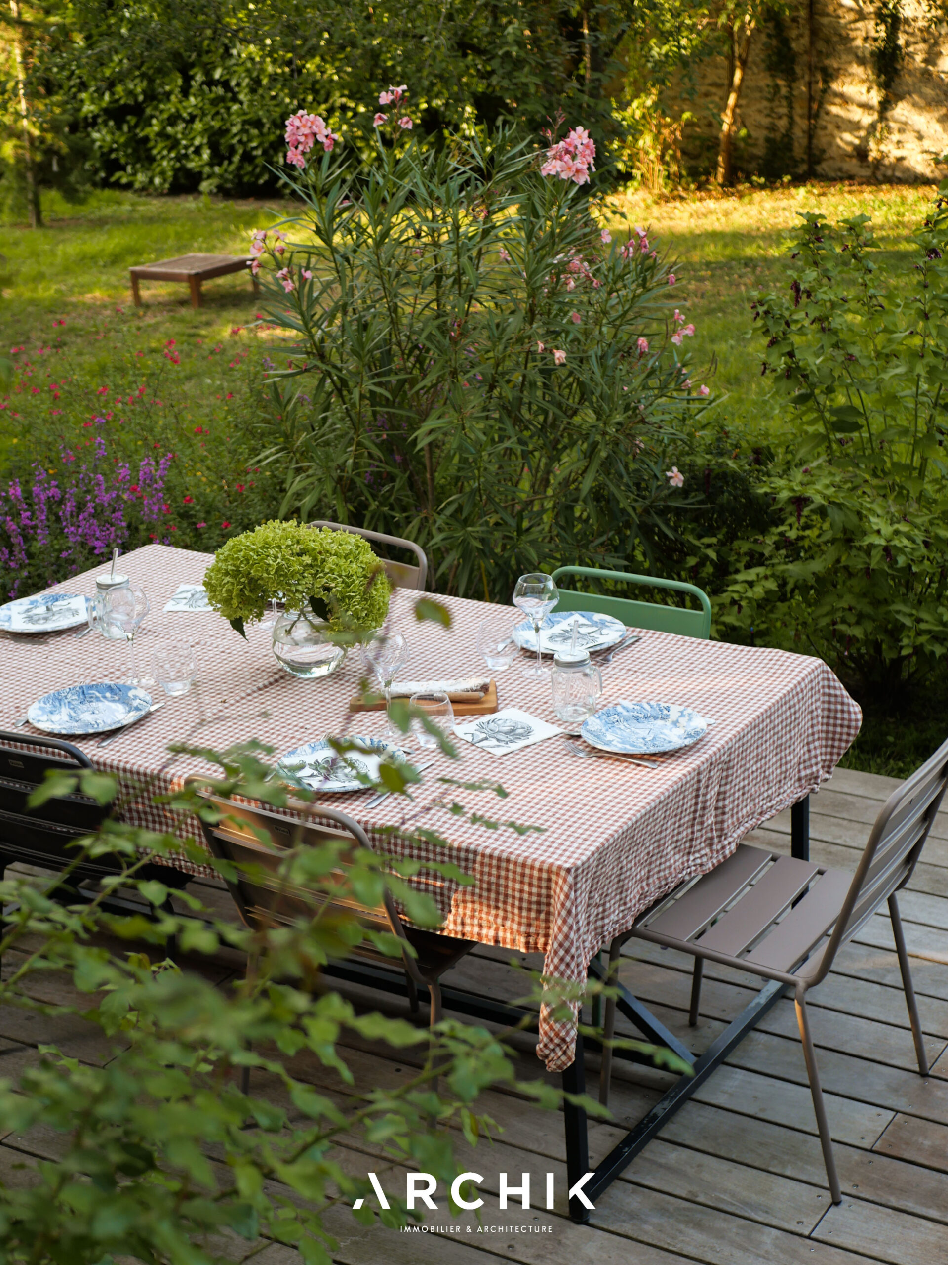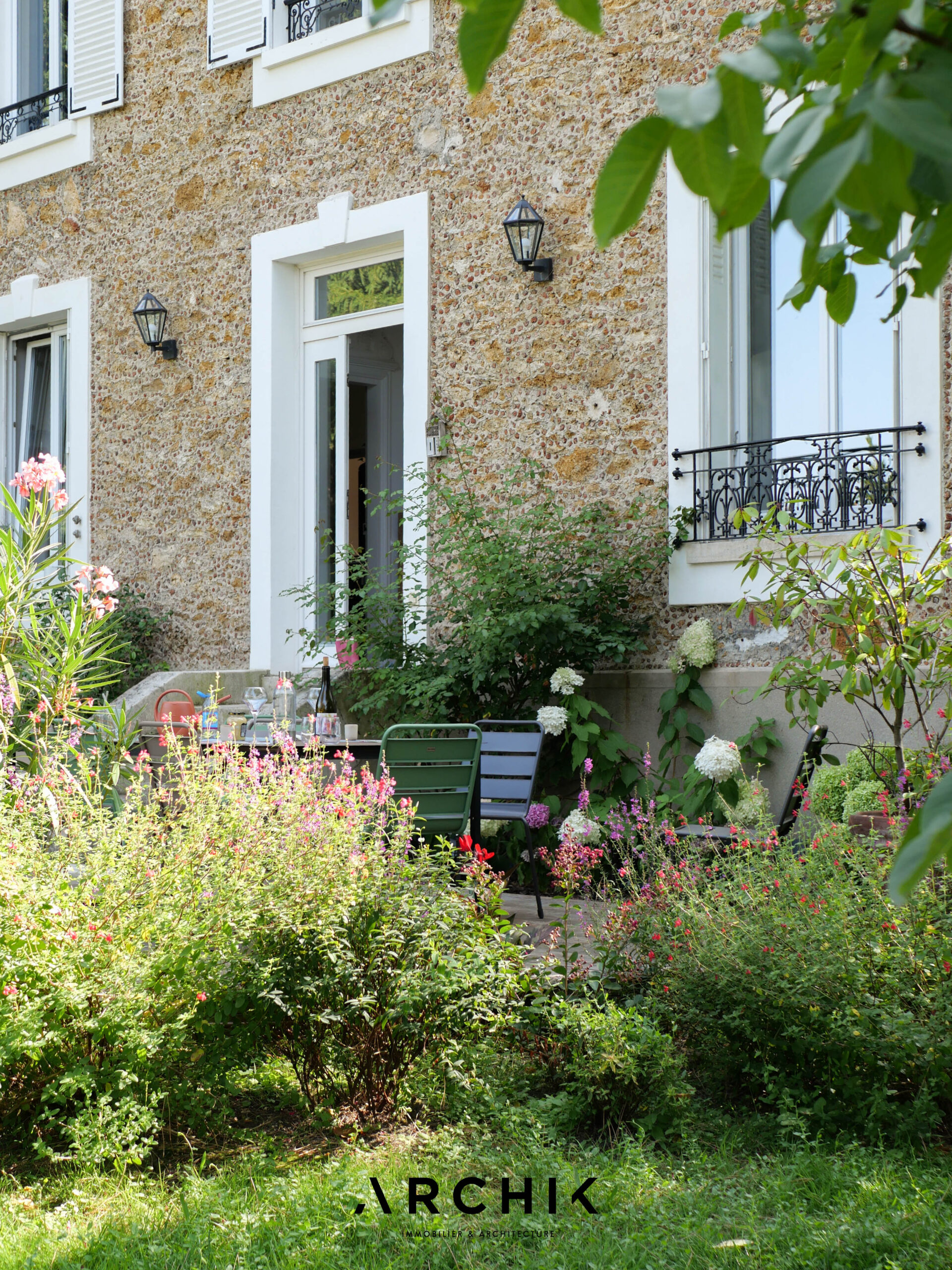 The house has been meticulously restored by an interior designer, respecting its architectural identity while incorporating modern comforts. Its family home atmosphere has been subtly preserved. Behind the perfectly symmetrical facade, the property opens onto a wooded garden, a spacious, secluded terrace, and majestic century-old trees, creating a haven of greenery and serenity in the heart of the town. Upon entering, a large, light-filled reception room reveals an original antique wooden and wrought-iron staircase, enhanced by stunning cement tiles. The heritage features have been meticulously preserved: herringbone parquet flooring, moldings, woodwork, ceiling roses, coffered ceilings, marble fireplaces, and high ceilings lend the property a timeless elegance. The garden level comprises two harmoniously proportioned living spaces: a bright reception room and dining room, as well as a family kitchen and an adjoining laundry room, creating a functional whole. The first floor houses the sleeping area, with two bedrooms and a bathroom on one side, and a small independent apartment on the other, including a kitchenette, bedroom, and sitting room, ideal for entertaining or working. On the top floor, beneath a sloping ceiling and exposed beams, unfolds a comfortable master suite with a bathroom, a private sitting room, and two separate offices, offering an entire floor dedicated to family life. Finally, the basement, perfectly divided into several spaces, reveals a cellar with a vaulted ceiling covered in herringbone brickwork. A courtyard provides parking for several vehicles.