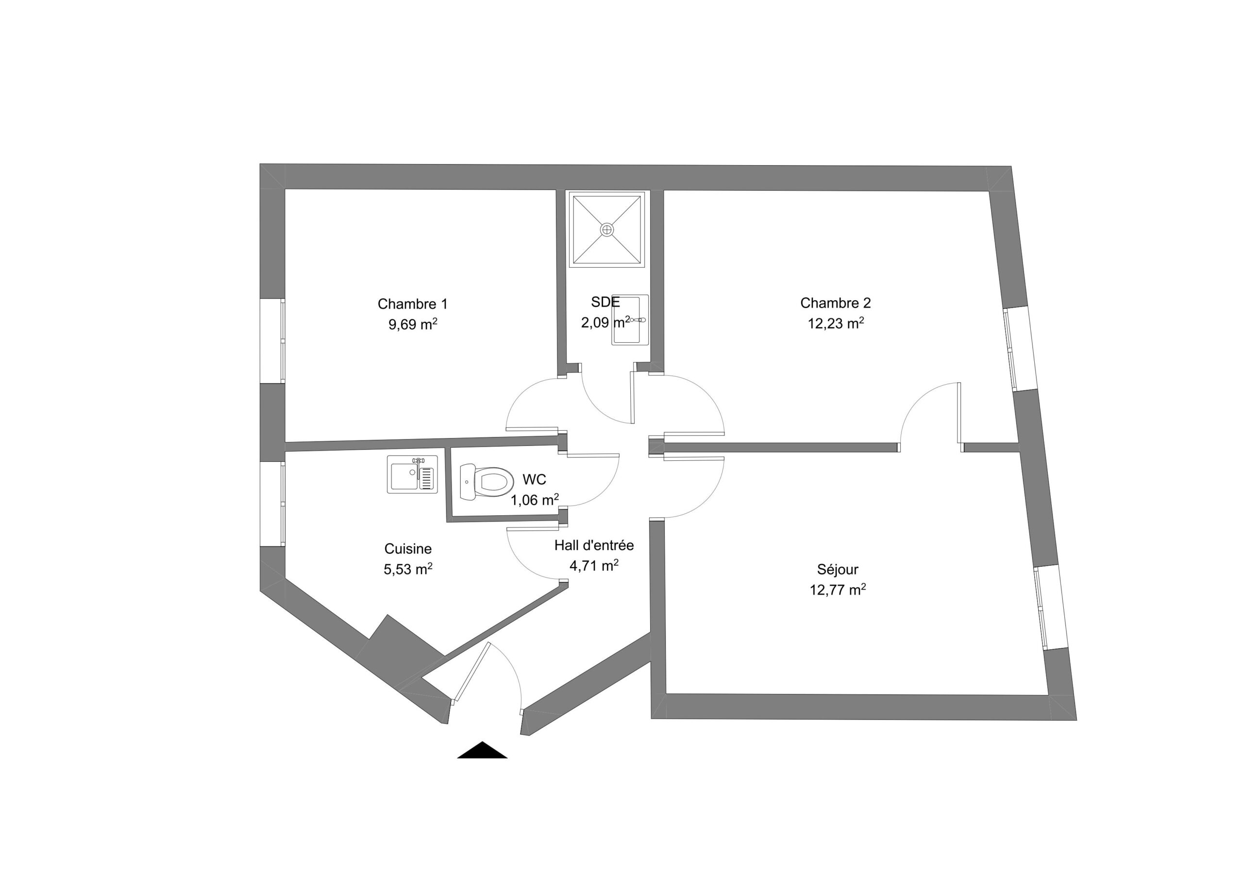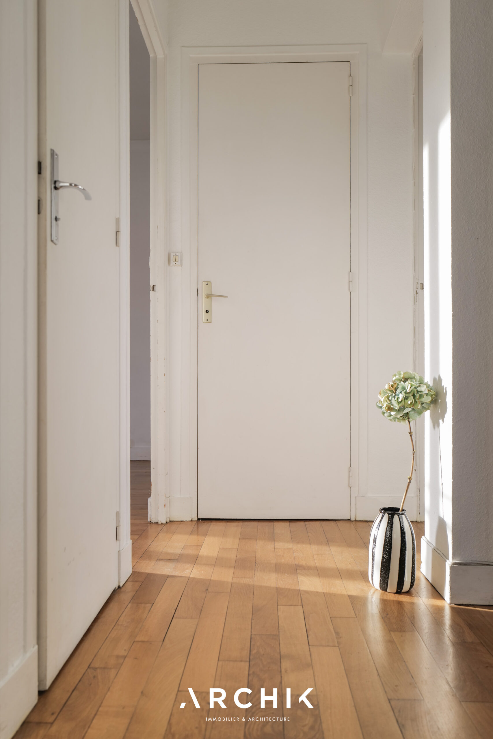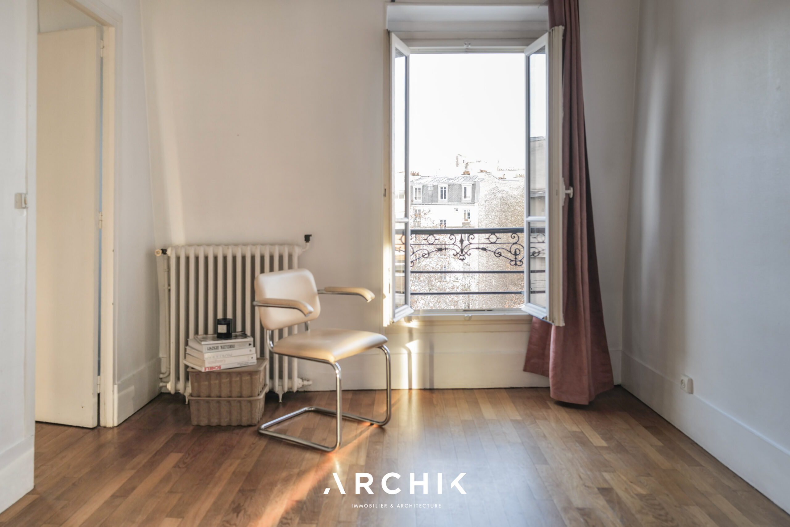 In need of renovation, the apartment has great potential thanks to its dual-aspect layout, which gives the space a natural flow and allows light to flood in from its south and north exposures. Two adjoining rooms can be combined to create a large open-plan living space. They can also remain separate, offering a comfortable, functional, and intimate layout. An additional room, bathed in southern light, can be converted into a bedroom or office. The bathroom, located at the end of the hallway, opens up a range of design possibilities.
