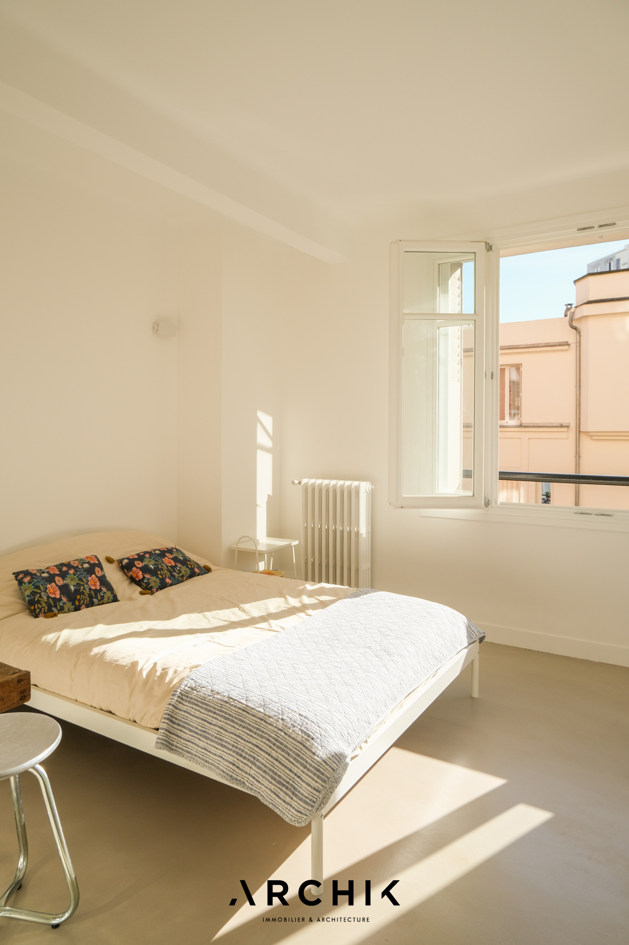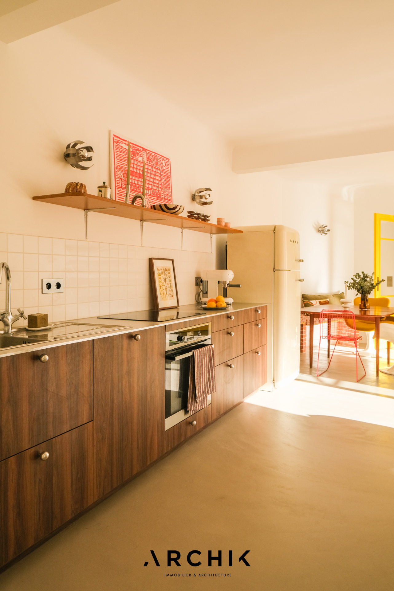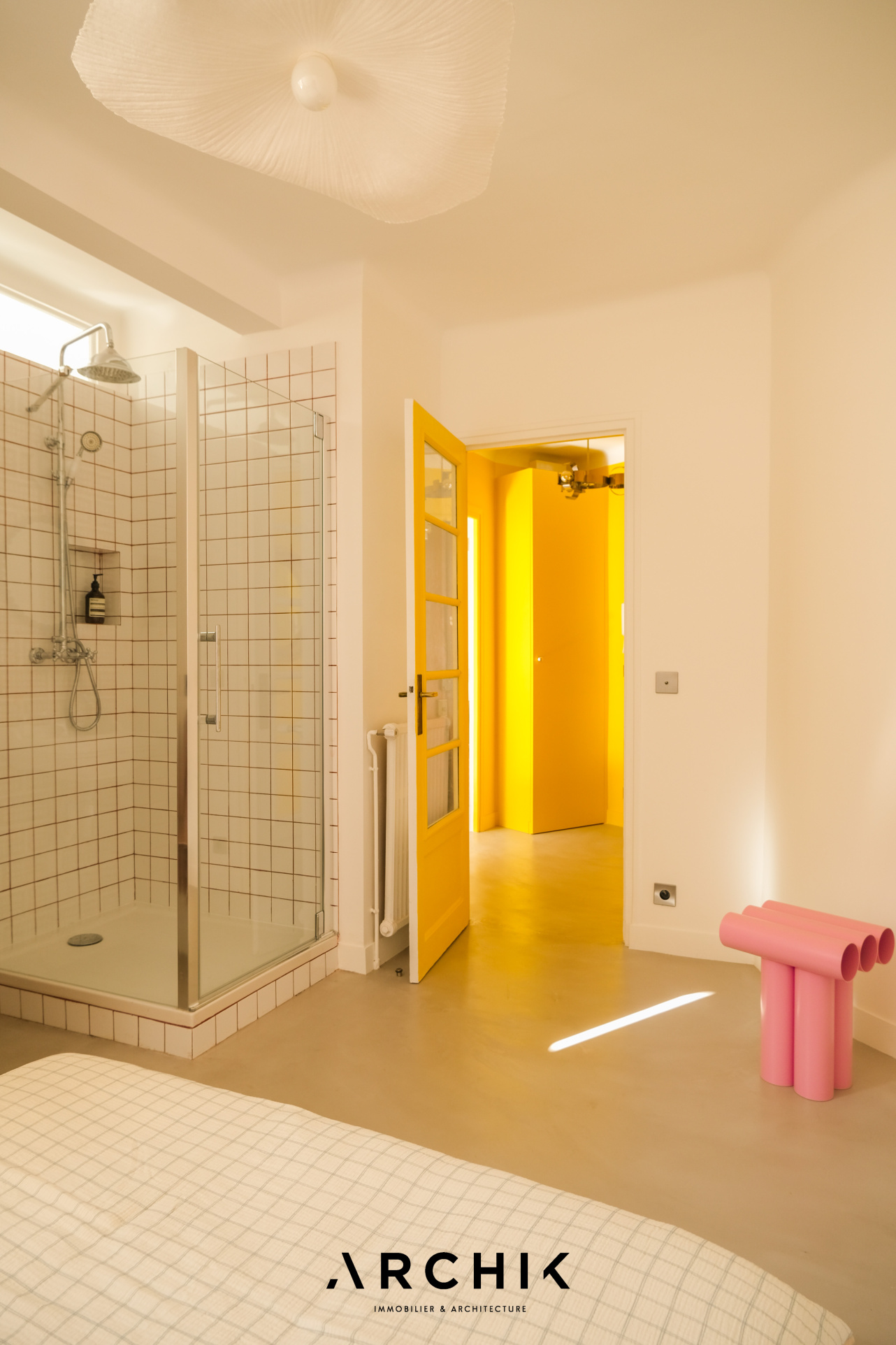 + DE DETAILS UNITÉ 11 PARIS 17TH | Épinettes 835 000 € Type of property Flat Area 74 m2 Room(s) 3 Exterior Balcon Current Modern Condition To live in Reference AP419 WE LIKEIts renovation with 50's codes Its incredible brightness Its family planCONTACT US 1950s architecture, this building hides on its 3rd floor with elevator a solar apartment of 74 m2 Carrez, airy and family, paying homage to the Corbusian years, in the heart of the 17th arrondissement, in the Épinettes district.Completely renovated, the apartment with its perfectly mastered 50's codes is revealed past its yellow Cité Radieuse entrance, as bold as it is bright, setting the tone of the decor. This enveloping and energizing airlock reveals through a theatrical double door the living room full of light illuminated by its two windows to the East. The minerality of the polished concrete floor contrasting with the entrance, brings character and warmth to the space unifying the room with open but delimited spaces. The kitchen linear in dark veneer blends into the volume, and the space extends onto a balcony in the calm of a quiet street. On the night side, the master suite benefits from a shower with white tiles and red joints echoing the terracotta facing of the sink area. The two other bedrooms share a bathroom with a forest green ceiling and a curved mosaic floor, a subtle nod to the swimming pool spirit, while the chrome faucets complete this architectural flawlessness. A cellar completes the amenities of this apartment. A family apartment with a bold renovation inspired by the Corbusier spirit. LE QUARTIER Épinettes Entre Batignolles et le haut Montmartre, le quartier des Épinettes se situe dans le Nord du 17ème arrondissement. YOUR CONTACT Marine COCAIGN 06 77 21 92 83 marine.cocaign@archik.fr DIAGNOSTIC TRANSPORTS M14 M13 PORTE DE CLICHYSHAREDétail du diagnostic Diagnostic de performance énergétique 237 KWh/m².an 25* kg CO2/m².an Logement économeABCDEFGLogement énergivore DPE vierge Consommations non exploitables Non soumis au diagnostic * Dont émissions de gaz à effet de serreFaible émission de GESABCDEFGForte émission de GES 25 KgéqCO2 / m².an GES vierge Consommations non exploitables Montant estimé des dépenses annuelles d'énergie pour un usage standard : entre 1360 et 1880 € TTC/an . Date de référence des prix de l'énergie pour établie cette estimation : 01/01/2025 Les informations sur les risques auxquels ce bien est exposé sont disponibles sur le site Géorisques : www.georisques.gouv.fr Would you like more information ? Remplissez le formulaire ou contactez directement la personne en charge de ce bien. NAME* FIRST NAME* EMAIL* PHONE* MESSAGE I would like to receive the ARCHIK's Newsletter VOTRE CONTACT Marine COCAIGN 06 77 21 92 83 marine.cocaign@archik.fr Discover also ...VALUE YOUR PROPERTYAll our propertiesOUR PROPERTIES SOLD