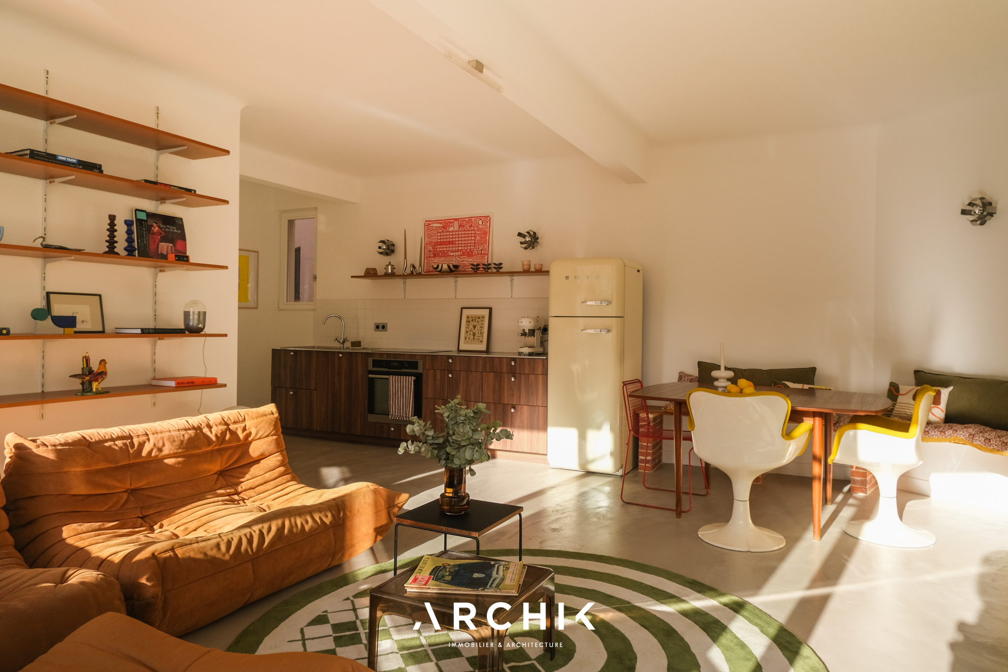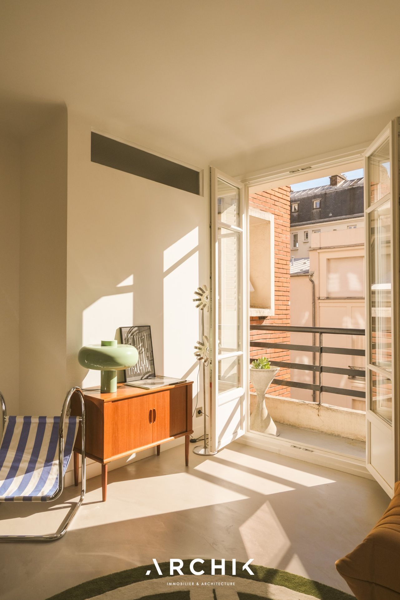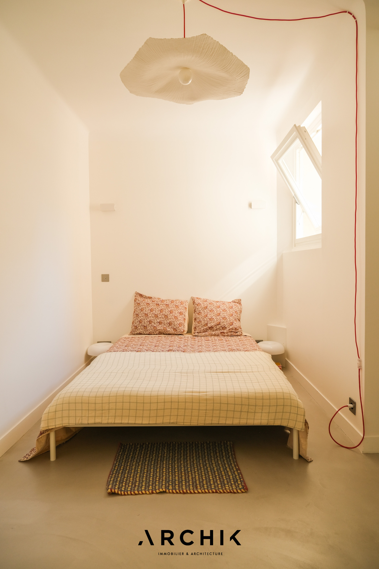 + DE DETAILS UNITÉ 11 PARIS 17TH | Épinettes 835 000 € Type of property Flat Area 74 m2 Room(s) 3 Exterior Balcon Current Modern Condition To live in Reference AP419 WE LIKEIts renovation with 50's codes Its incredible brightness Its family planCONTACT US 1950s architecture, this building hides on its 3rd floor with elevator a solar apartment of 74 m2 Carrez, airy and family, paying homage to the Corbusian years, in the heart of the 17th arrondissement, in the Épinettes district.Completely renovated, the apartment with its perfectly mastered 50's codes is revealed past its yellow Cité Radieuse entrance, as bold as it is bright, setting the tone of the decor. This enveloping and energizing airlock reveals through a theatrical double door the living room full of light illuminated by its two windows to the East. The minerality of the polished concrete floor contrasting with the entrance, brings character and warmth to the space unifying the room with open but delimited spaces. The kitchen linear in dark veneer blends into the volume, and the space extends onto a balcony in the calm of a quiet street. On the night side, the master suite benefits from a shower with white tiles and red joints echoing the terracotta facing of the sink area. The two other bedrooms share a bathroom with a forest green ceiling and a curved mosaic floor, a subtle nod to the swimming pool spirit, while the chrome faucets complete this architectural flawlessness. A cellar completes the amenities of this apartment. A family apartment with a bold renovation inspired by the Corbusier spirit. LE QUARTIER Épinettes Entre Batignolles et le haut Montmartre, le quartier des Épinettes se situe dans le Nord du 17ème arrondissement. YOUR CONTACT Marine COCAIGN 06 77 21 92 83 marine.cocaign@archik.fr DIAGNOSTIC TRANSPORTS M14 M13 PORTE DE CLICHYSHAREDétail du diagnostic Diagnostic de performance énergétique 237 KWh/m².an 25* kg CO2/m².an Logement économeABCDEFGLogement énergivore DPE vierge Consommations non exploitables Non soumis au diagnostic * Dont émissions de gaz à effet de serreFaible émission de GESABCDEFGForte émission de GES 25 KgéqCO2 / m².an GES vierge Consommations non exploitables Montant estimé des dépenses annuelles d'énergie pour un usage standard : entre 1360 et 1880 € TTC/an . Date de référence des prix de l'énergie pour établie cette estimation : 01/01/2025 Les informations sur les risques auxquels ce bien est exposé sont disponibles sur le site Géorisques : www.georisques.gouv.fr Would you like more information ? Remplissez le formulaire ou contactez directement la personne en charge de ce bien. NAME* FIRST NAME* EMAIL* PHONE* MESSAGE I would like to receive the ARCHIK's Newsletter VOTRE CONTACT Marine COCAIGN 06 77 21 92 83 marine.cocaign@archik.fr Discover also ...VALUE YOUR PROPERTYAll our propertiesOUR PROPERTIES SOLD