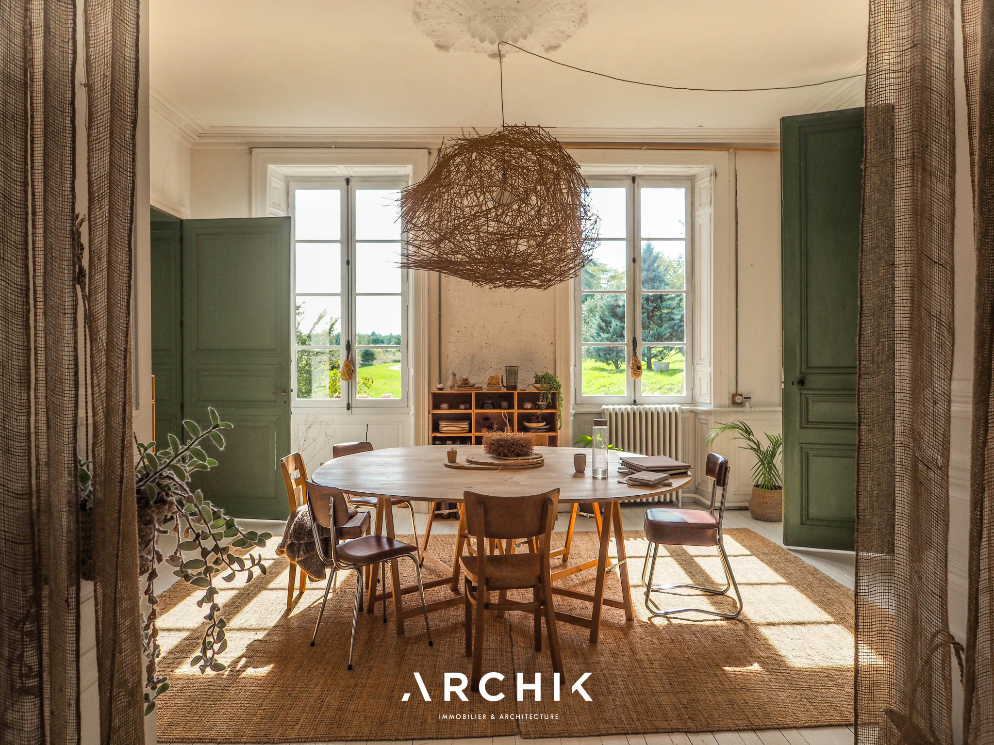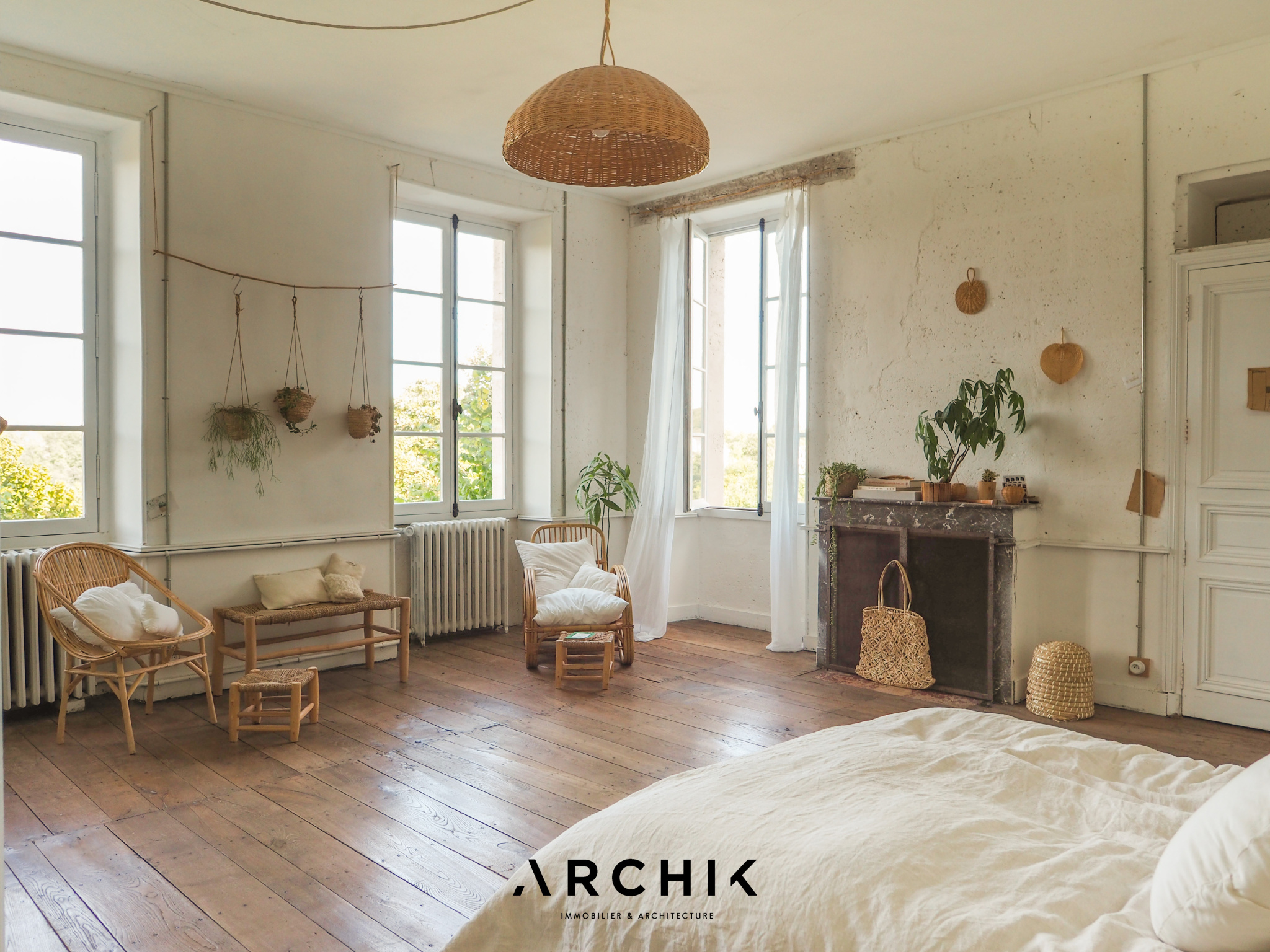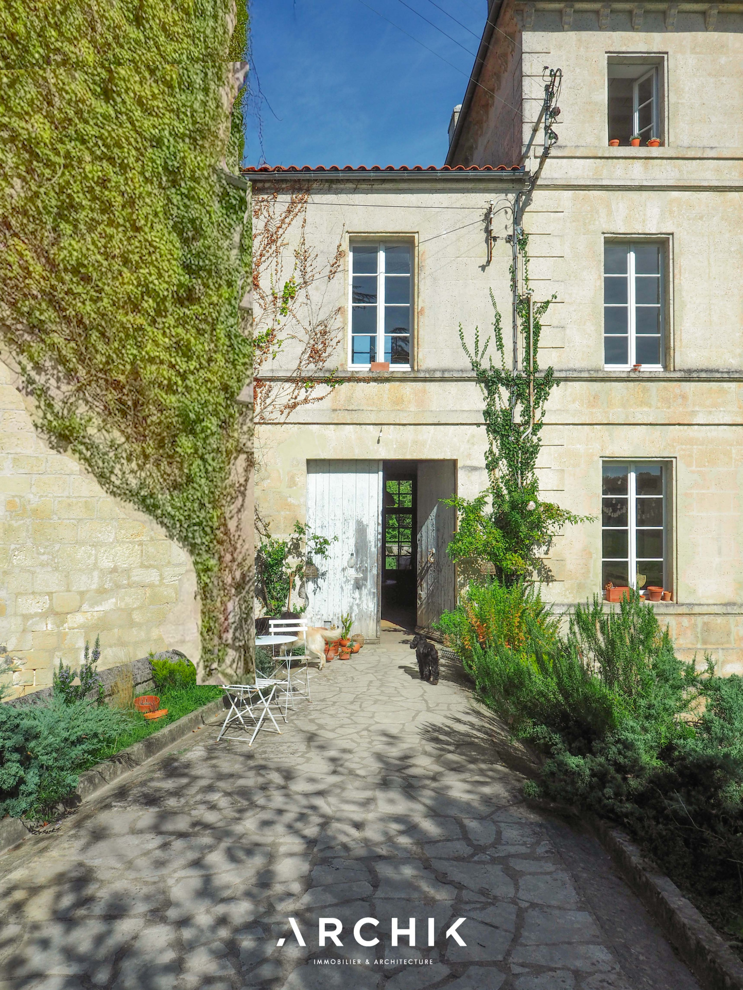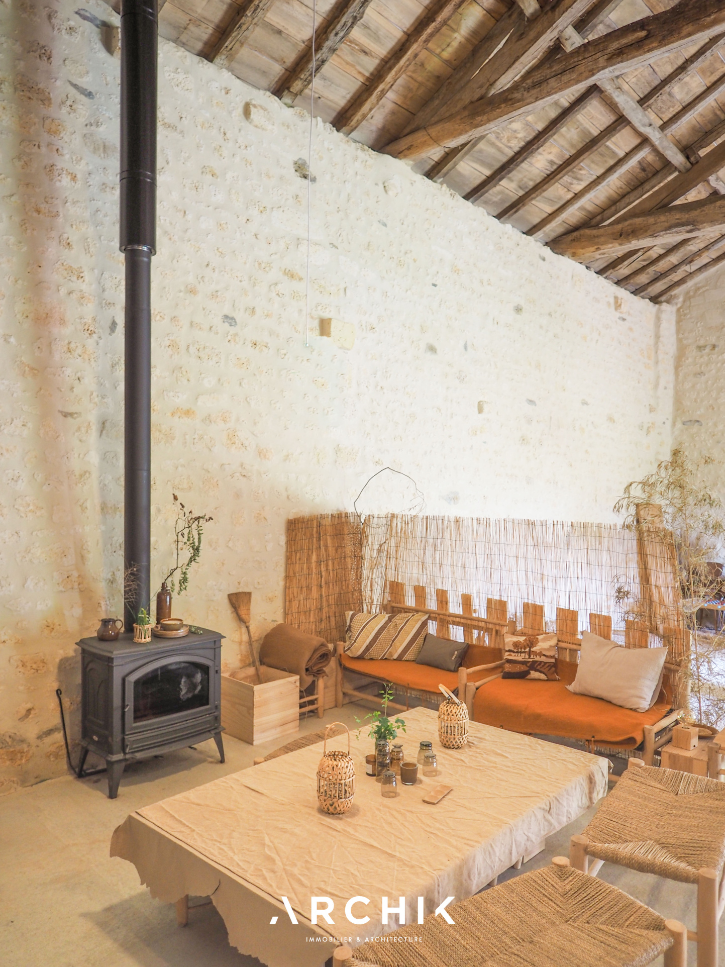 + DE DETAILS WABI SABI 1 490 000 € Type of property House Area 615 m2 Room(s) 8 Exterior Terrasse Current Empire style Condition To live in Reference BX1285 WE LIKEThe timelessness of the place The freshness and sensitivity of the renovation The linen room in the 12th century towerCONTACT US Built in the 18th and 19th centuries, this characterful estate's centerpiece is a magnificent château of over 500 m2, flanked by two medieval towers. Accompanied by numerous outbuildings, it is set in an 8-hectare wooded park, on the edge of a charming hamlet, close to the dynamic city center of Angoulême.Overlooking the Natura 2000 listed Échelle valley, the charm is felt from the moment you arrive, taking a stone footbridge that spans deep dry moats, at the height of a 12th-century tower, covered in ivy. The vestibule offers an instant perspective on the promontory terrace, suspended above the moat and the underground passages that run behind the building. In contrast to the imposing, timeless exterior, the château's interior evokes a country house on a human scale. The current owners have undertaken a sensitive and respectful renovation in the refined style of Les Petites Emplettes, allowing the history and patina of the place to shine through, with the leitmotif of letting volumes, textures and materials express themselves, and inviting light to circulate through the large windows, capturing the surrounding nature at every moment. Raised on three levels, the ground floor mainly accommodates living rooms facing north-south, bathed in light. This is reflected on the whitewashed shell stone walls and punctuated by original doors painted in a timeless green. The eclectic floors combine hexagonal terracotta tiles, speckled checkerboard tiles from the 1950s, and wide wooden planks. An elm staircase with elegant ironwork follows the curves of the stone wall and leads to the four levels, from the cellars to the attic, generously distributing the spaces, including eight bedrooms, their adjoining rooms, and three bathrooms. The top level, with exposed beams, offers a panoramic view of the picturesque surrounding landscape. To the west of the château, a U-shaped farmhouse houses over 1,500 m2 of outbuildings. These buildings, witnesses of rural activity of yesteryear, house barns, dwellings, workshops, and stables, some of which have been renovated. On one side of the verdant courtyard, a barn with spectacular volumes has been transformed into a multipurpose space, a showroom and open-air café, cascading over three levels and 300 m2. A magnificent wooden frame, fully restored, harmoniously interacts with the freshly repointed stone walls, the sanded concrete floor, and the contemporary steel joinery. Opposite, an outbuilding has been converted into a gîte, in the spirit of a country cottage. This little cocoon combines the same values of light and material, with a contemporary touch upstairs, clad in beech plywood. The ground floor accommodates a cozy living room around a Godin stove, a sunny bedroom with an adjoining bathroom, and upstairs, a mezzanine dormitory with a second bedroom and its bathroom. It is impossible to describe everything, so rich is the place with inspiration and potential. The possibilities are countless to bring to life, transform and enhance these old buildings steeped in history. ARCHIK puts its team of architects at your disposal to assist you in the transformation of this unique property, and adapt it to your desires and your uses. A poetic place of yesteryear, timeless and unique which unpretentiously expresses its history through the ages. YOUR CONTACT Amanda ROY LOQUAY 06 59 44 54 07 amanda.roy@archik.fr DIAGNOSTICSHAREDétail du diagnostic Diagnostic de performance énergétique 128 KWh/m².an 21* kg CO2/m².an Logement économeABCDEFGLogement énergivore DPE vierge Consommations non exploitables Non soumis au diagnostic * Dont émissions de gaz à effet de serreFaible émission de GESABCDEFGForte émission de GES 21 KgéqCO2 / m².an GES vierge Consommations non exploitables Montant estimé des dépenses annuelles d'énergie pour un usage standard : entre 9610 et 13002 € TTC/an . Date de référence des prix de l'énergie pour établie cette estimation : 01/01/2023 Les informations sur les risques auxquels ce bien est exposé sont disponibles sur le site Géorisques : www.georisques.gouv.fr Would you like more information ? Remplissez le formulaire ou contactez directement la personne en charge de ce bien. NAME* FIRST NAME* EMAIL* PHONE* MESSAGE I would like to receive the ARCHIK's Newsletter VOTRE CONTACT Amanda ROY LOQUAY 06 59 44 54 07 amanda.roy@archik.fr Discover also ...VALUE YOUR PROPERTYAll our propertiesOUR PROPERTIES SOLD