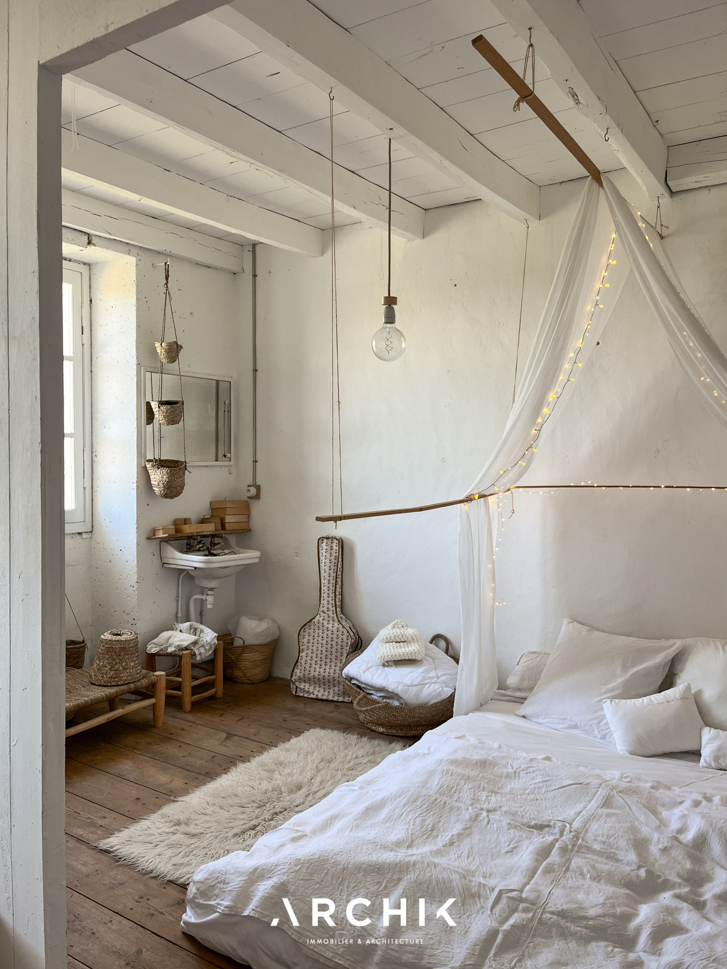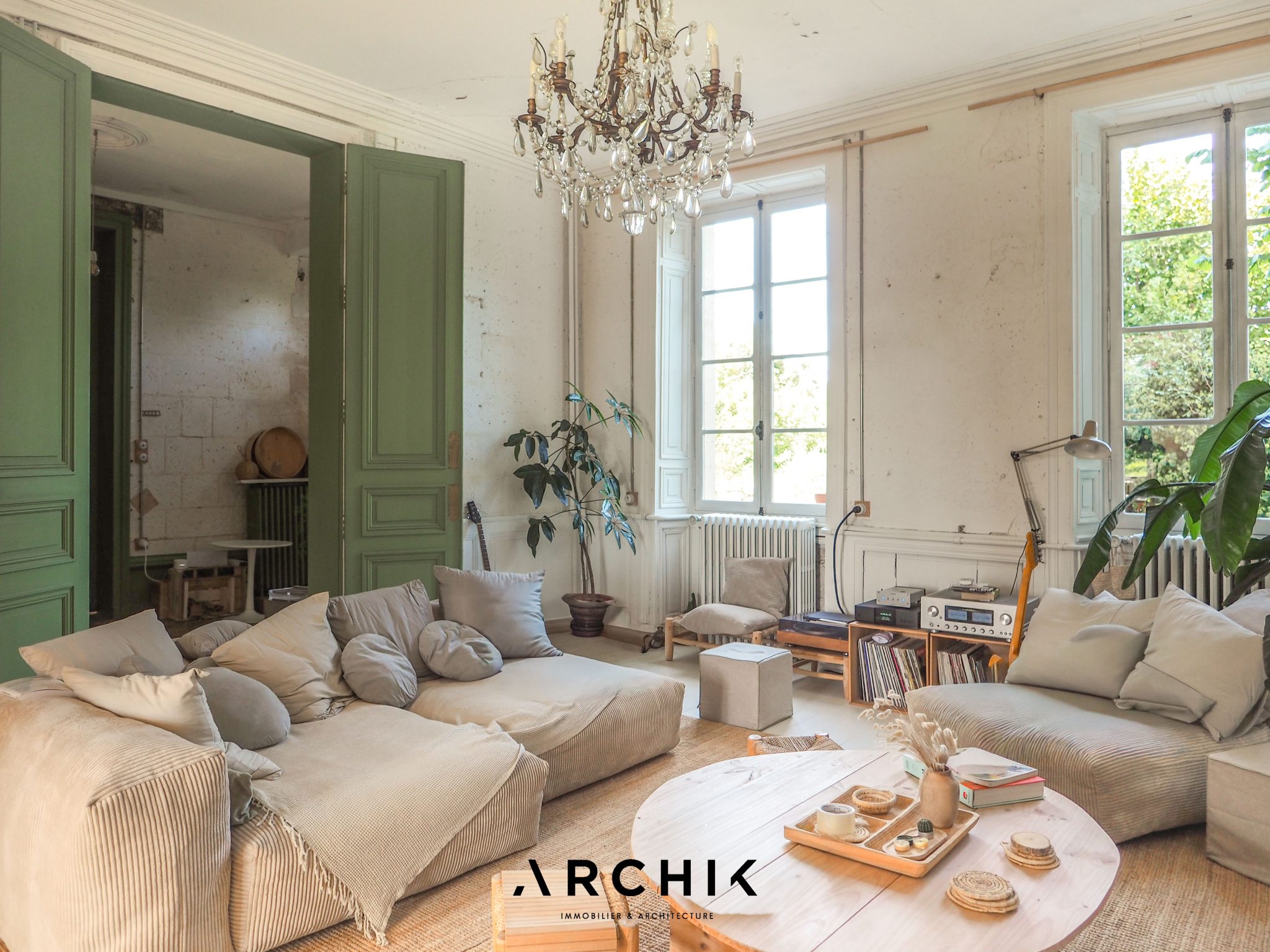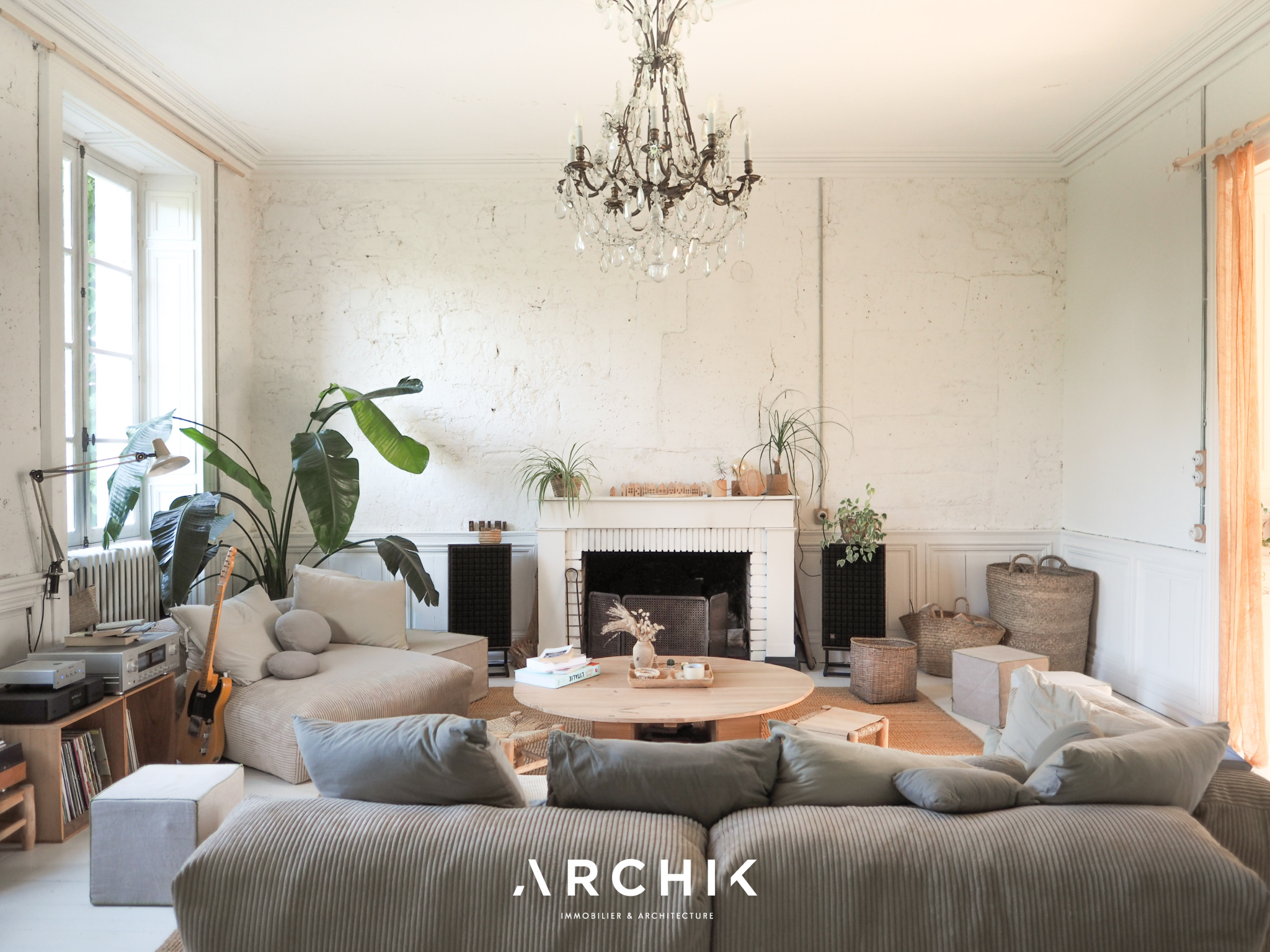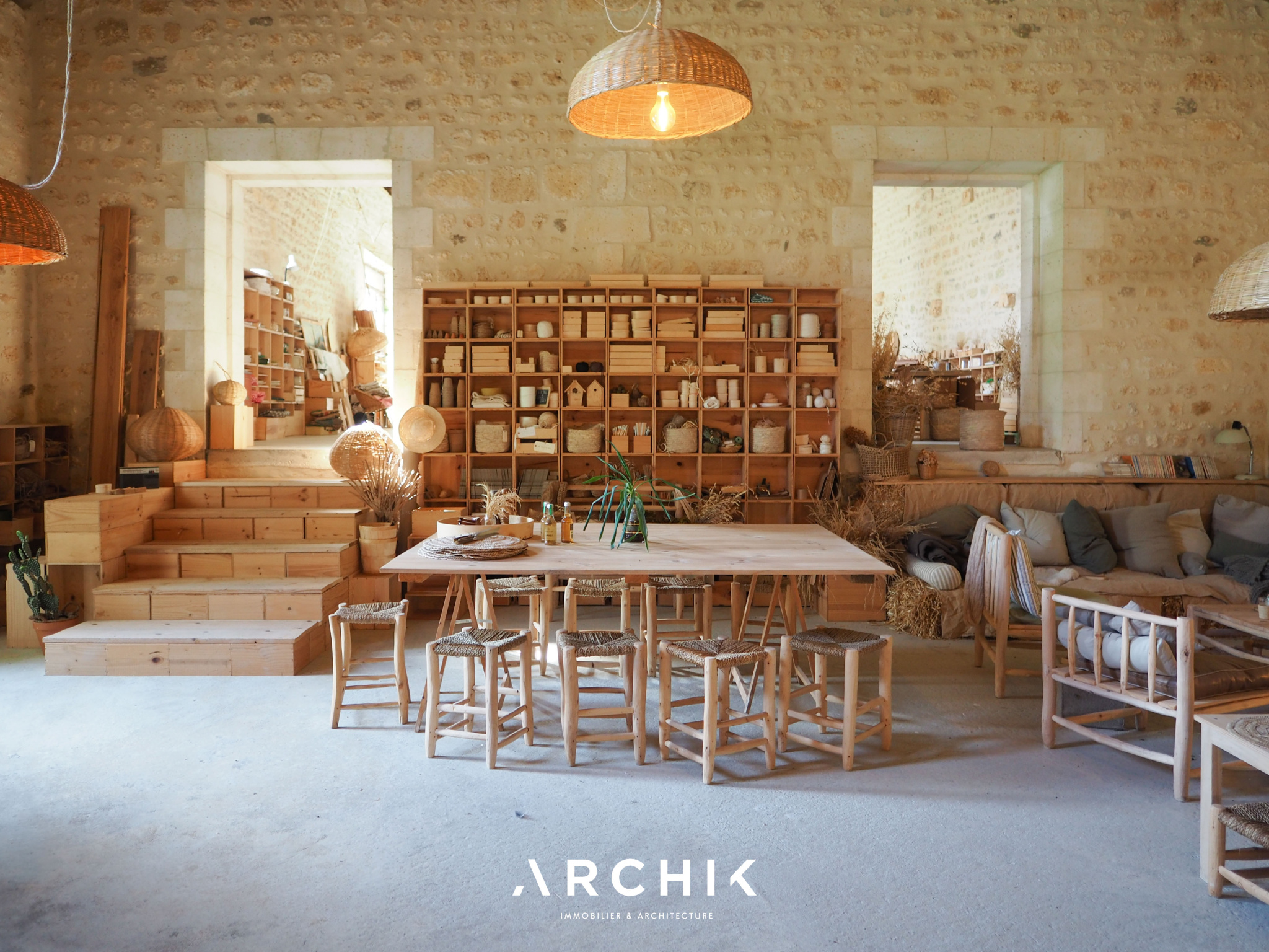 + DE DETAILS WABI SABI 1 490 000 € Type of property House Area 615 m2 Room(s) 8 Exterior Terrasse Current Empire style Condition To live in Reference BX1285 WE LIKEThe timelessness of the place The freshness and sensitivity of the renovation The linen room in the 12th century towerCONTACT US Built in the 18th and 19th centuries, this characterful estate's centerpiece is a magnificent château of over 500 m2, flanked by two medieval towers. Accompanied by numerous outbuildings, it is set in an 8-hectare wooded park, on the edge of a charming hamlet, close to the dynamic city center of Angoulême.Overlooking the Natura 2000 listed Échelle valley, the charm is felt from the moment you arrive, taking a stone footbridge that spans deep dry moats, at the height of a 12th-century tower, covered in ivy. The vestibule offers an instant perspective on the promontory terrace, suspended above the moat and the underground passages that run behind the building. In contrast to the imposing, timeless exterior, the château's interior evokes a country house on a human scale. The current owners have undertaken a sensitive and respectful renovation in the refined style of Les Petites Emplettes, allowing the history and patina of the place to shine through, with the leitmotif of letting volumes, textures and materials express themselves, and inviting light to circulate through the large windows, capturing the surrounding nature at every moment. Raised on three levels, the ground floor mainly accommodates living rooms facing north-south, bathed in light. This is reflected on the whitewashed shell stone walls and punctuated by original doors painted in a timeless green. The eclectic floors combine hexagonal terracotta tiles, speckled checkerboard tiles from the 1950s, and wide wooden planks. An elm staircase with elegant ironwork follows the curves of the stone wall and leads to the four levels, from the cellars to the attic, generously distributing the spaces, including eight bedrooms, their adjoining rooms, and three bathrooms. The top level, with exposed beams, offers a panoramic view of the picturesque surrounding landscape. To the west of the château, a U-shaped farmhouse houses over 1,500 m2 of outbuildings. These buildings, witnesses of rural activity of yesteryear, house barns, dwellings, workshops, and stables, some of which have been renovated. On one side of the verdant courtyard, a barn with spectacular volumes has been transformed into a multipurpose space, a showroom and open-air café, cascading over three levels and 300 m2. A magnificent wooden frame, fully restored, harmoniously interacts with the freshly repointed stone walls, the sanded concrete floor, and the contemporary steel joinery. Opposite, an outbuilding has been converted into a gîte, in the spirit of a country cottage. This little cocoon combines the same values of light and material, with a contemporary touch upstairs, clad in beech plywood. The ground floor accommodates a cozy living room around a Godin stove, a sunny bedroom with an adjoining bathroom, and upstairs, a mezzanine dormitory with a second bedroom and its bathroom. It is impossible to describe everything, so rich is the place with inspiration and potential. The possibilities are countless to bring to life, transform and enhance these old buildings steeped in history. ARCHIK puts its team of architects at your disposal to assist you in the transformation of this unique property, and adapt it to your desires and your uses. A poetic place of yesteryear, timeless and unique which unpretentiously expresses its history through the ages. YOUR CONTACT Amanda ROY LOQUAY 06 59 44 54 07 amanda.roy@archik.fr DIAGNOSTICSHAREDétail du diagnostic Diagnostic de performance énergétique 128 KWh/m².an 21* kg CO2/m².an Logement économeABCDEFGLogement énergivore DPE vierge Consommations non exploitables Non soumis au diagnostic * Dont émissions de gaz à effet de serreFaible émission de GESABCDEFGForte émission de GES 21 KgéqCO2 / m².an GES vierge Consommations non exploitables Montant estimé des dépenses annuelles d'énergie pour un usage standard : entre 9610 et 13002 € TTC/an . Date de référence des prix de l'énergie pour établie cette estimation : 01/01/2023 Les informations sur les risques auxquels ce bien est exposé sont disponibles sur le site Géorisques : www.georisques.gouv.fr Would you like more information ? Remplissez le formulaire ou contactez directement la personne en charge de ce bien. NAME* FIRST NAME* EMAIL* PHONE* MESSAGE I would like to receive the ARCHIK's Newsletter VOTRE CONTACT Amanda ROY LOQUAY 06 59 44 54 07 amanda.roy@archik.fr Discover also ...VALUE YOUR PROPERTYAll our propertiesOUR PROPERTIES SOLD