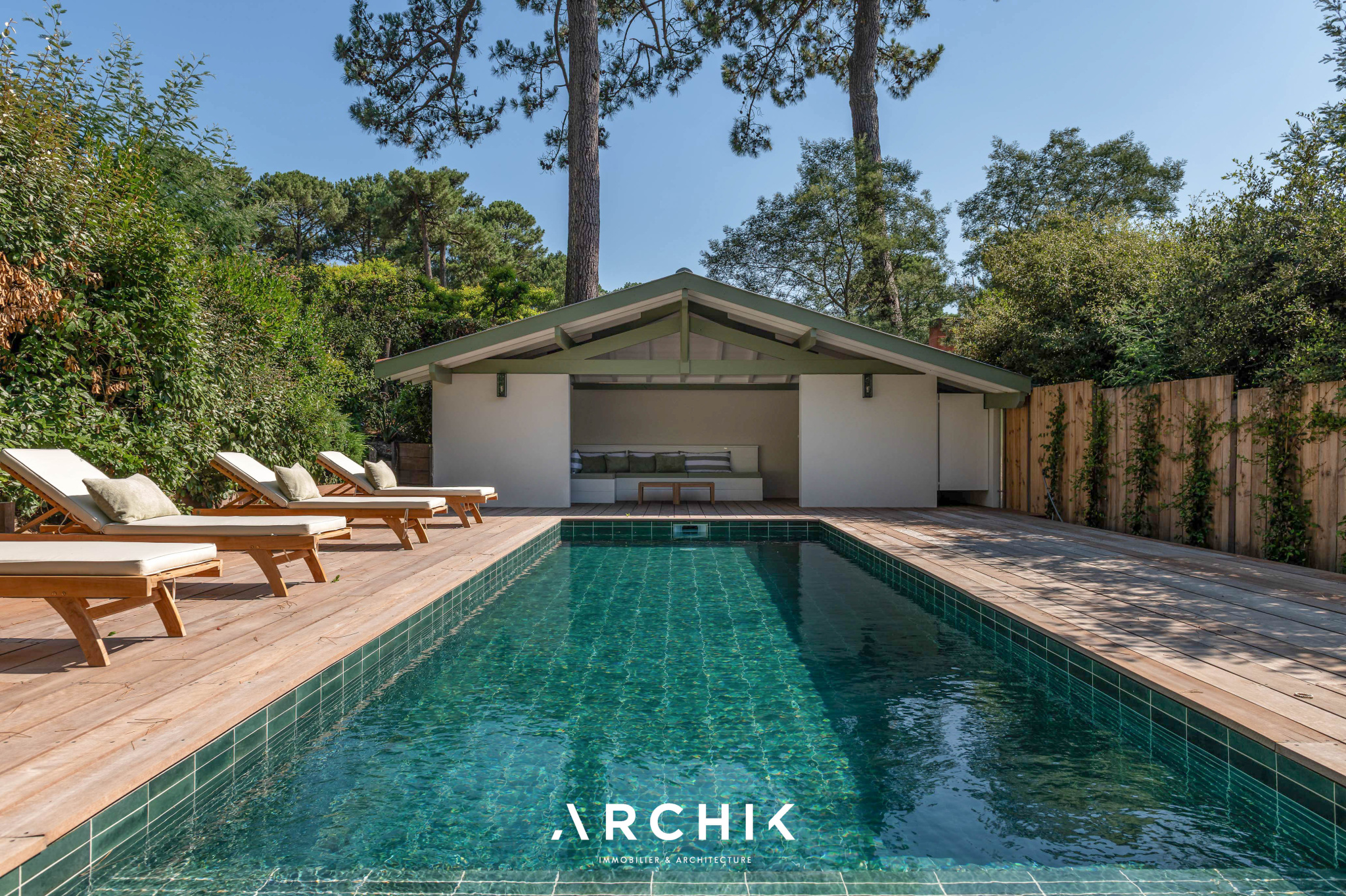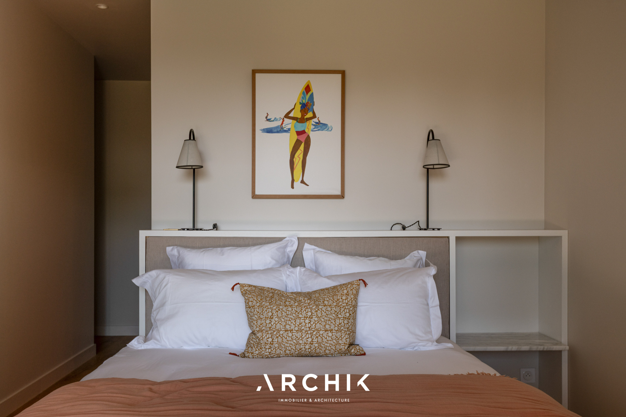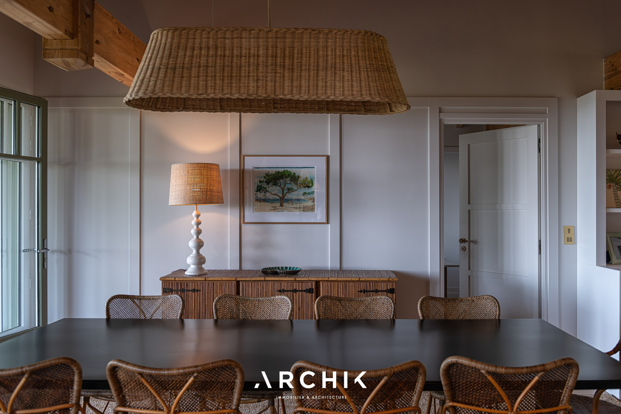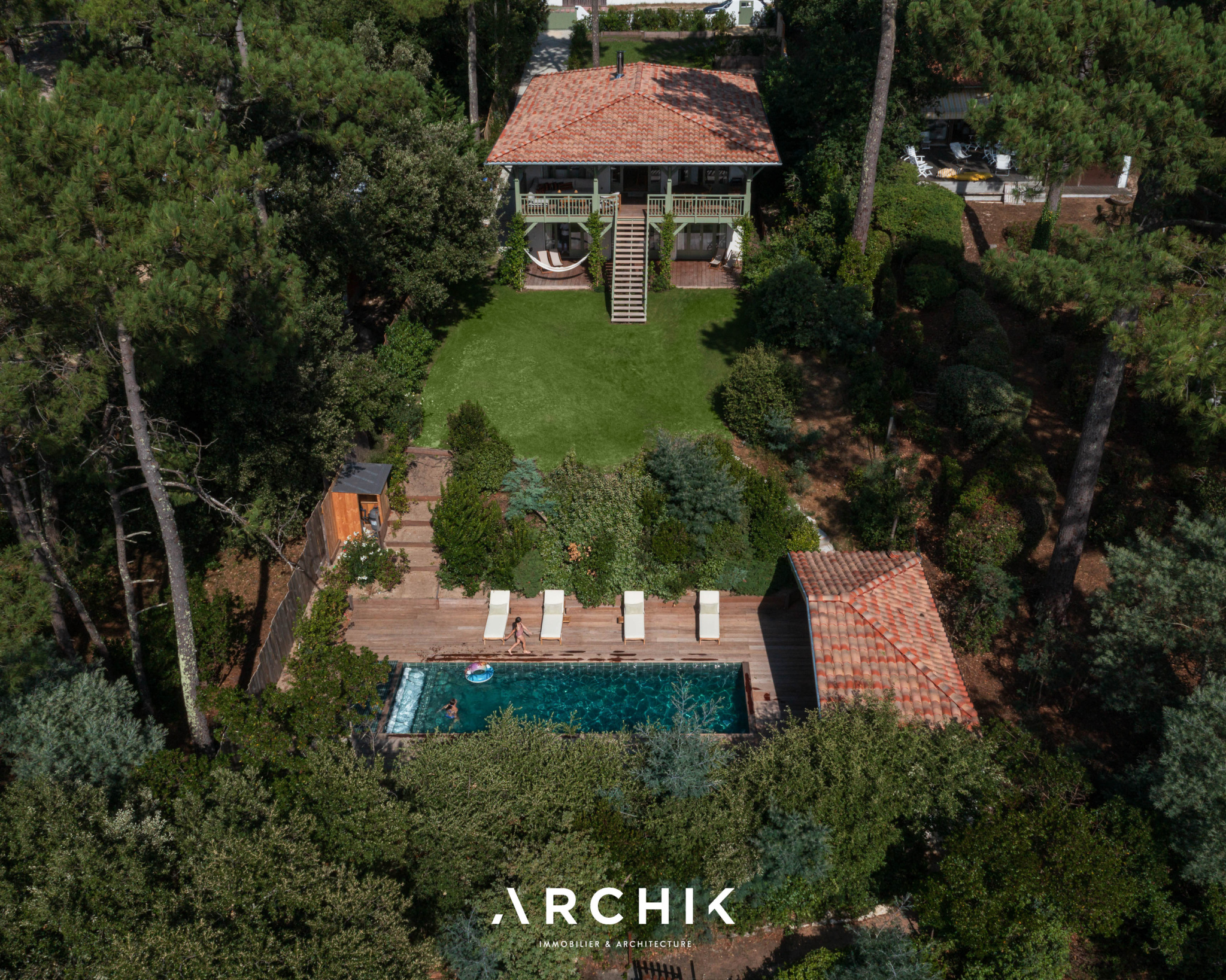 + DE PHOTOS ANTIGUA BASSIN D'ARCACHON | Pyla-sur-Mer Type de bien Maison Surface 250 m2 Chambre(s) 5 Extérieur Terrasse Courant Contemporain Architecture À vivre Réference ARL045 ON AIMELes vues sur le BassinLa pool house pour se détendreLa décoration soignée et balnéaireNOUS CONTACTER Architecture balnéaire inspirée du style néo-colonial, cette maison d'environ 250 m2 occupe un beau terrain de 1 300 m2, offrant une vue exceptionnelle sur le Bassin.Récemment achevée par l'Atelier d'Architecture du Bassin, la maison se déploie sur deux niveaux et dispose d'une vaste pièce de vie traversante avec cuisine ouverte entièrement équipée, sous une belle hauteur laissant apparaître la charpente traditionnelle. La cheminée à foyer ouvert est en harmonie avec l'atmosphère chaleureuse apportée par le mélange du bois du sol et des menuiseries, le marbre et le béton ciré. Le salon est prolongé par une large terrasse couverte d'où l'on profite de la vue sur le Bassin et qui permet d'accéder au jardin et à l'espace piscine chauffée en carreaux de Bali avec pool house, le tout entièrement paysagé. La chambre principale avec dressing, salle d'eau et accès à la terrasse ainsi qu'un coin bureau complètent ce niveau. En rez-de-jardin, quatre suites, une salle cinéma et une buanderie occupent l'espace. Capacité d'accueil 10 personnes. Disponible à la location saisonnière toute l'année. De 8 200 EUR à 16 000 EUR la semaine LE QUARTIER Pyla-sur-Mer Pyla-sur-Mer est une station balnéaire française de l’Atlantique prolongeant géographiquement la ville d’Arcachon, et s’étendant de la lisière du quartier commerçant du Moulleau et des Abatilles jusqu’au pied de la dune du Pilat. VOTRE CONTACT Sarah DENAVES 06 71 67 73 69 location.arcachon@archik.fr DIAGNOSTICViergeCrédits photos@Marc LacroixPARTAGER Vous souhaitez avoir plus d'informations ? Remplissez le formulaire ou contactez directement la personne en charge de ce bien. NOM* PRÉNOM* EMAIL* TÉLÉPHONE* MESSAGE Je souhaite recevoir la Newsletter ARCHIK VOTRE CONTACT Sarah DENAVES 06 71 67 73 69 location.arcachon@archik.fr Découvrez aussi ...VENDRENos biens en venteNOS BIENS VENDUS