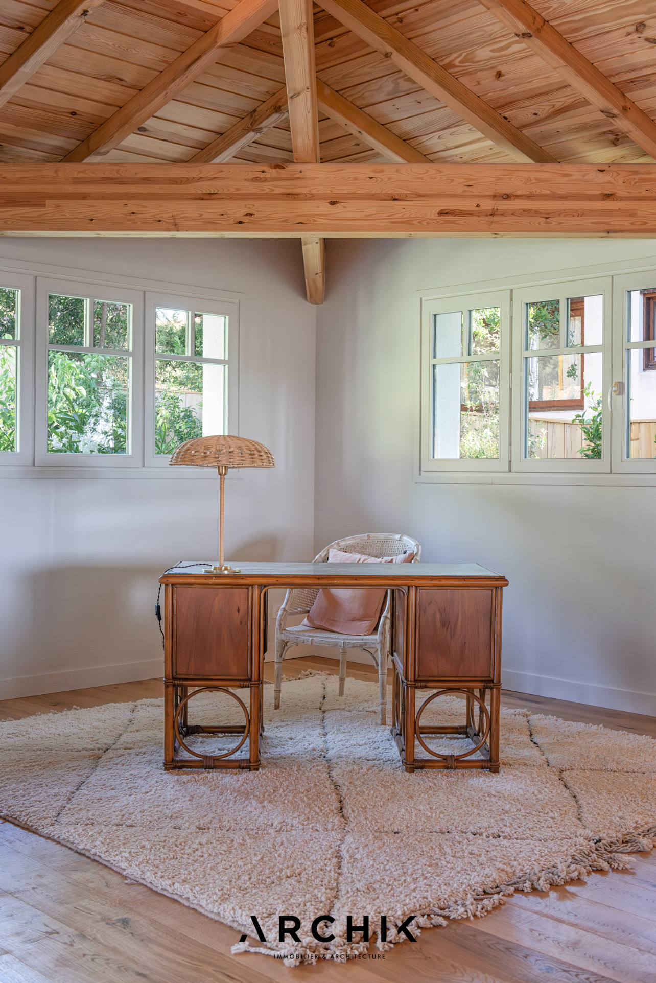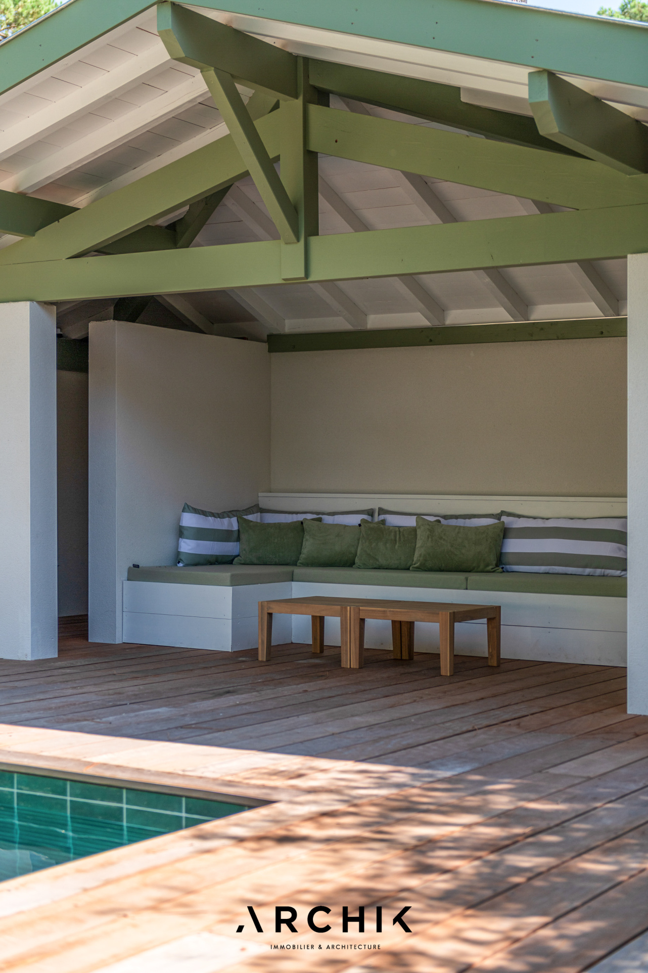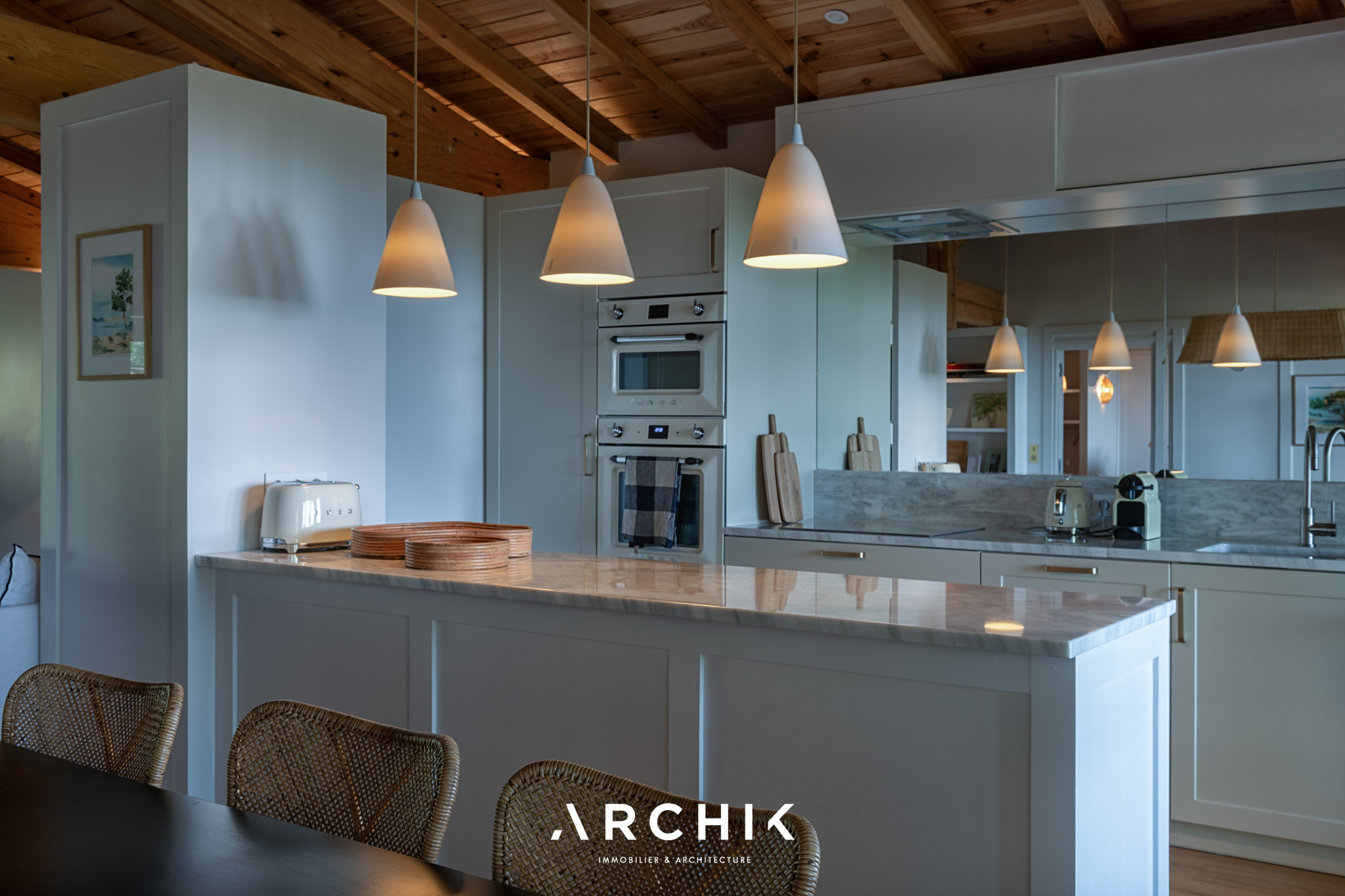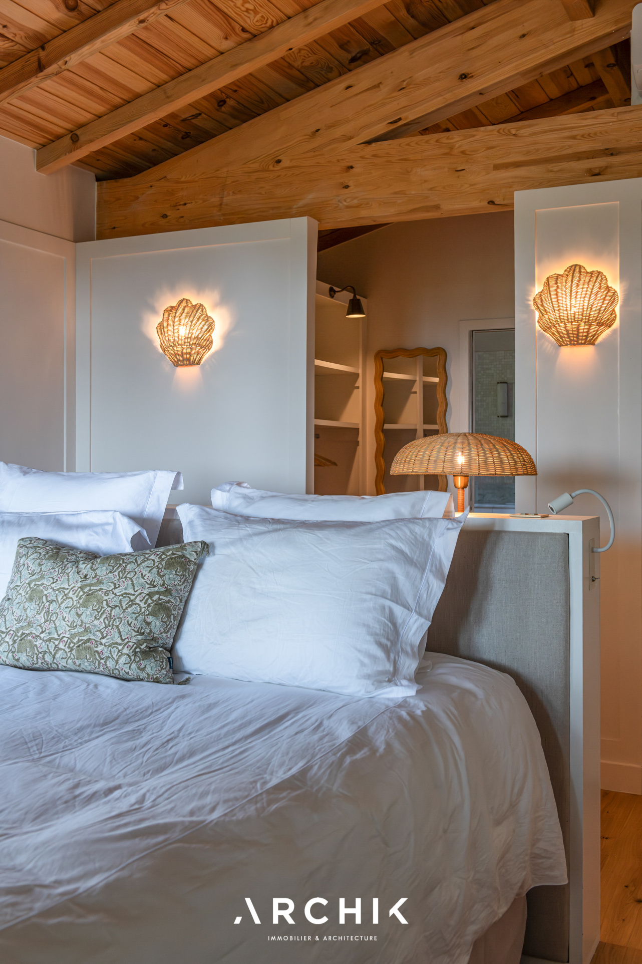 + DE PHOTOS ANTIGUA BASSIN D'ARCACHON | Pyla-sur-Mer Type de bien Maison Surface 250 m2 Chambre(s) 5 Extérieur Terrasse Courant Contemporain Architecture À vivre Réference ARL045 ON AIMELes vues sur le BassinLa pool house pour se détendreLa décoration soignée et balnéaireNOUS CONTACTER Architecture balnéaire inspirée du style néo-colonial, cette maison d'environ 250 m2 occupe un beau terrain de 1 300 m2, offrant une vue exceptionnelle sur le Bassin.Récemment achevée par l'Atelier d'Architecture du Bassin, la maison se déploie sur deux niveaux et dispose d'une vaste pièce de vie traversante avec cuisine ouverte entièrement équipée, sous une belle hauteur laissant apparaître la charpente traditionnelle. La cheminée à foyer ouvert est en harmonie avec l'atmosphère chaleureuse apportée par le mélange du bois du sol et des menuiseries, le marbre et le béton ciré. Le salon est prolongé par une large terrasse couverte d'où l'on profite de la vue sur le Bassin et qui permet d'accéder au jardin et à l'espace piscine chauffée en carreaux de Bali avec pool house, le tout entièrement paysagé. La chambre principale avec dressing, salle d'eau et accès à la terrasse ainsi qu'un coin bureau complètent ce niveau. En rez-de-jardin, quatre suites, une salle cinéma et une buanderie occupent l'espace. Capacité d'accueil 10 personnes. Disponible à la location saisonnière toute l'année. De 8 200 EUR à 16 000 EUR la semaine LE QUARTIER Pyla-sur-Mer Pyla-sur-Mer est une station balnéaire française de l’Atlantique prolongeant géographiquement la ville d’Arcachon, et s’étendant de la lisière du quartier commerçant du Moulleau et des Abatilles jusqu’au pied de la dune du Pilat. VOTRE CONTACT Sarah DENAVES 06 71 67 73 69 location.arcachon@archik.fr DIAGNOSTICViergeCrédits photos@Marc LacroixPARTAGER Vous souhaitez avoir plus d'informations ? Remplissez le formulaire ou contactez directement la personne en charge de ce bien. NOM* PRÉNOM* EMAIL* TÉLÉPHONE* MESSAGE Je souhaite recevoir la Newsletter ARCHIK VOTRE CONTACT Sarah DENAVES 06 71 67 73 69 location.arcachon@archik.fr Découvrez aussi ...VENDRENos biens en venteNOS BIENS VENDUS