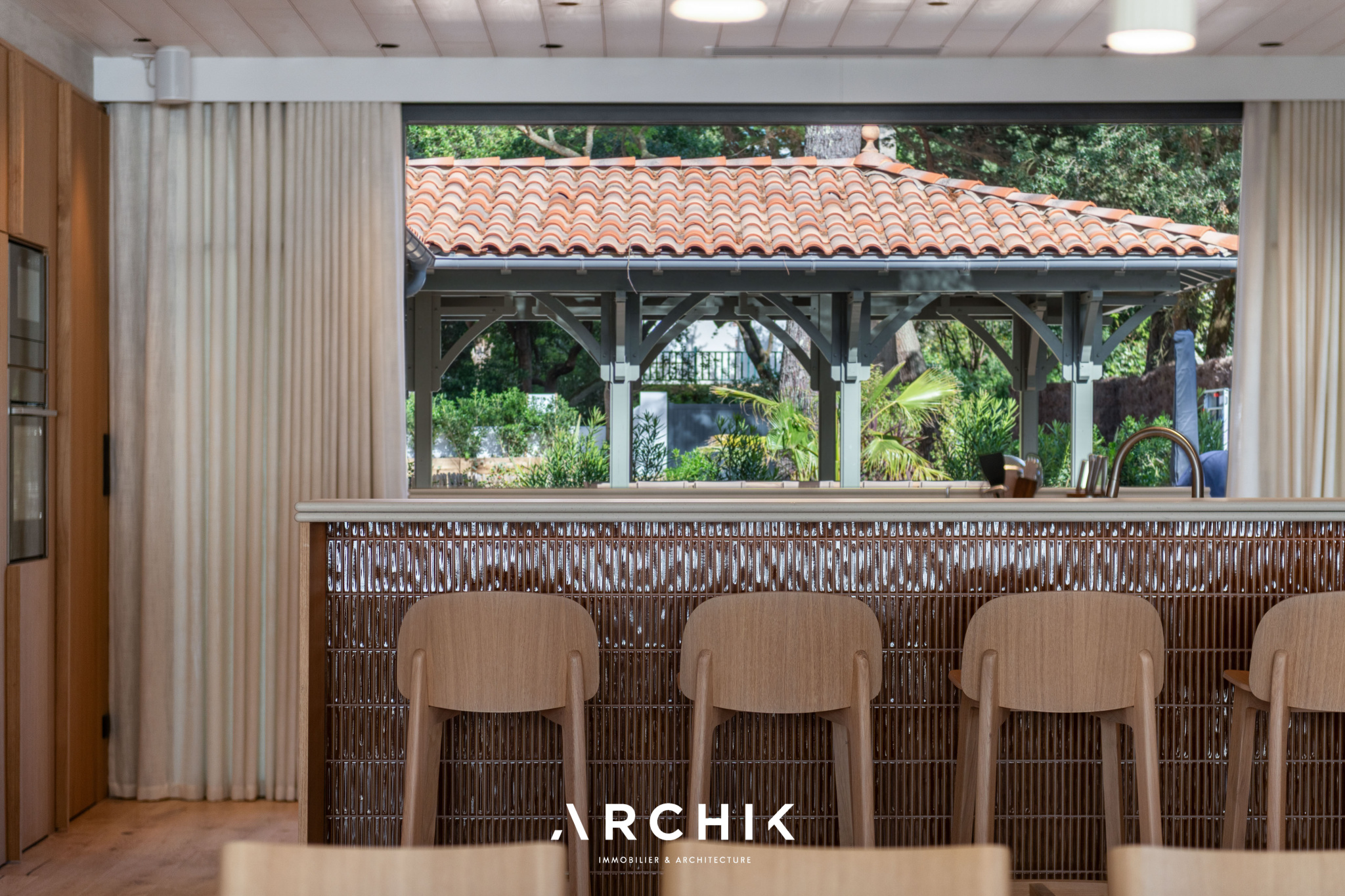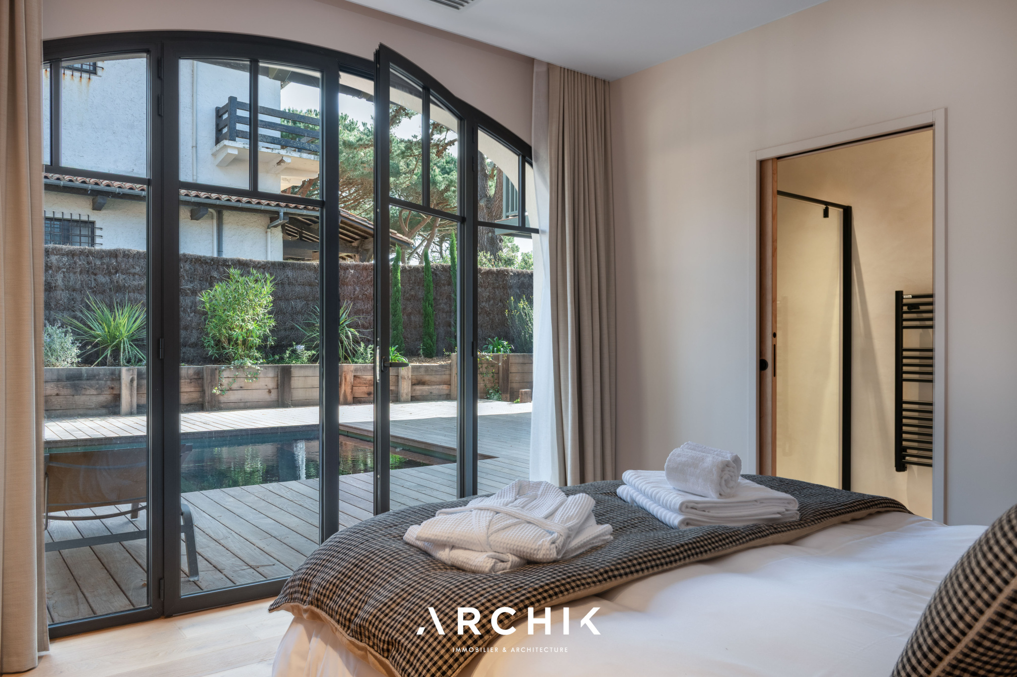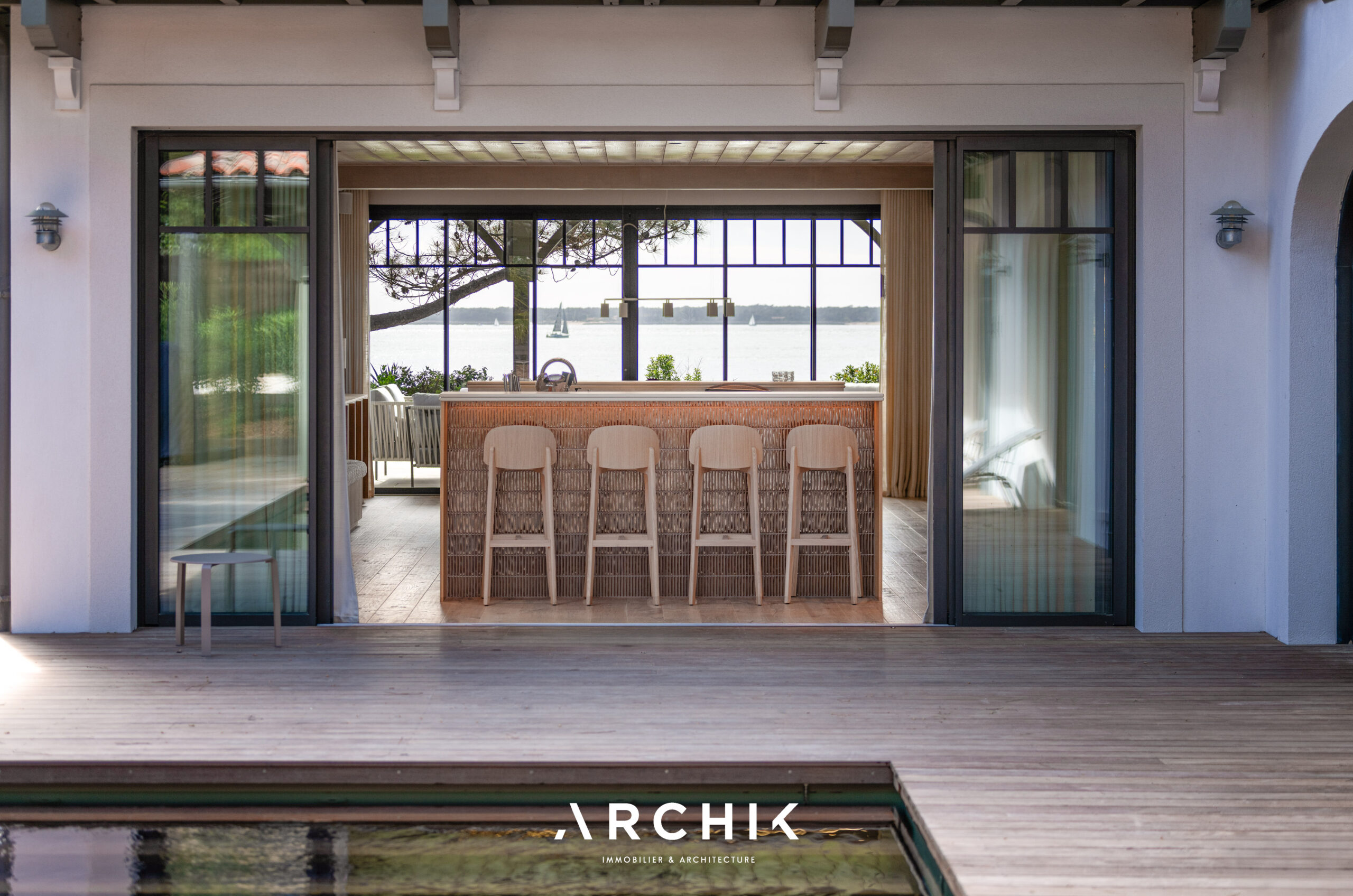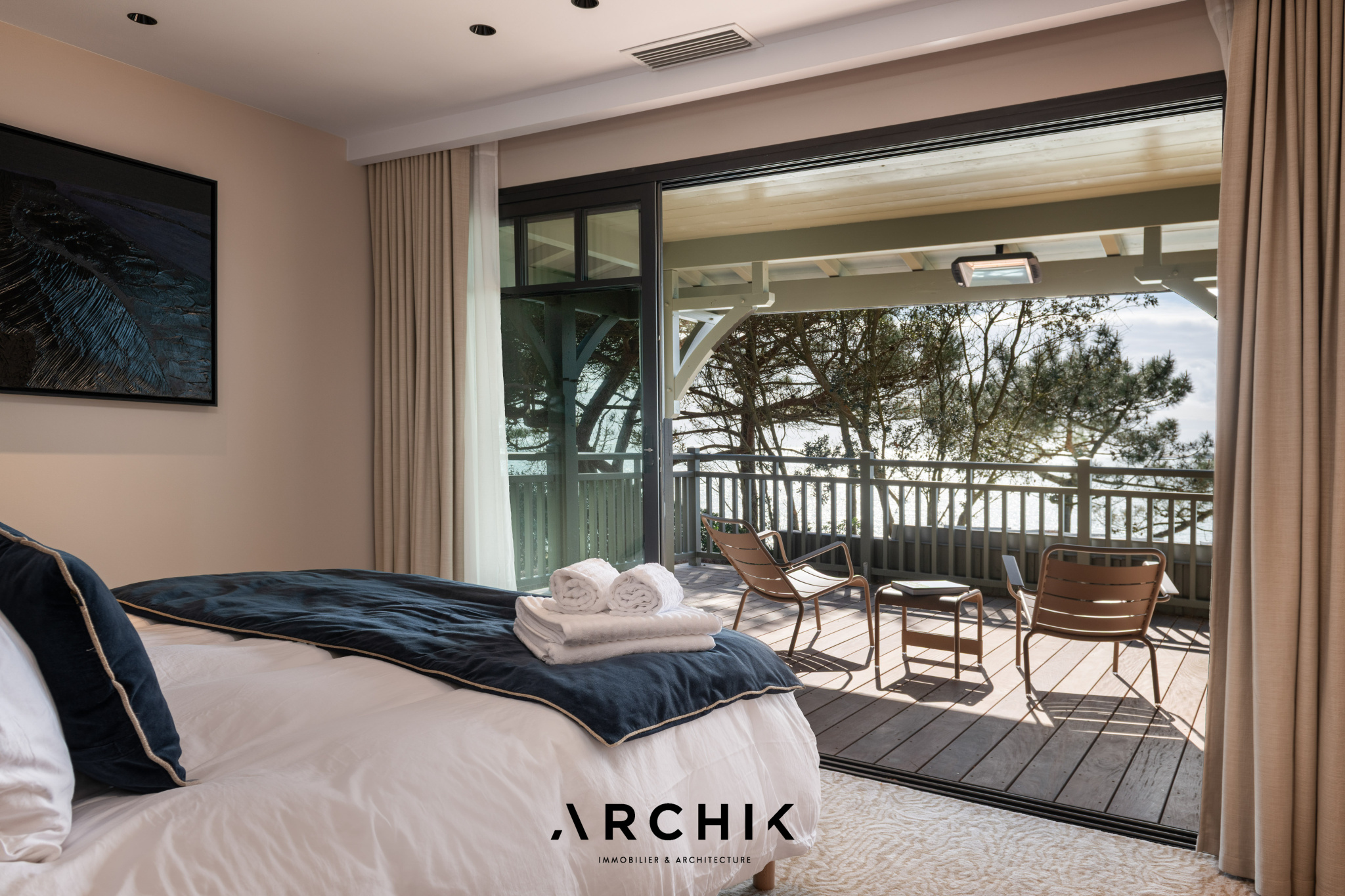 + DE PHOTOS EOS BASSIN D'ARCACHON | Pyla-sur-Mer Type de bien Maison Surface 350 m2 Chambre(s) 8 Extérieur Terrasse Courant Empire Architecture À vivre Réference ARL042 ON AIMELes prestations haut de gammeLe coucher de soleil depuis les terrassesLa vue exceptionnelle sur le Cap FerretNOUS CONTACTER Architecture balnéaire inspirée des villas arcachonnaises du XIXème, cette maison d'environ 350 m2, située en première ligne sur un terrain de 1 700 m2, offre un cadre tout simplement exceptionnel, face au Bassin.Tout juste achevée, la villa a été pensée par l'architecte d'intérieur Alexa Funès, de l'Atelier Germain. Dès l'entrée, les perspectives sur le Bassin donnent le ton. La suite est une succession de surprises tant au niveau des volumes que du choix des matériaux, des matières et des couleurs. La plupart des meubles ont été réalisés sur mesure pour donner du caractère à l'ensemble. La pièce de vie et sa cuisine ouverte ouvrent à la fois sur le Bassin et sur la terrasse avec sa piscine chauffée à fond mobile 4 x 8 et sa cuisine d'été, qui offrent un espace plus intime. Les sept chambres et le dortoir, avec salles d'eau et salles de bain privatives, répartis sur les trois niveaux lui confèrent un aspect familial et convivial. Trois suites à l'étage ouvrent sur une large terrasse avec un spa nordique, surplombant le jardin et offrant une vue panoramique sur l'océan. Également configurée pour l'organisation de séminaires, la maison est pourvue d'équipements adaptés et elle a été pensée pour un équilibre parfait entre les espaces privés et partagés. Le sous-sol est dédié en grande partie aux loisirs, avec une salle de jeu et un bar professionnel, une salle de cinéma et une salle de sport avec sauna et hammam. Elle bénéficie de tout le confort nécessaire pour passer un séjour réussi aussi bien entre amis qu'en famille. A l'extérieur, le jardin, les terrasses en partie couvertes et l'accès direct à la plage offrent une connexion au Bassin et à l'océan. Un lieu de villégiature unique au bord de l'eau entre la Dune du Pilat et Le Moulleau. Capacité d'accueil 18 personnes. Disponible toute l'année à la location saisonnière. Tarifs sur demande. LE QUARTIER Pyla-sur-Mer Pyla-sur-Mer est une station balnéaire française de l’Atlantique prolongeant géographiquement la ville d’Arcachon, et s’étendant de la lisière du quartier commerçant du Moulleau et des Abatilles jusqu’au pied de la dune du Pilat. VOTRE CONTACT Sarah DENAVES 06 71 67 73 69 location.arcachon@archik.fr DIAGNOSTICViergeCrédits photos@Marc LacroixPARTAGER Vous souhaitez avoir plus d'informations ? Remplissez le formulaire ou contactez directement la personne en charge de ce bien. NOM* PRÉNOM* EMAIL* TÉLÉPHONE* MESSAGE Je souhaite recevoir la Newsletter ARCHIK VOTRE CONTACT Sarah DENAVES 06 71 67 73 69 location.arcachon@archik.fr Découvrez aussi ...VENDRENos biens en venteNOS BIENS VENDUS