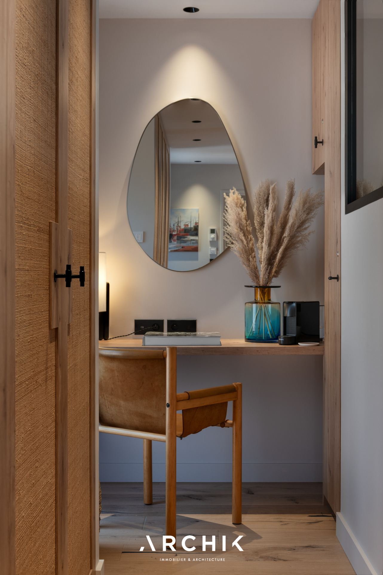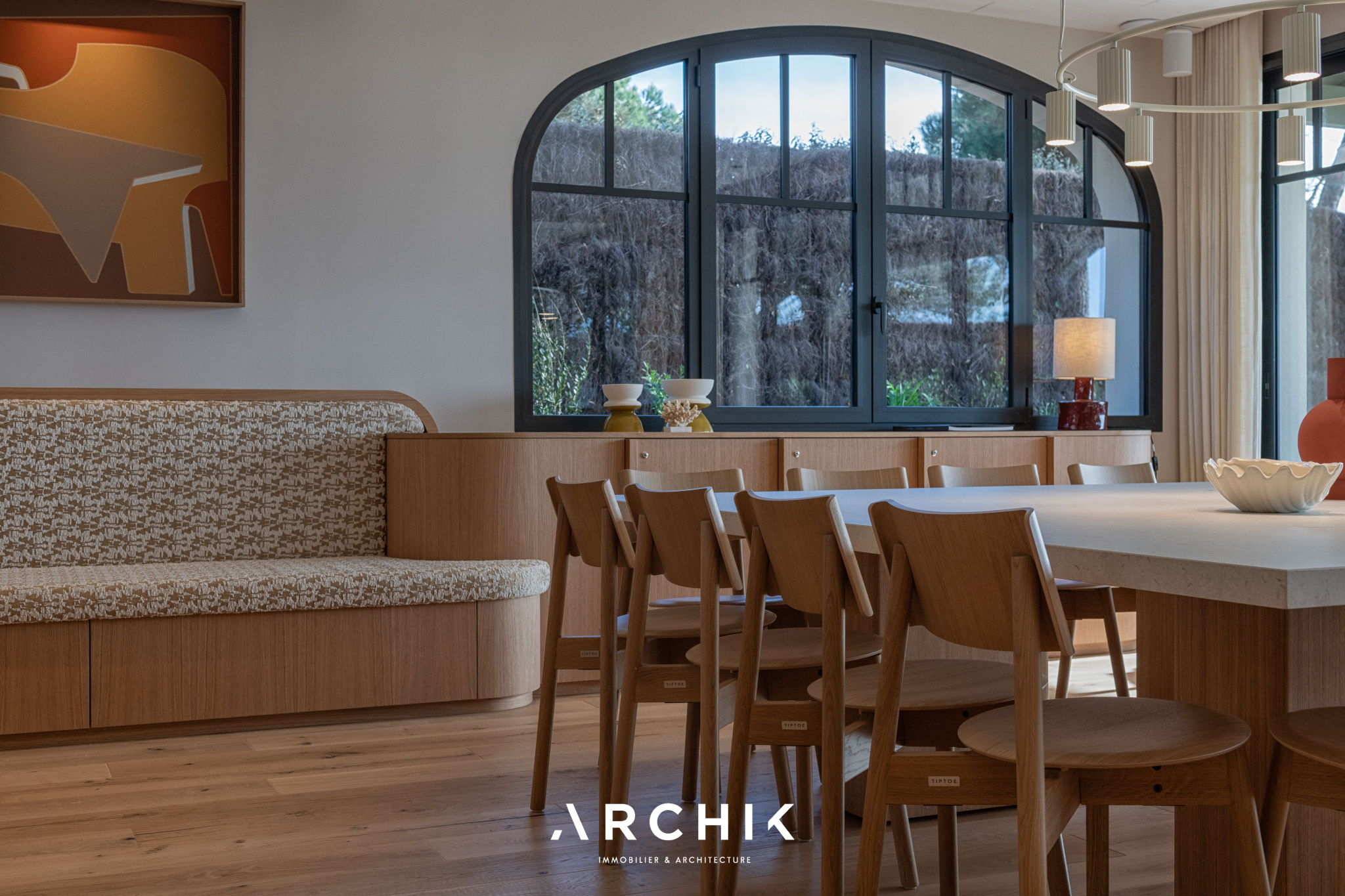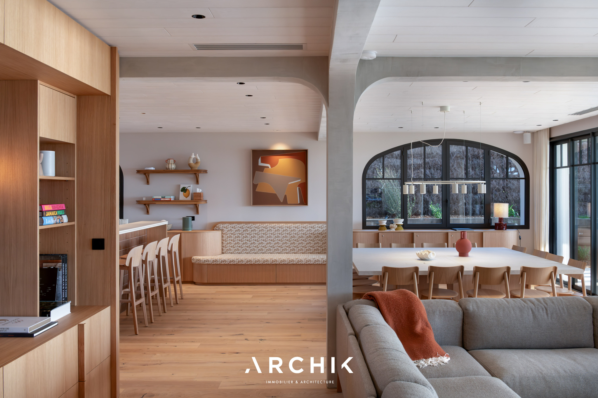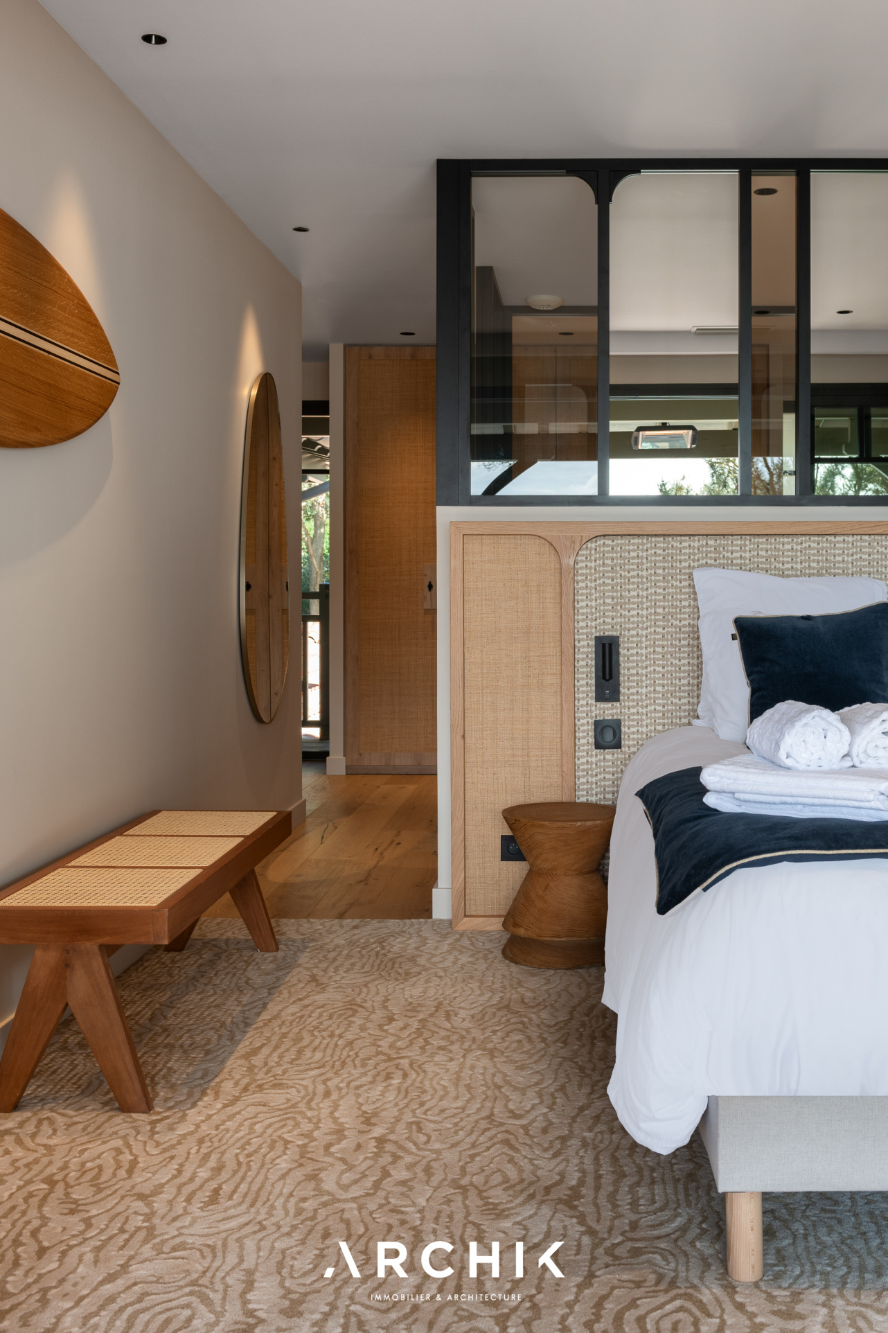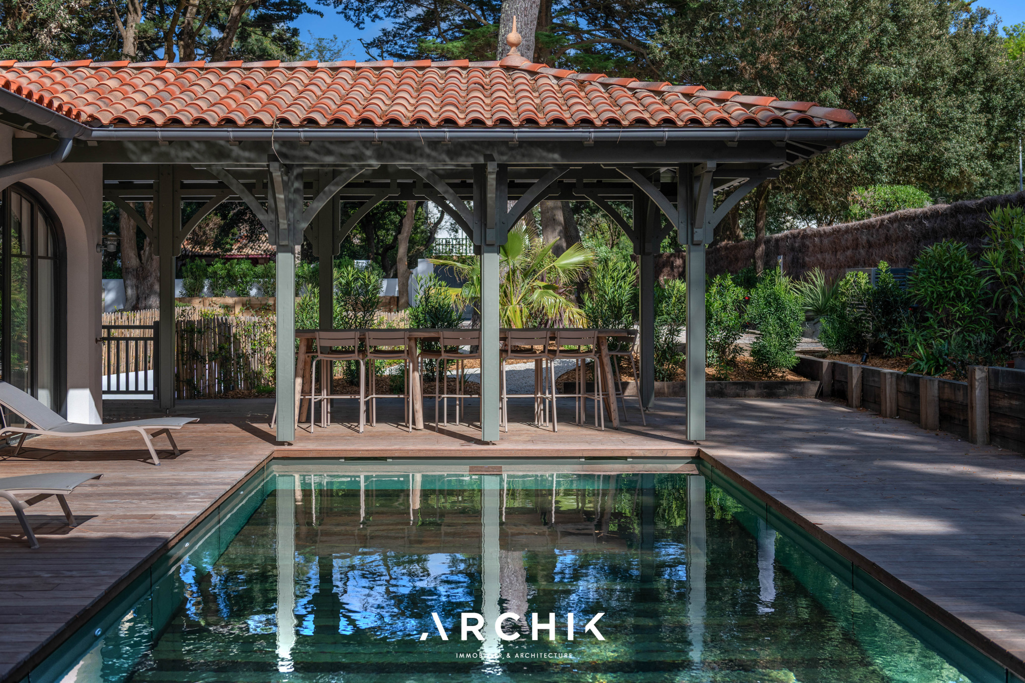 + DE PHOTOS EOS BASSIN D'ARCACHON | Pyla-sur-Mer Type de bien Maison Surface 350 m2 Chambre(s) 8 Extérieur Terrasse Courant Empire Architecture À vivre Réference ARL042 ON AIMELes prestations haut de gammeLe coucher de soleil depuis les terrassesLa vue exceptionnelle sur le Cap FerretNOUS CONTACTER Architecture balnéaire inspirée des villas arcachonnaises du XIXème, cette maison d'environ 350 m2, située en première ligne sur un terrain de 1 700 m2, offre un cadre tout simplement exceptionnel, face au Bassin.Tout juste achevée, la villa a été pensée par l'architecte d'intérieur Alexa Funès, de l'Atelier Germain. Dès l'entrée, les perspectives sur le Bassin donnent le ton. La suite est une succession de surprises tant au niveau des volumes que du choix des matériaux, des matières et des couleurs. La plupart des meubles ont été réalisés sur mesure pour donner du caractère à l'ensemble. La pièce de vie et sa cuisine ouverte ouvrent à la fois sur le Bassin et sur la terrasse avec sa piscine chauffée à fond mobile 4 x 8 et sa cuisine d'été, qui offrent un espace plus intime. Les sept chambres et le dortoir, avec salles d'eau et salles de bain privatives, répartis sur les trois niveaux lui confèrent un aspect familial et convivial. Trois suites à l'étage ouvrent sur une large terrasse avec un spa nordique, surplombant le jardin et offrant une vue panoramique sur l'océan. Également configurée pour l'organisation de séminaires, la maison est pourvue d'équipements adaptés et elle a été pensée pour un équilibre parfait entre les espaces privés et partagés. Le sous-sol est dédié en grande partie aux loisirs, avec une salle de jeu et un bar professionnel, une salle de cinéma et une salle de sport avec sauna et hammam. Elle bénéficie de tout le confort nécessaire pour passer un séjour réussi aussi bien entre amis qu'en famille. A l'extérieur, le jardin, les terrasses en partie couvertes et l'accès direct à la plage offrent une connexion au Bassin et à l'océan. Un lieu de villégiature unique au bord de l'eau entre la Dune du Pilat et Le Moulleau. Capacité d'accueil 18 personnes. Disponible toute l'année à la location saisonnière. Tarifs sur demande. LE QUARTIER Pyla-sur-Mer Pyla-sur-Mer est une station balnéaire française de l’Atlantique prolongeant géographiquement la ville d’Arcachon, et s’étendant de la lisière du quartier commerçant du Moulleau et des Abatilles jusqu’au pied de la dune du Pilat. VOTRE CONTACT Sarah DENAVES 06 71 67 73 69 location.arcachon@archik.fr DIAGNOSTICViergeCrédits photos@Marc LacroixPARTAGER Vous souhaitez avoir plus d'informations ? Remplissez le formulaire ou contactez directement la personne en charge de ce bien. NOM* PRÉNOM* EMAIL* TÉLÉPHONE* MESSAGE Je souhaite recevoir la Newsletter ARCHIK VOTRE CONTACT Sarah DENAVES 06 71 67 73 69 location.arcachon@archik.fr Découvrez aussi ...VENDRENos biens en venteNOS BIENS VENDUS