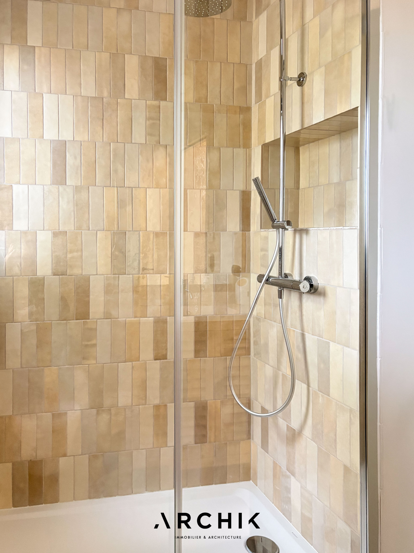 Au rez-de-jardin, l'entrée avec rangements mène à une pièce de vie lumineuse et traversante, réunissant salon avec cheminée, salle à manger et cuisine ouverte équipée, mise en valeur par un plan de travail en pierre Taj Mahal. Une buanderie et une chambre ouvrant sur le jardin avec sa salle d'eau privative complètent ce niveau.