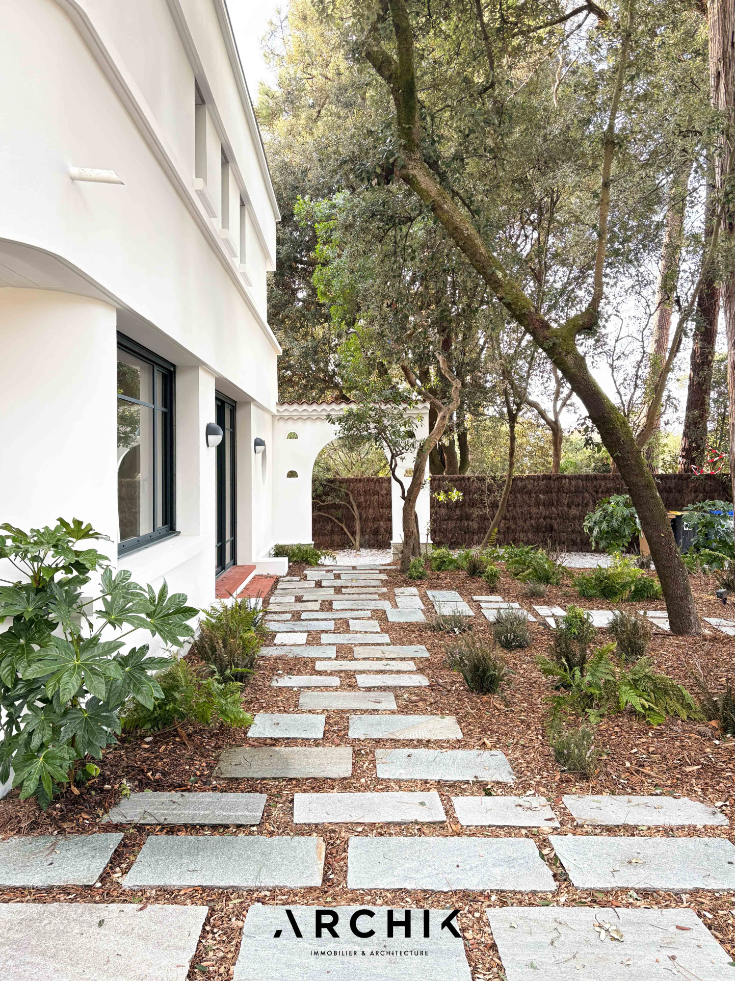 Le jardin arboré et paysager d'essences locales vient dans le prolongement immédiat des piéces de vie et fait partie intégrante de la vie de la maison. Une douche extérieure et un parking viennent parfaire ce bien idéal pour des vacances en famille ou entre amis.