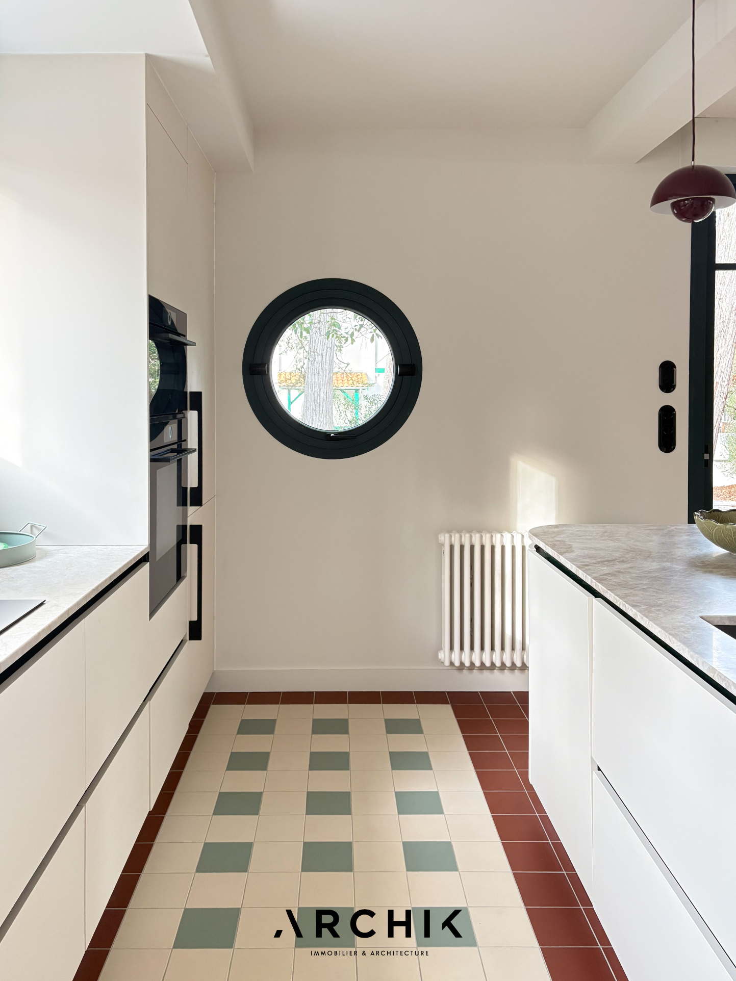 Récemment réhabilitée par l'architecte Alexandre Rougier avec les courbes et les ouvertures rondes typiques des années 30, la maison a été repensée pour qu'à l'intérieur, chaque espace laisse circuler la lumière, créant une atmosphère chaleureuse et balnéaire.