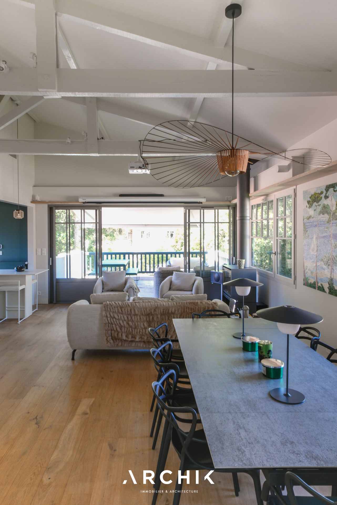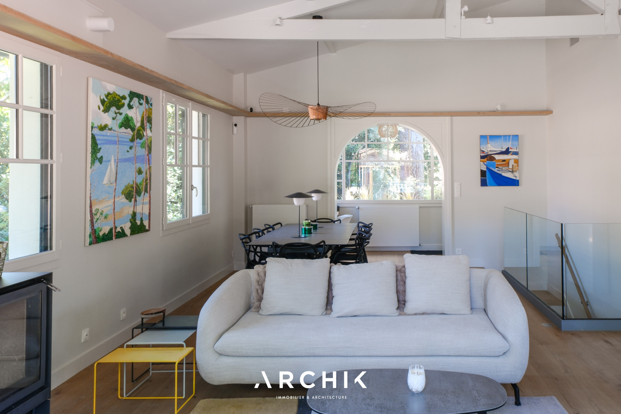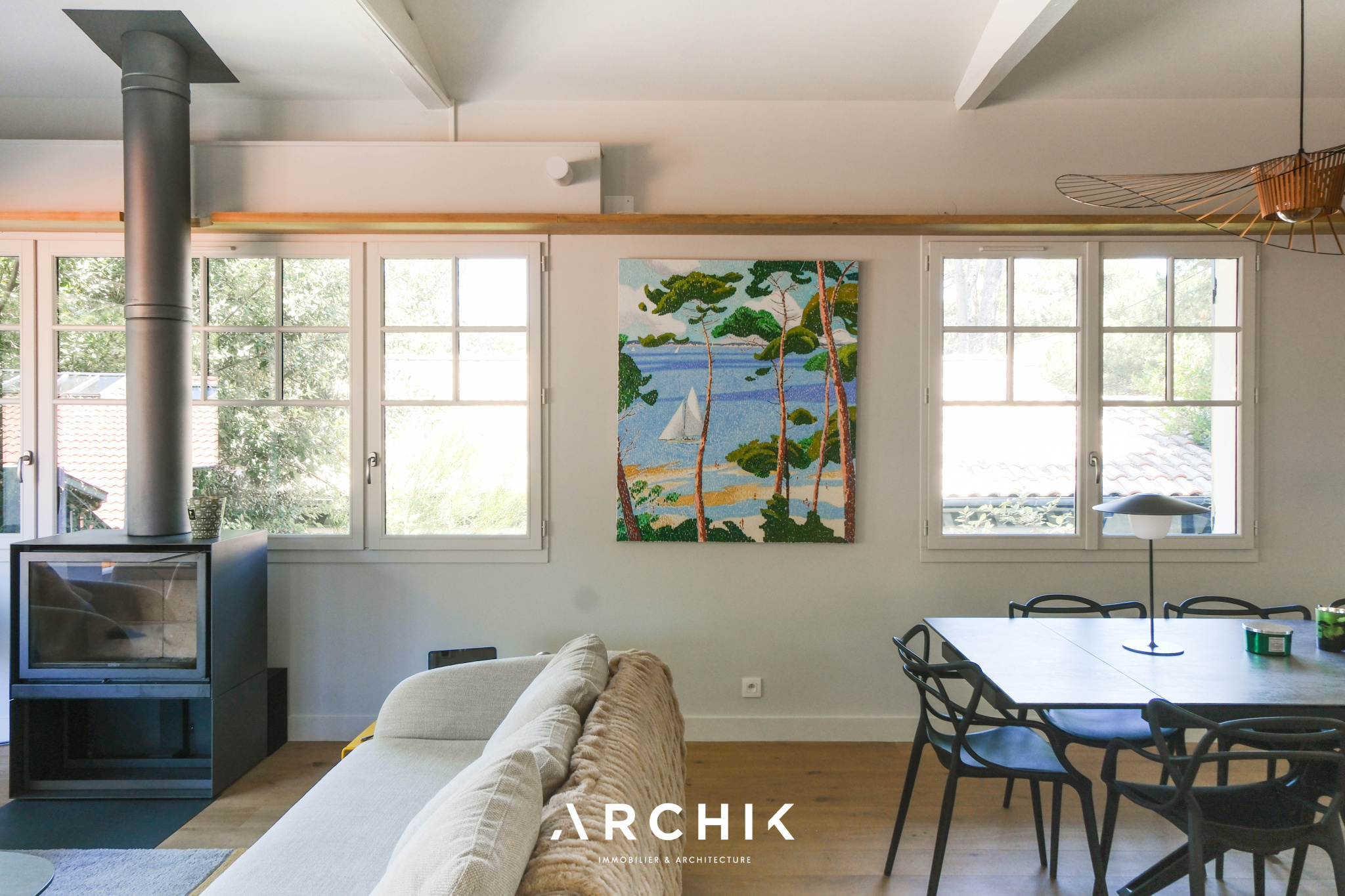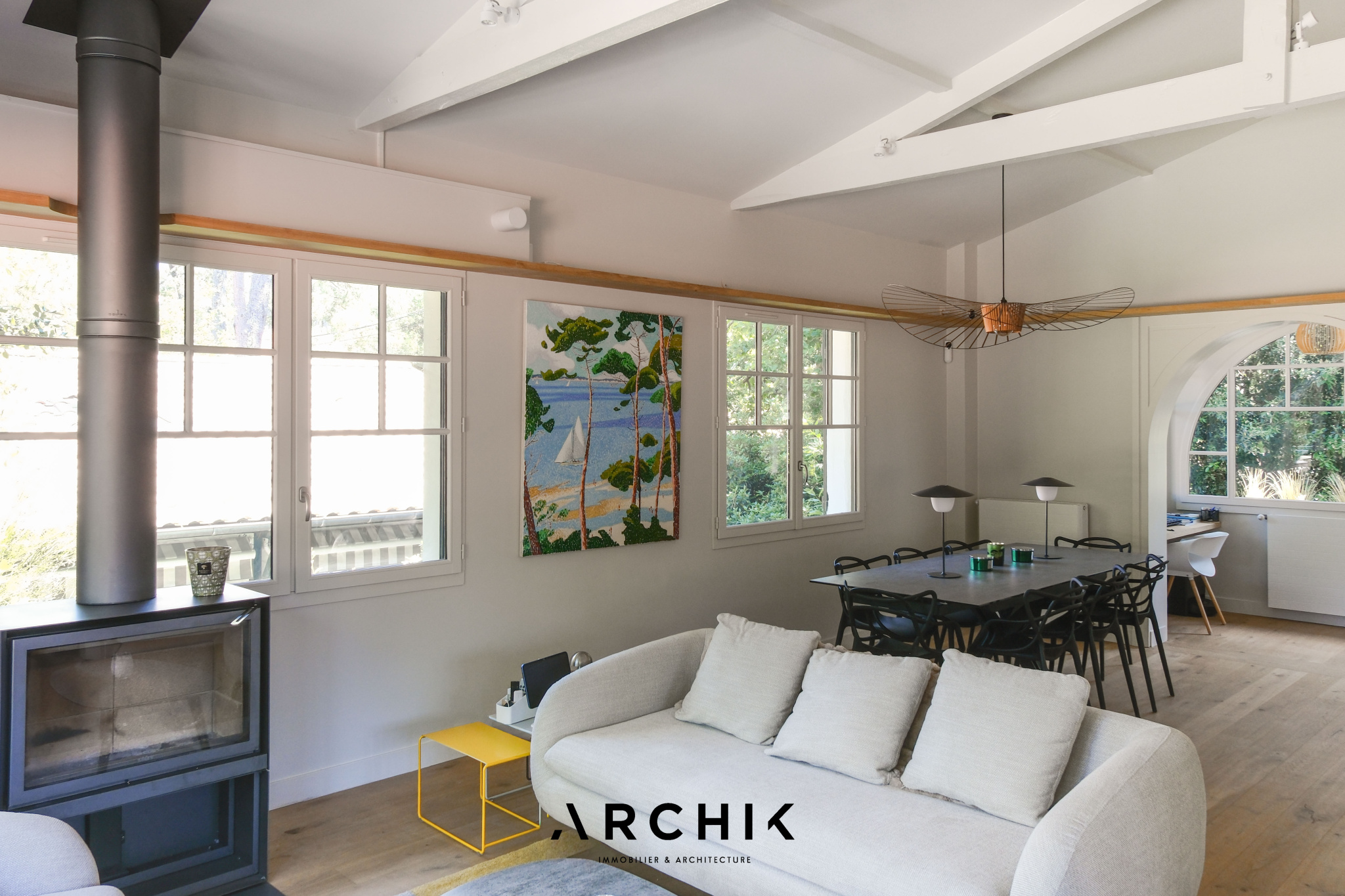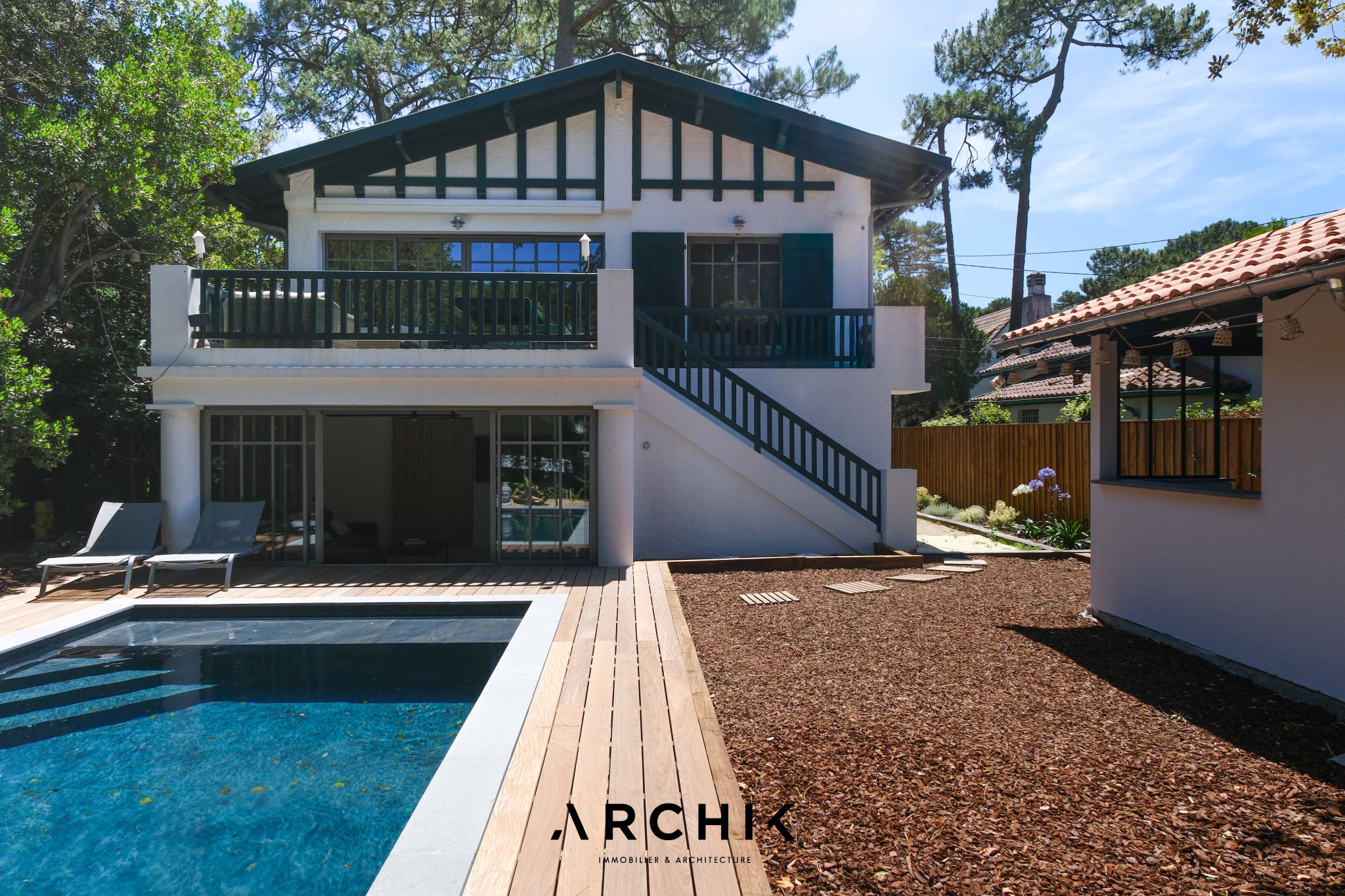 Construite en 1949, cette maison Gaume a été repensée et agrandie en 2023 par l'architecte Alexandre Rougier. Ce dernier a su organiser les espaces pour créer une vraie maison de vacances pour toute la famille, tout en gardant le charme du bâti d'origine.
