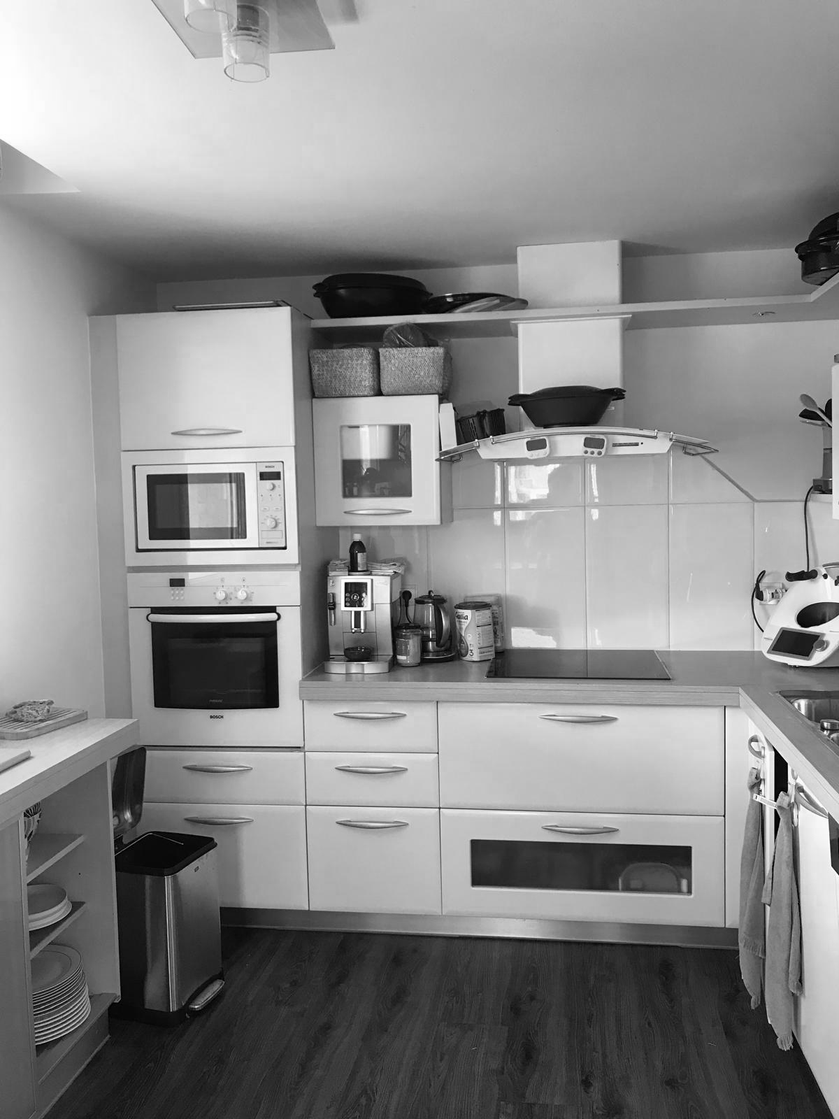 Conserver le cachet historique notamment le sol en cabochon et les moulures au plafond de la cuisine.